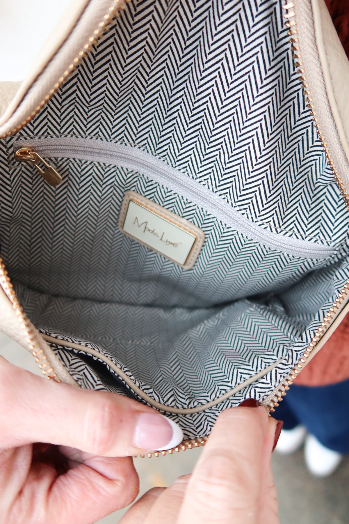 Carry your essentials in style with the Gizelle Natural Belt Bag. This versatile accessory features an adjustable strap that fits your frame perfectly, elegant gold metal detailing that catches the light, and a secure zip closure to keep your belongings safe. Whether you're running errands or heading out for the evening, this belt bag combines practical functionality with sophisticated design.