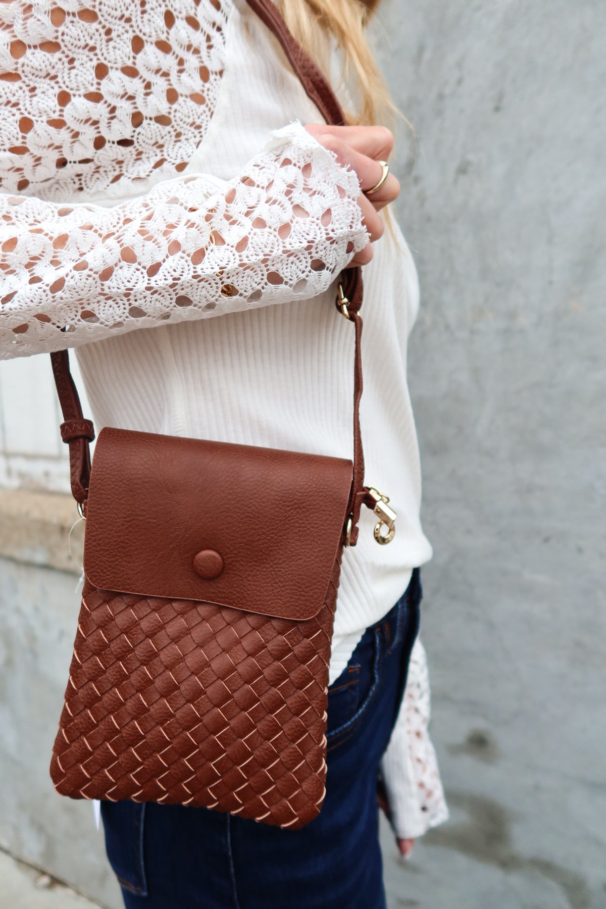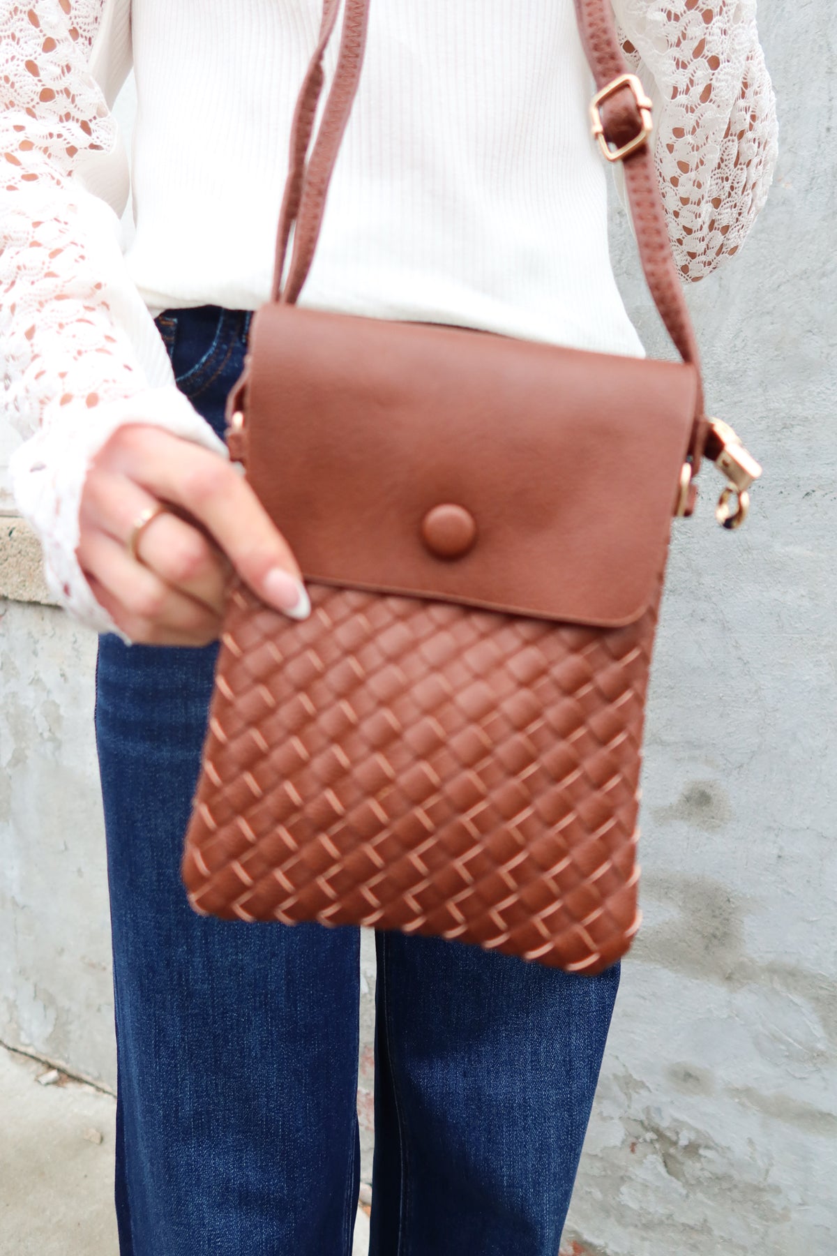 Carry elegance wherever you go with this charming crossbody purse, crafted in a rich, warm chocolate hue that complements any wardrobe. The intricate weave detail adds texture and visual interest, while the compact size makes it perfect for hands-free convenience. Ideal for everyday outings, coffee dates, or evening strolls, this versatile bag keeps your essentials close without the bulk. The adjustable strap ensures a comfortable fit, making it a practical choice for those who value both style and functionality.