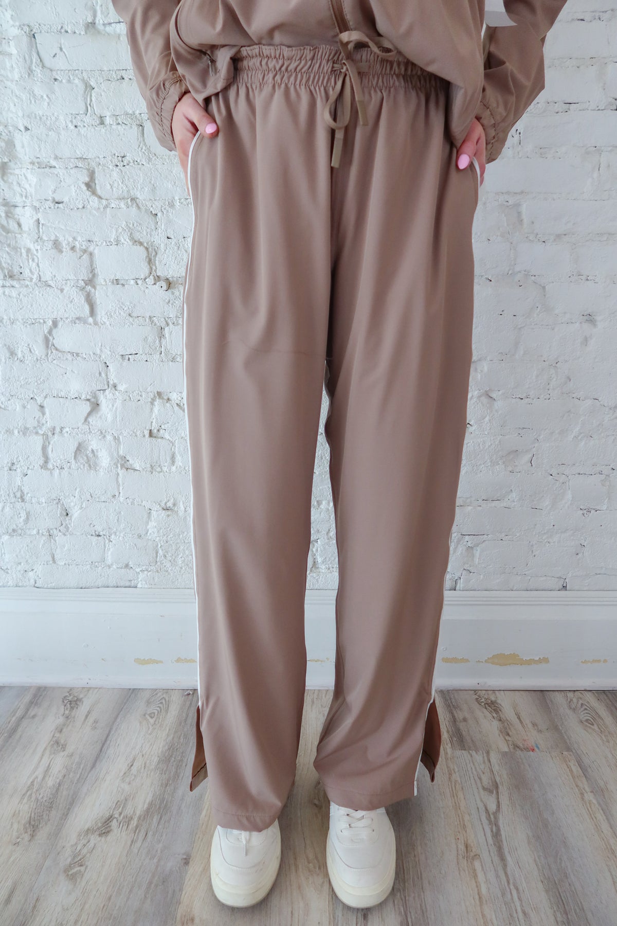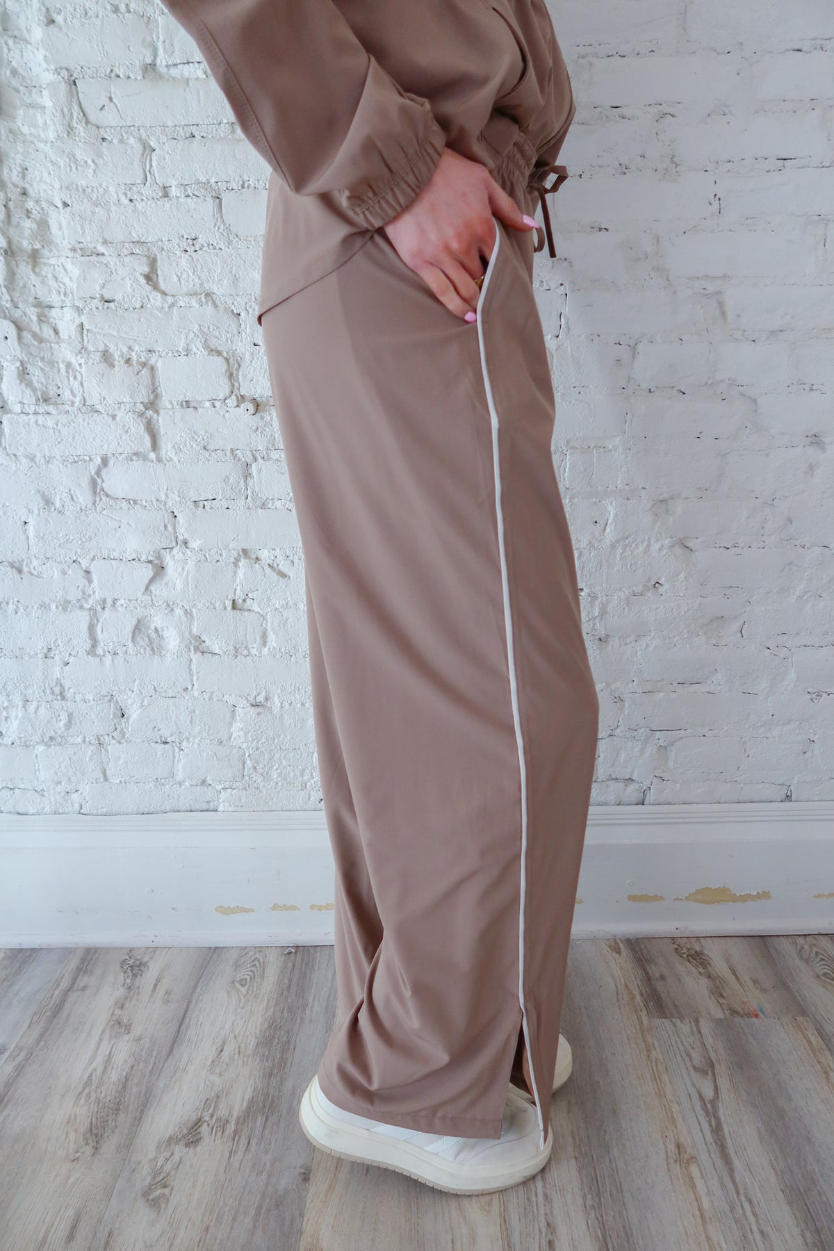 Elevate your athletic wardrobe with these Silken Taupe Finish Line Track Pants. Crafted from premium silken fabric, they deliver a luxurious feel against your skin while maintaining breathability for active movement. The taupe finish offers versatile styling that transitions seamlessly from gym sessions to casual outings. Designed with a sleek silhouette and comfortable fit, these track pants provide the confidence and ease you need to perform at your best. Perfect for runners, fitness enthusiasts, and anyone seeking elevated everyday comfort.