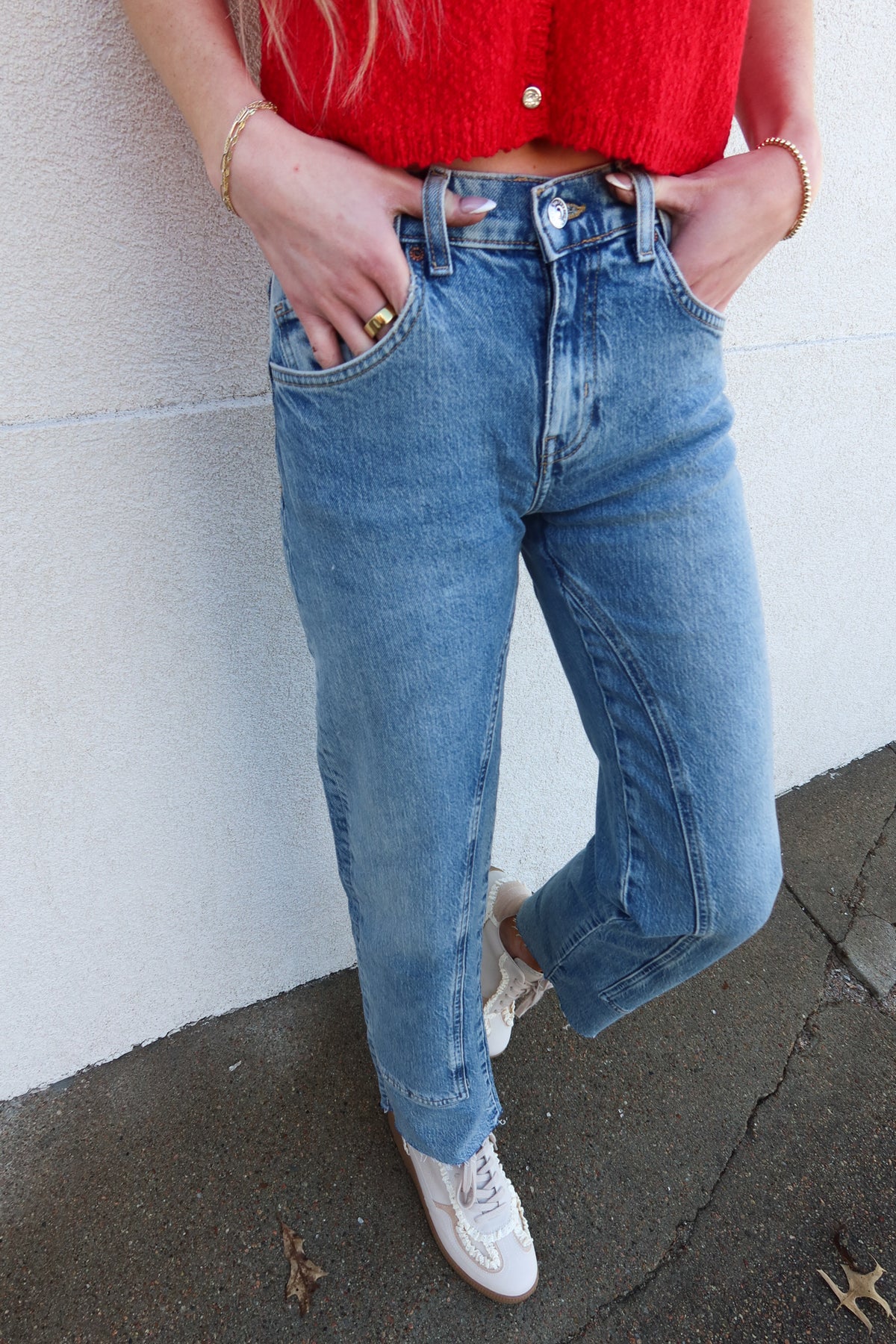 Embrace effortless style with the Free People Risk Taker Mid Rise Straight Jean. These versatile denim staples feature a flattering mid-rise cut and timeless straight-leg silhouette that works with everything in your wardrobe. Crafted for comfort and durability, they're the go-to pair you'll reach for again and again. Whether you're dressing up for a night out or keeping it casual, these jeans deliver the perfect balance of quality construction and contemporary design. Make them your new favorite.