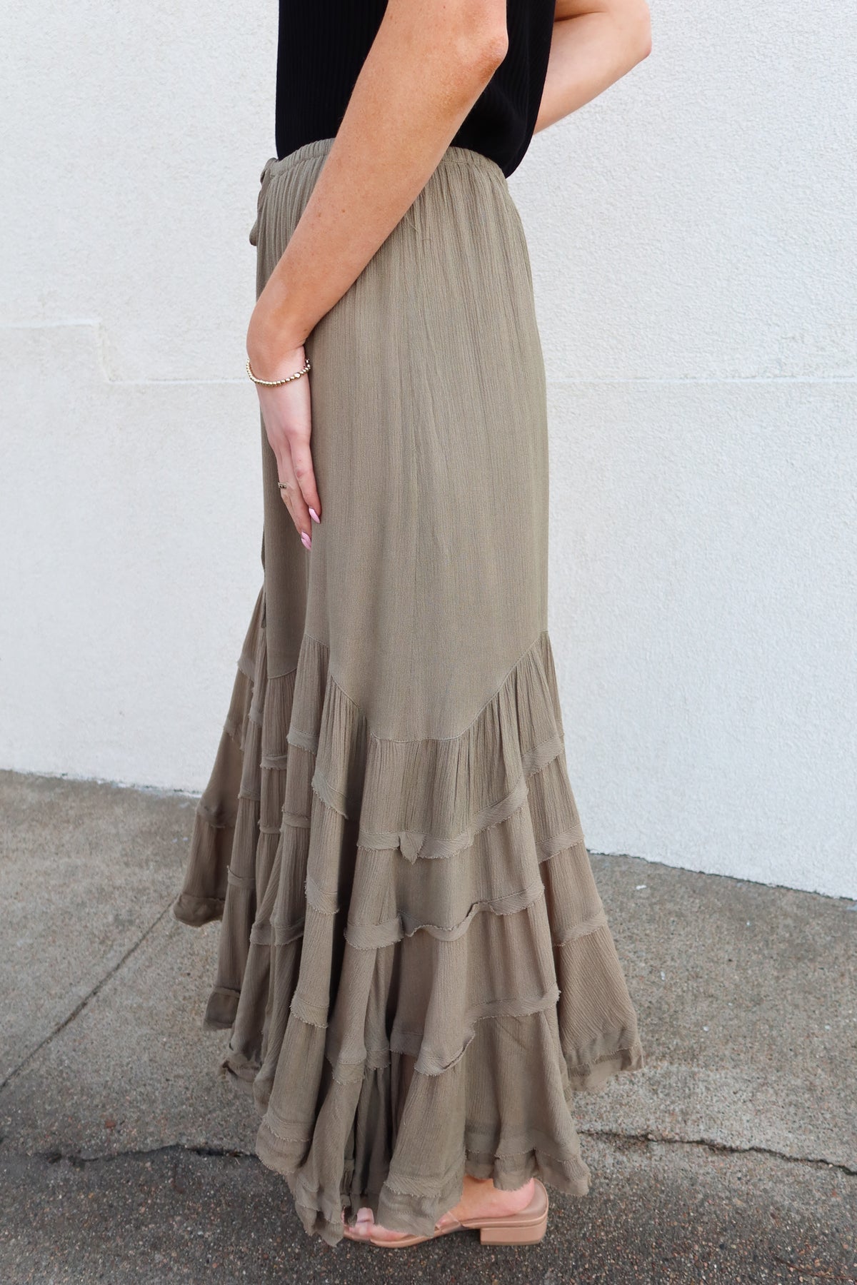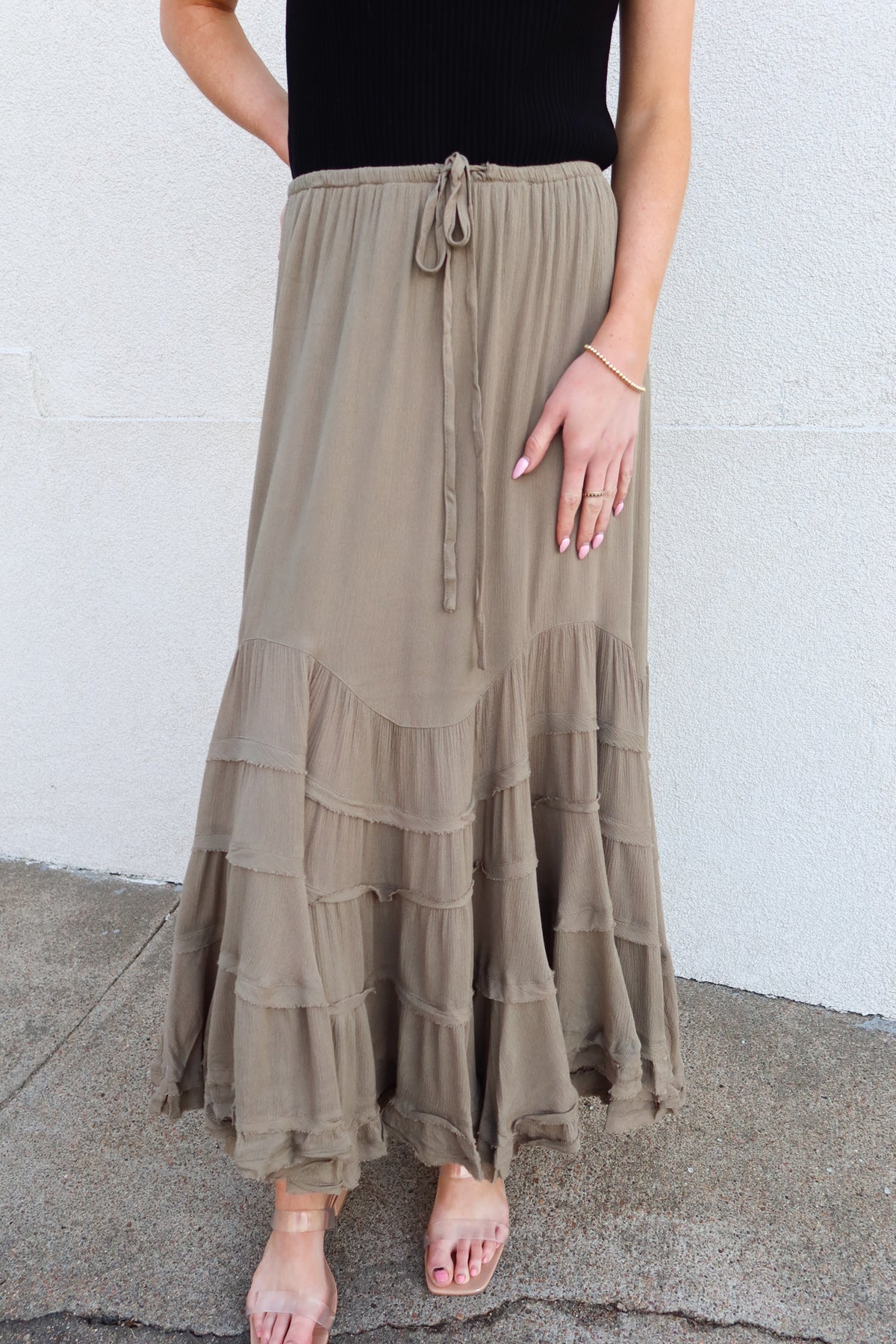 Embrace effortless spring style with this flowy tiered skirt, designed for movement and comfort. Lightweight fabric drapes beautifully with a charming tiered hem that adds dimension and visual interest. The adjustable drawstring waist ensures a perfect fit for any body type, while the relaxed silhouette keeps you cool and breezy all season long. Versatile enough for casual outings or dressed-up occasions, this skirt is your go-to piece for warm-weather wardrobes.