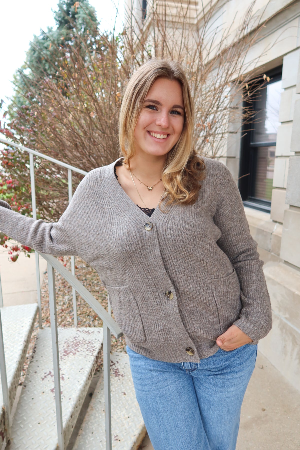 Keep Me Cozy Dark Taupe Button Down Cardigan
