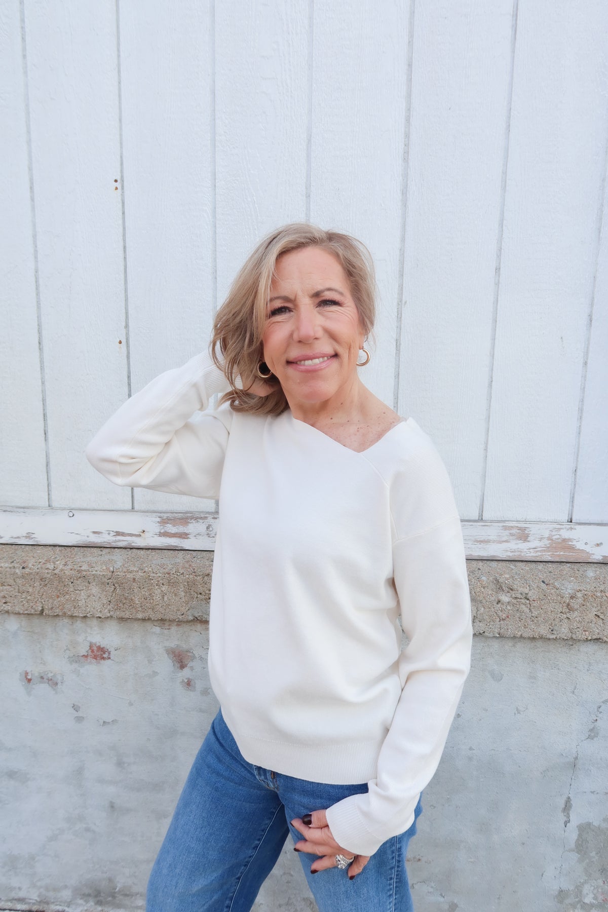 Elevate your everyday wardrobe with this stunning asymmetric long sleeve top in soft cream. The unique draped design creates an effortlessly chic silhouette that flatters every figure, while the luxurious fabric feels gentle against your skin. Perfect for layering or wearing solo, this versatile piece transitions seamlessly from office to weekend. The asymmetric cut adds modern sophistication to classic styling, making it an essential addition to any fashion-forward closet. Discover how this timeless top becomes your go-to favorite for countless occasions.
