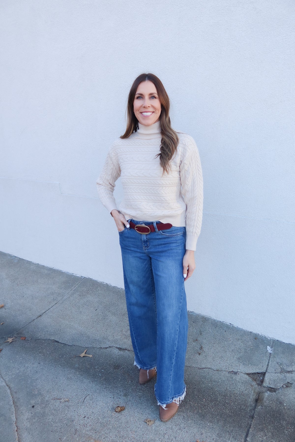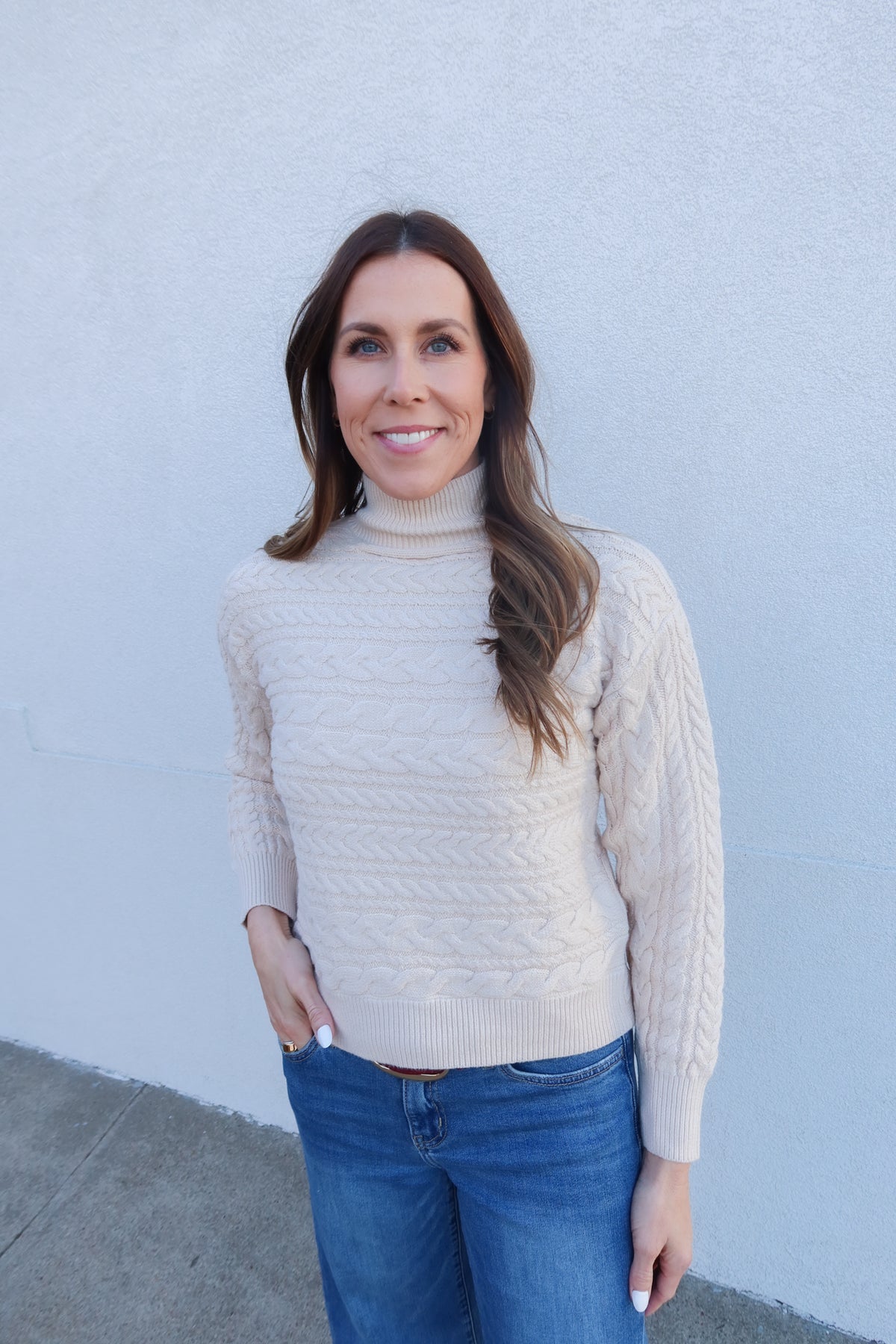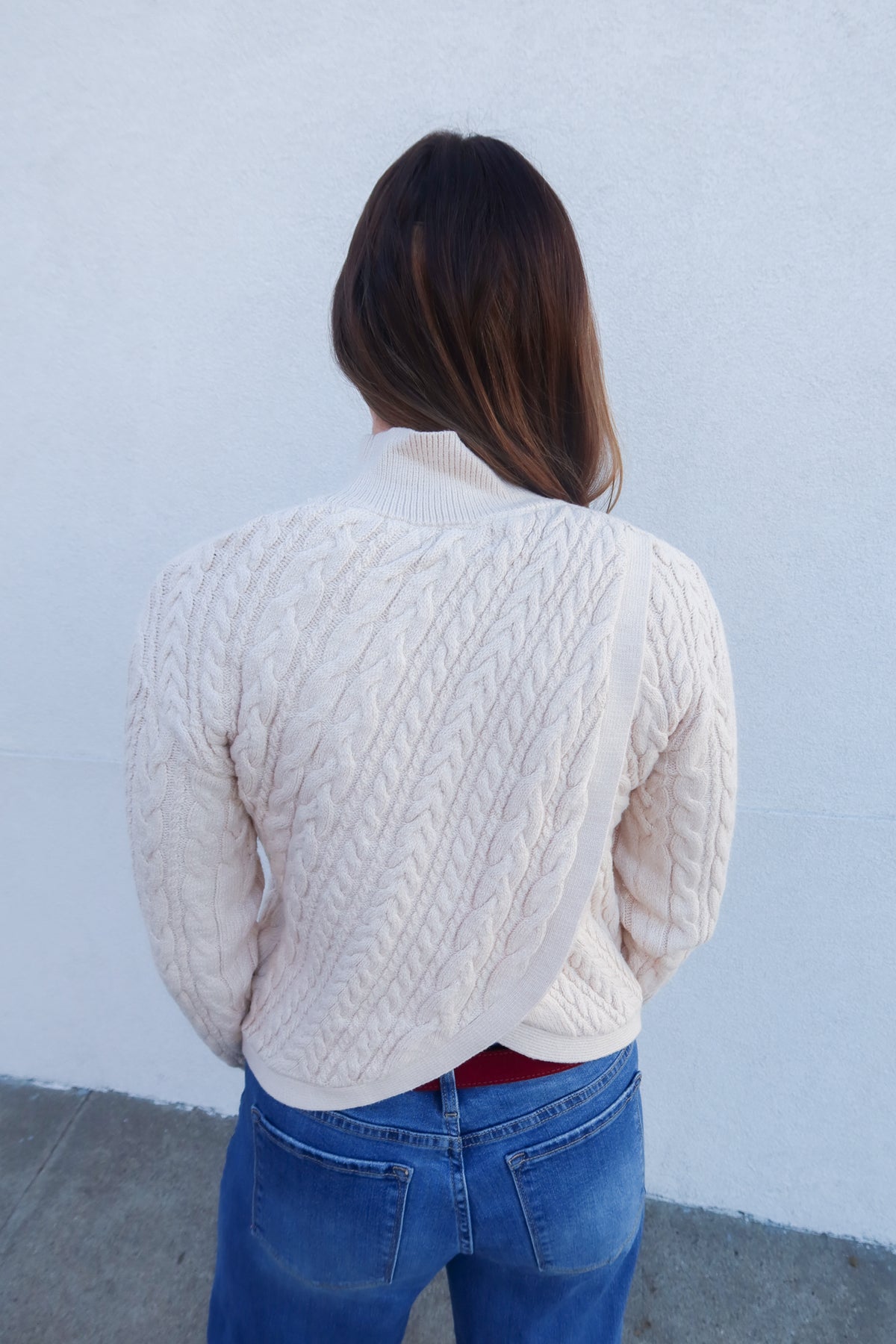 Stay stylish and comfortable with the Natural Mock Neck Cross Back Sweater. This cozy knit features a flattering mock neck and trendy cross-back detail, adding a unique touch to your everyday wardrobe. Perfect for layering or wearing on its own, it combines warmth and fashion effortlessly. Elevate your look with this cute and versatile piece that keeps you cozy and stylish.