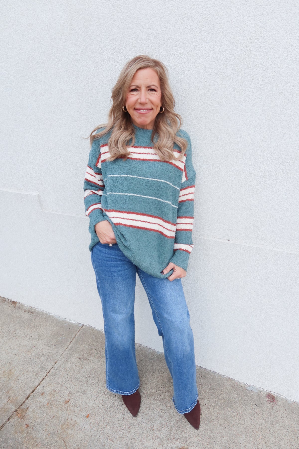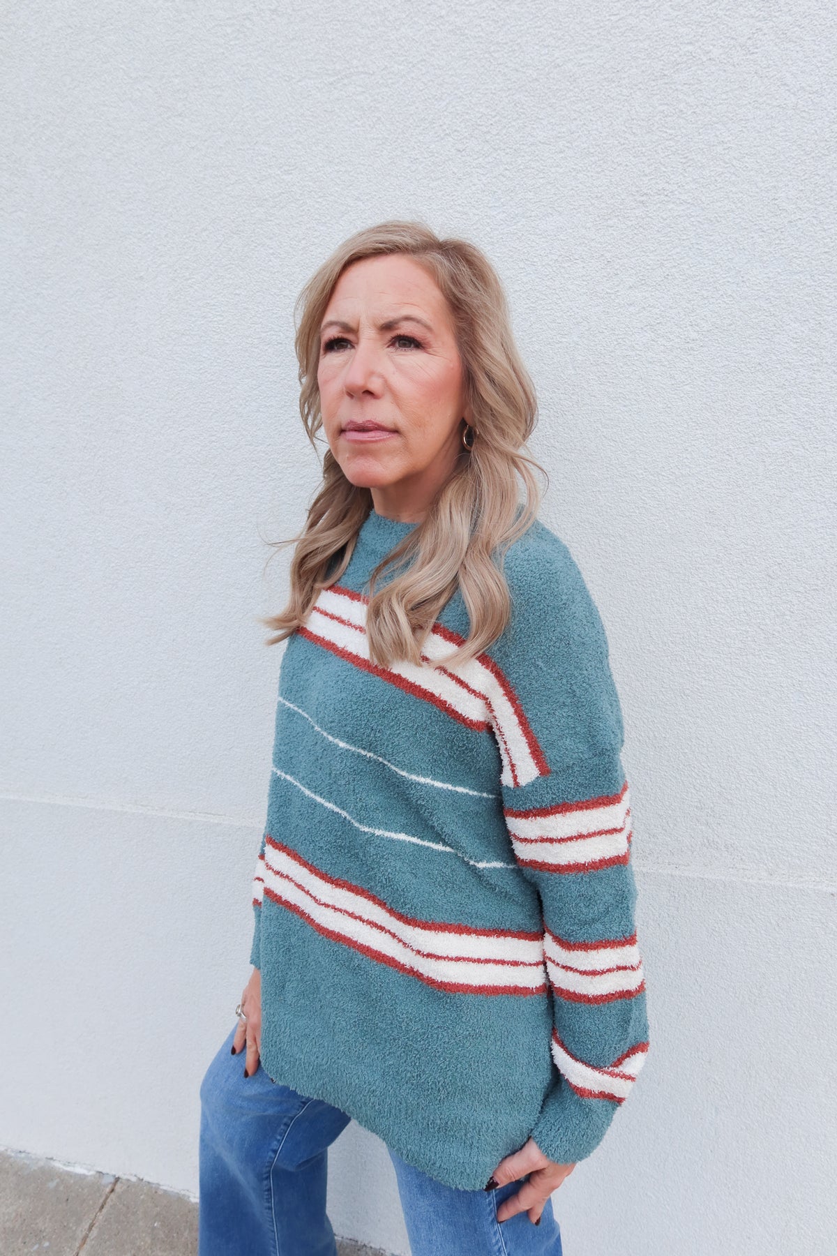 Can't Go Wrong Teal/Rust Stripe Sweater