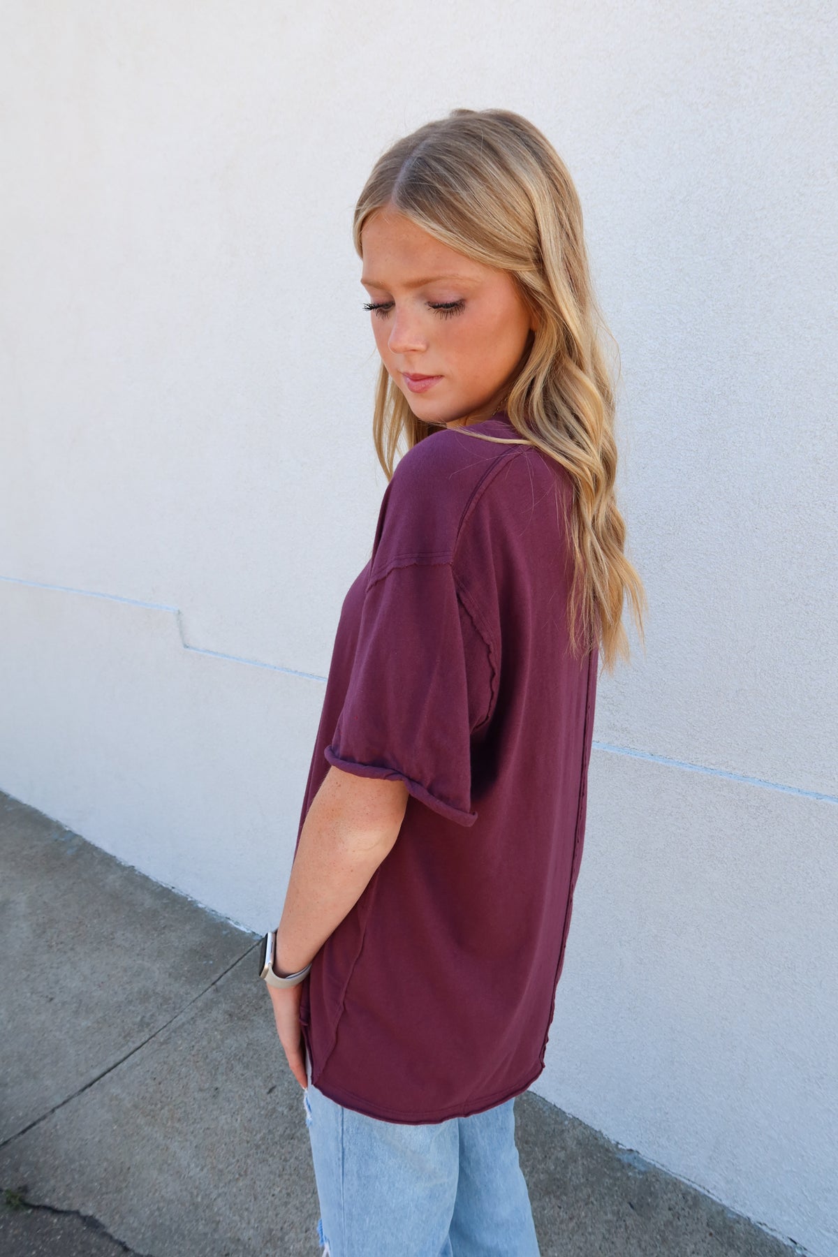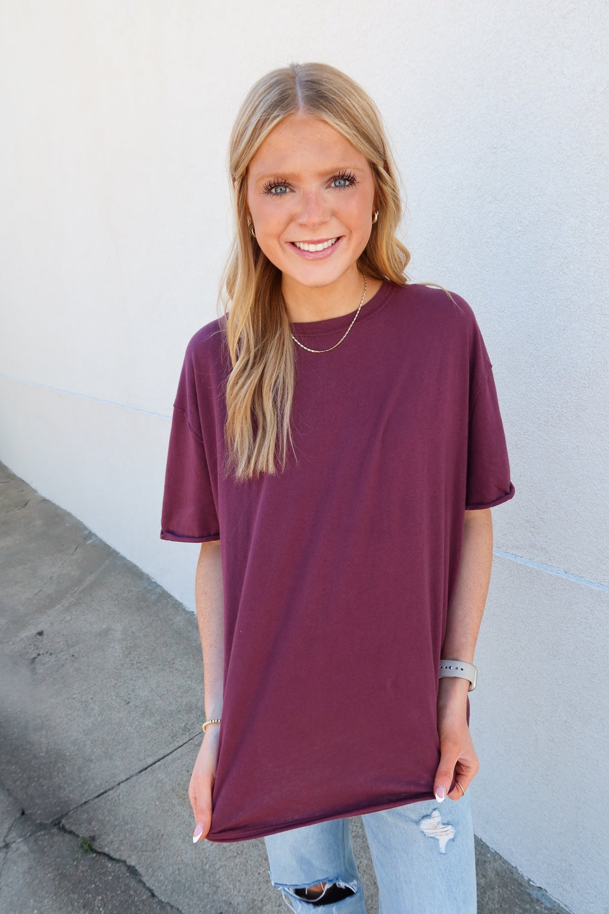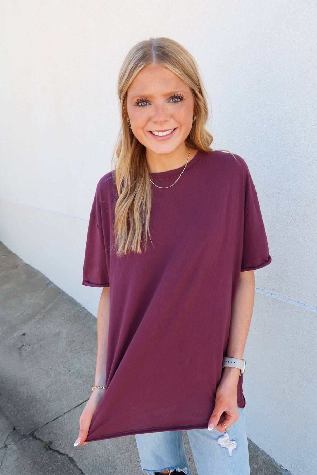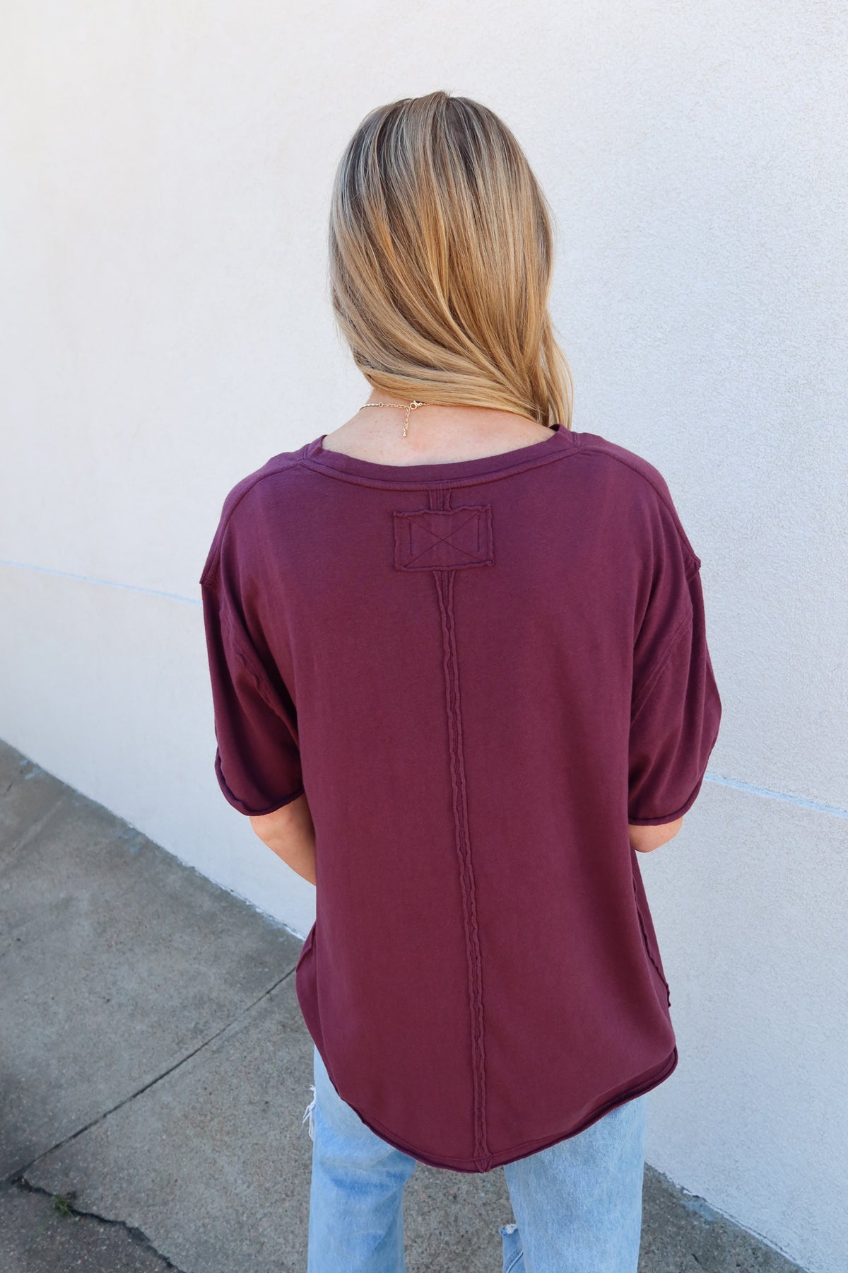 Elevate your style effortlessly with the Free People Maroon Nina Tee. Designed for a boujee-on-a-budget look, this flowy top features exposed seams and a chic boat neckline, blending casual comfort with refined details. Perfect for adding a touch of elegance to your everyday wardrobe without overspending.