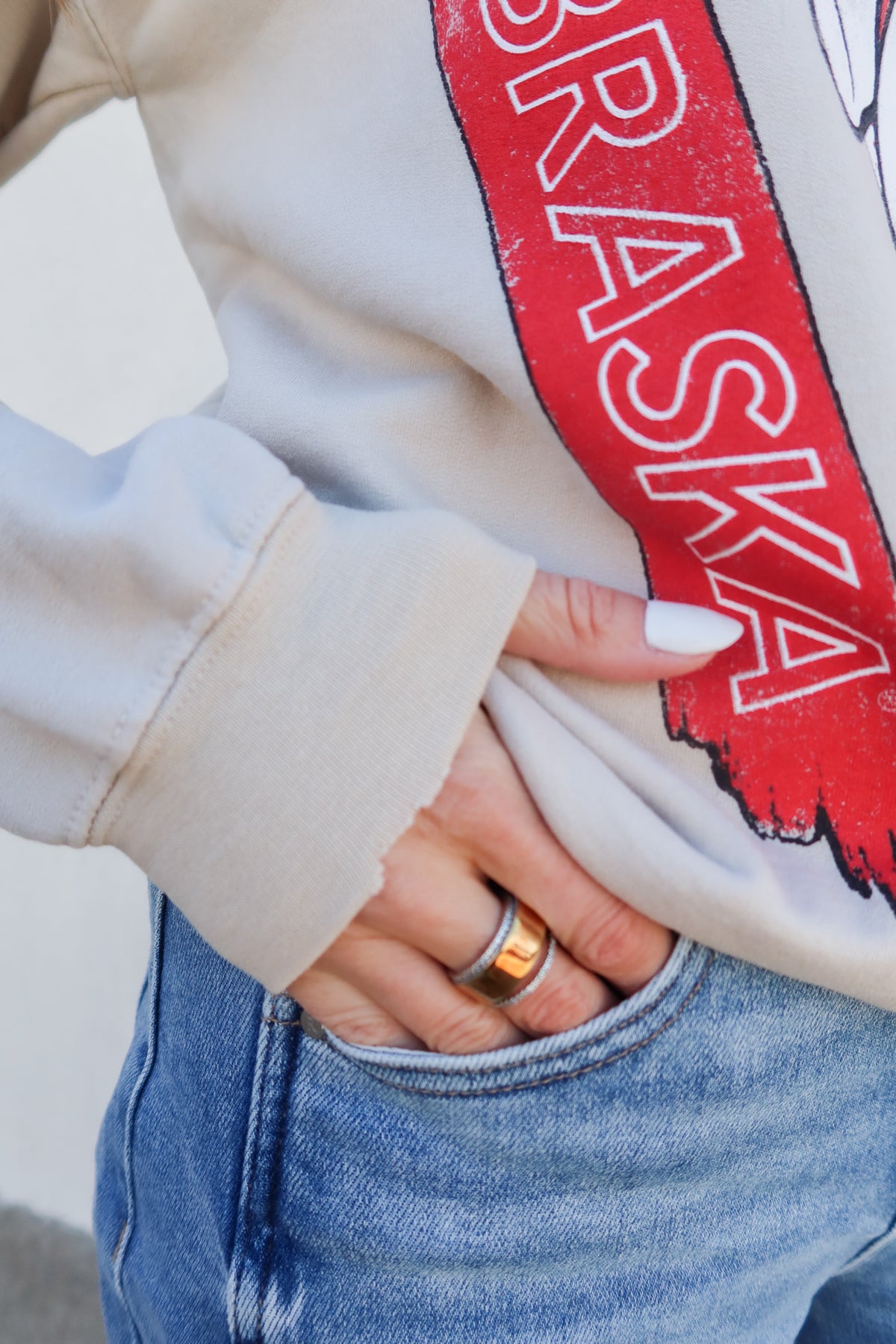 Embrace casual comfort with this Nebraska Courtside Basketball Sweatshirt, designed for fans who value laid-back style. The relaxed fit provides easy movement and all-day wearability, while the bold graphic print showcases your team spirit. Distressed details on the sleeves and neckline add an edgy, vintage aesthetic that elevates the classic sweatshirt look. Perfect for game days, weekend hangouts, or whenever you want to rep your team in effortless style.