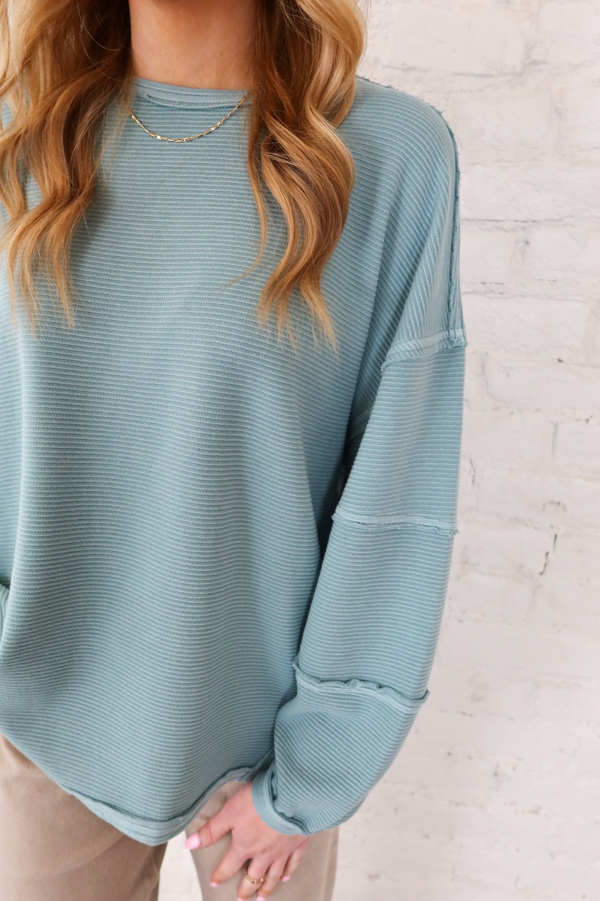 Embrace effortless spring style with this dusty blue oversized top, designed for those who value comfort without compromise. The distinctive exposed seam detailing adds modern edge while the lightweight fabric keeps you cool through warming days. Perfect for layering or wearing solo, this cozy piece transitions seamlessly from casual weekends to relaxed workdays. The generous cut ensures freedom of movement and that coveted relaxed fit that feels like a second skin.