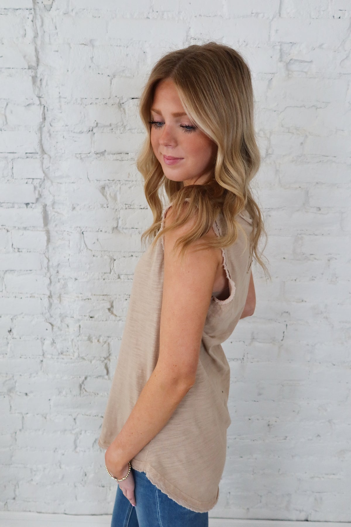 Taupe Raw Edge Tank Top