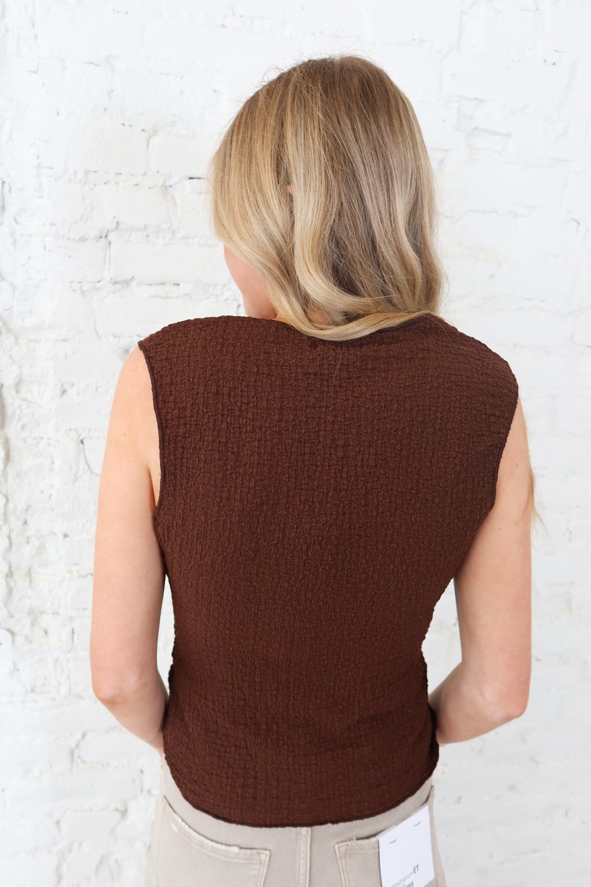 Discover effortless spring style with this Brown Bubble Jersey Top, where playful texture meets everyday versatility. The distinctive bubble weave creates visual interest and dimension, while the sleeveless cut keeps you cool and comfortable as temperatures rise. Rich brown tones pair seamlessly with your existing wardrobe, making this unique piece perfect for casual outings or dressed-up occasions. Light, breathable fabric ensures all-day wearability without sacrificing that fun, fashion-forward edge you're looking for.