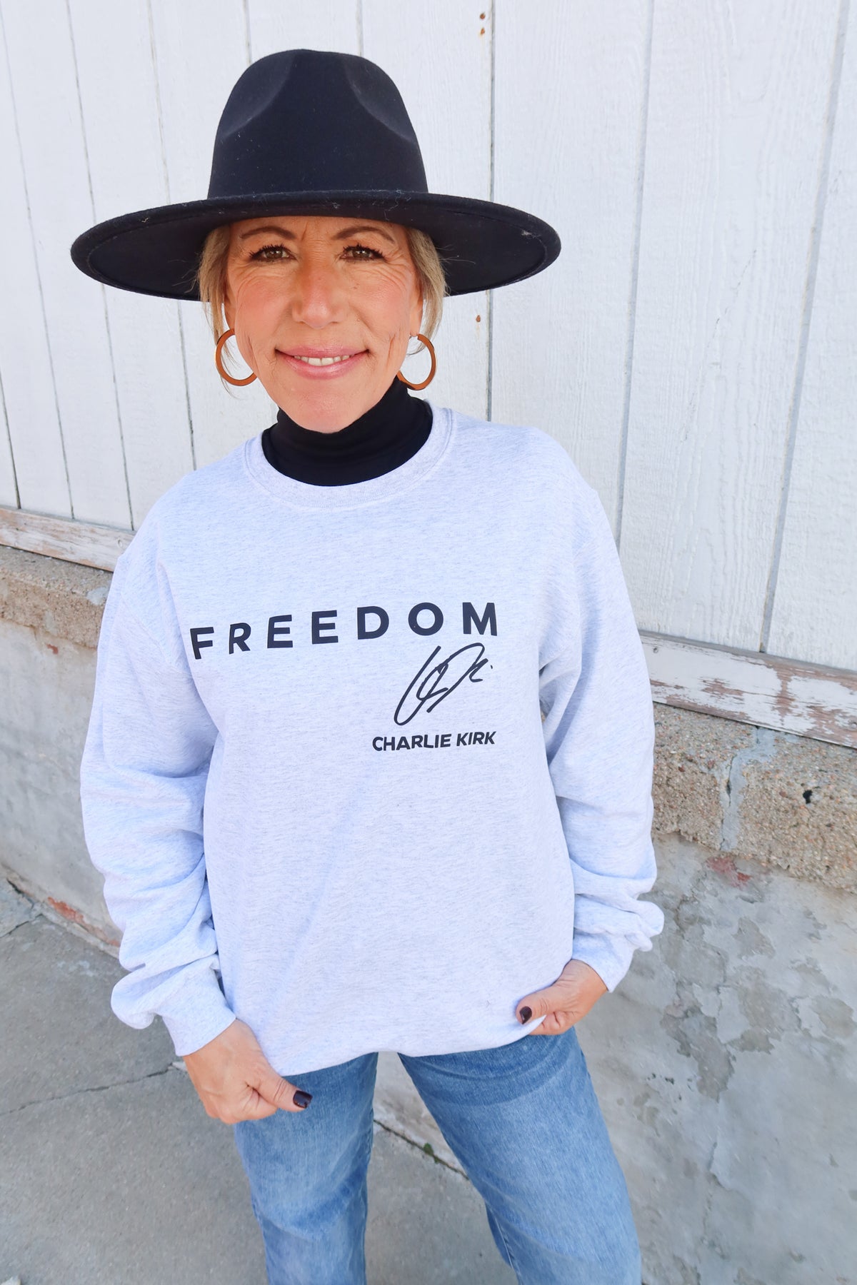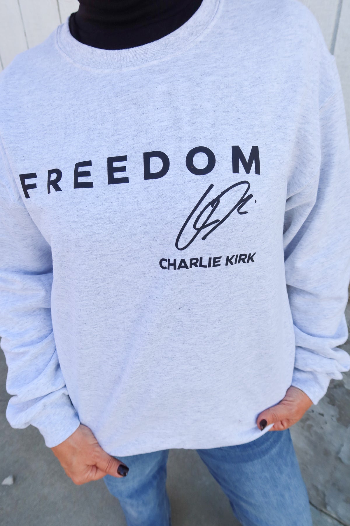 Honor Charlie Kirk’s commitment to freedom and leadership with the Freedom Crewneck Sweatshirt. Comfortable and thoughtfully designed, this sweatshirt lets you showcase your admiration while embracing a classic, versatile style. Perfect for everyday wear, it’s a great addition to your wardrobe.