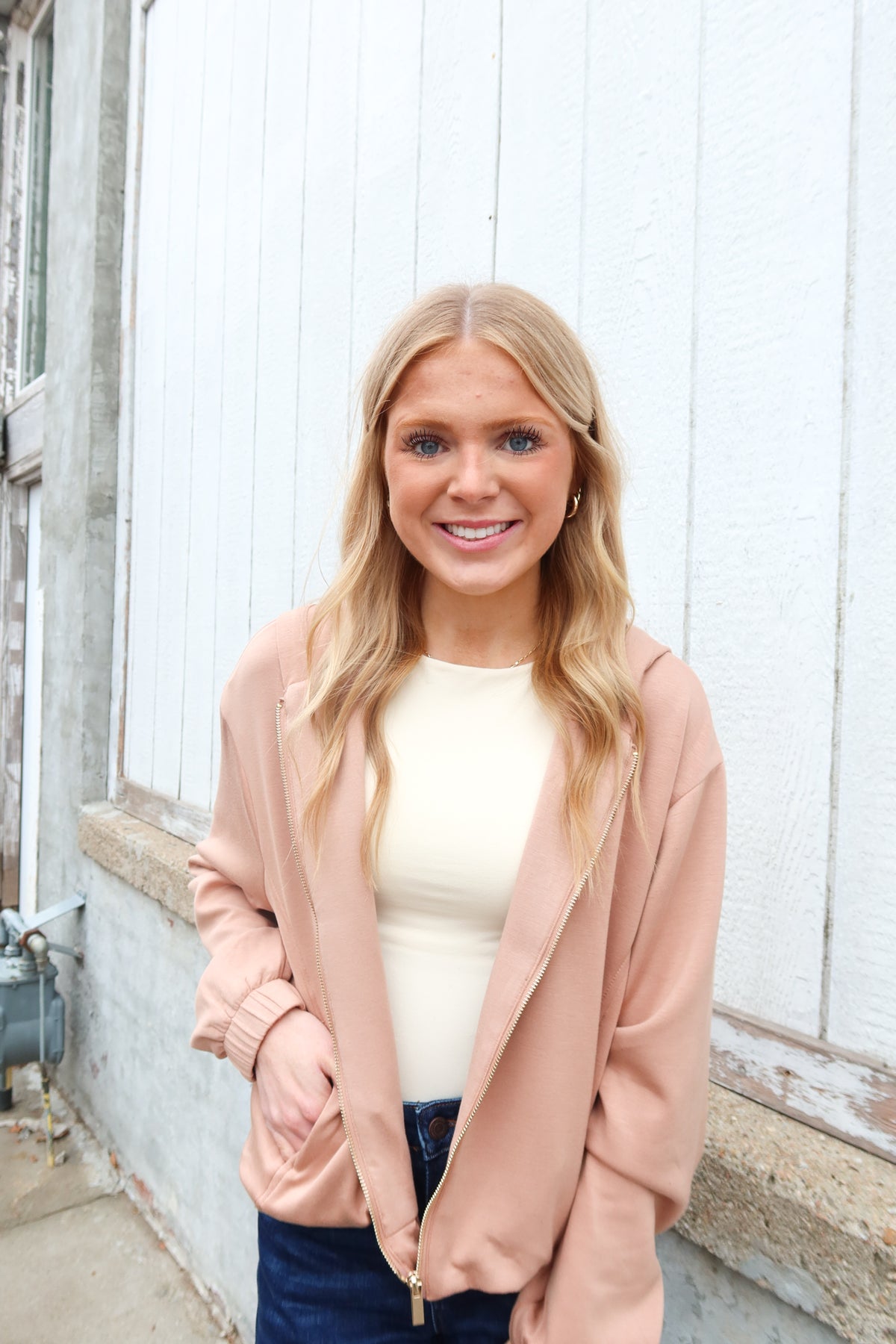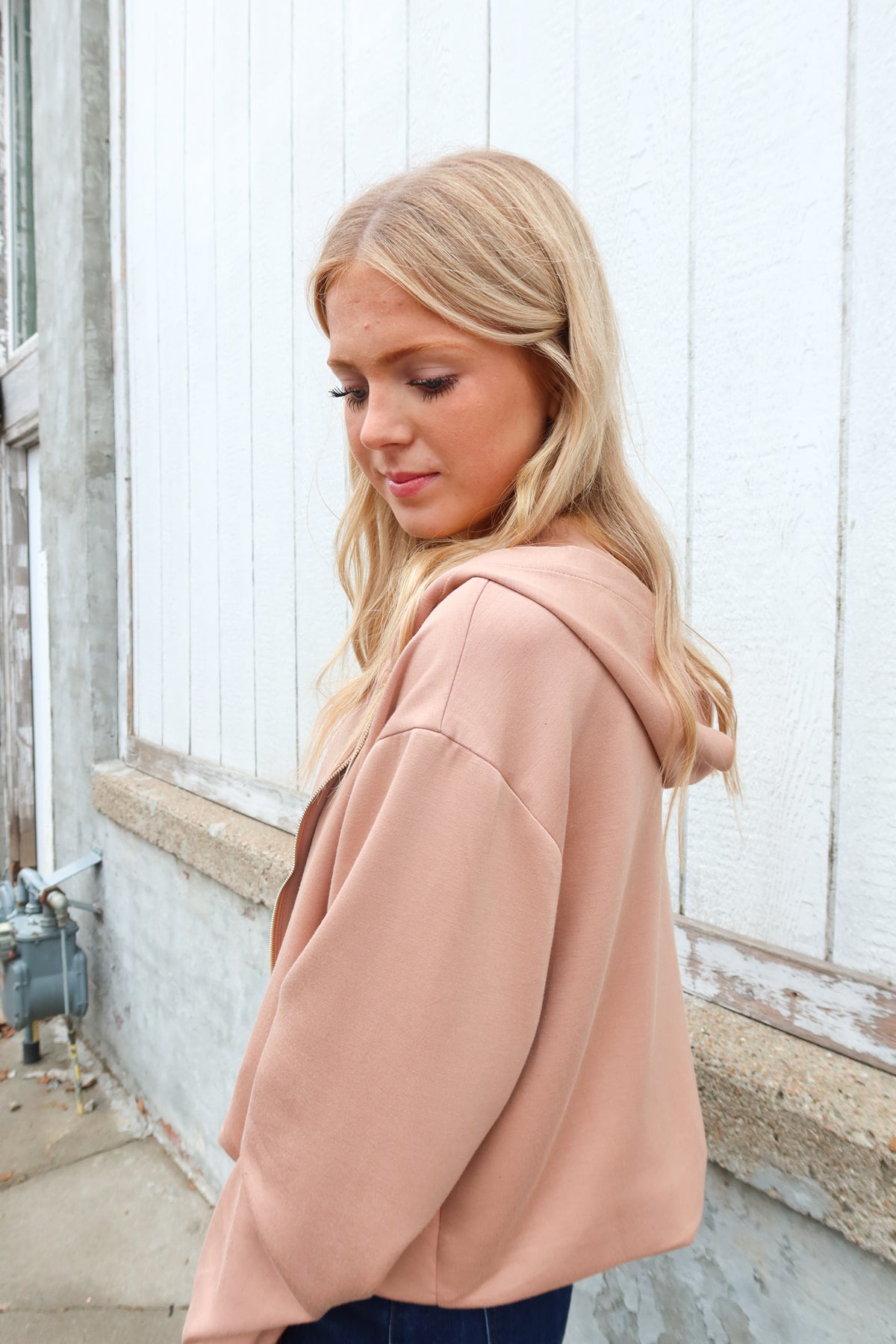 Elevate your casual wardrobe with the Willow Taupe Zip Up Hoodie, designed for effortless style and everyday comfort. This versatile piece features a sleek front zip closure for easy layering, a structured banded hem that keeps its shape, and luxe gold metal detailing that adds a touch of sophistication. Practical side pockets keep your essentials within reach, making this hoodie perfect for running errands or relaxing at home. The soft taupe tone pairs seamlessly with any outfit, while premium construction ensures lasting wear season after season.