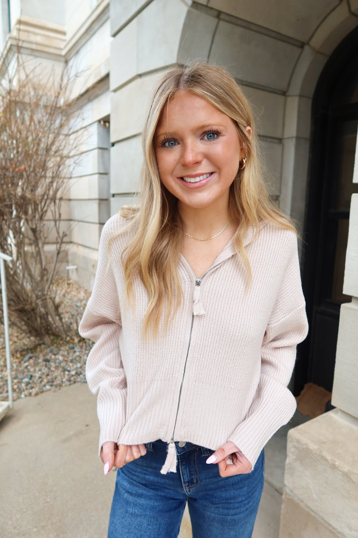Wrap yourself in warmth and style with this charming oatmeal zip-up top. The soft, cozy fabric feels like a gentle hug against your skin, while the cute silhouette flatters your figure effortlessly. Perfect for layering through fall, this versatile piece transitions seamlessly from casual coffee runs to weekend adventures. Whether you're pairing it with jeans for a relaxed vibe or dressing it up with your favorite skirt, this long-sleeve essential brings comfort and charm to every outfit. Embrace the season in a top that feels as good as it looks.