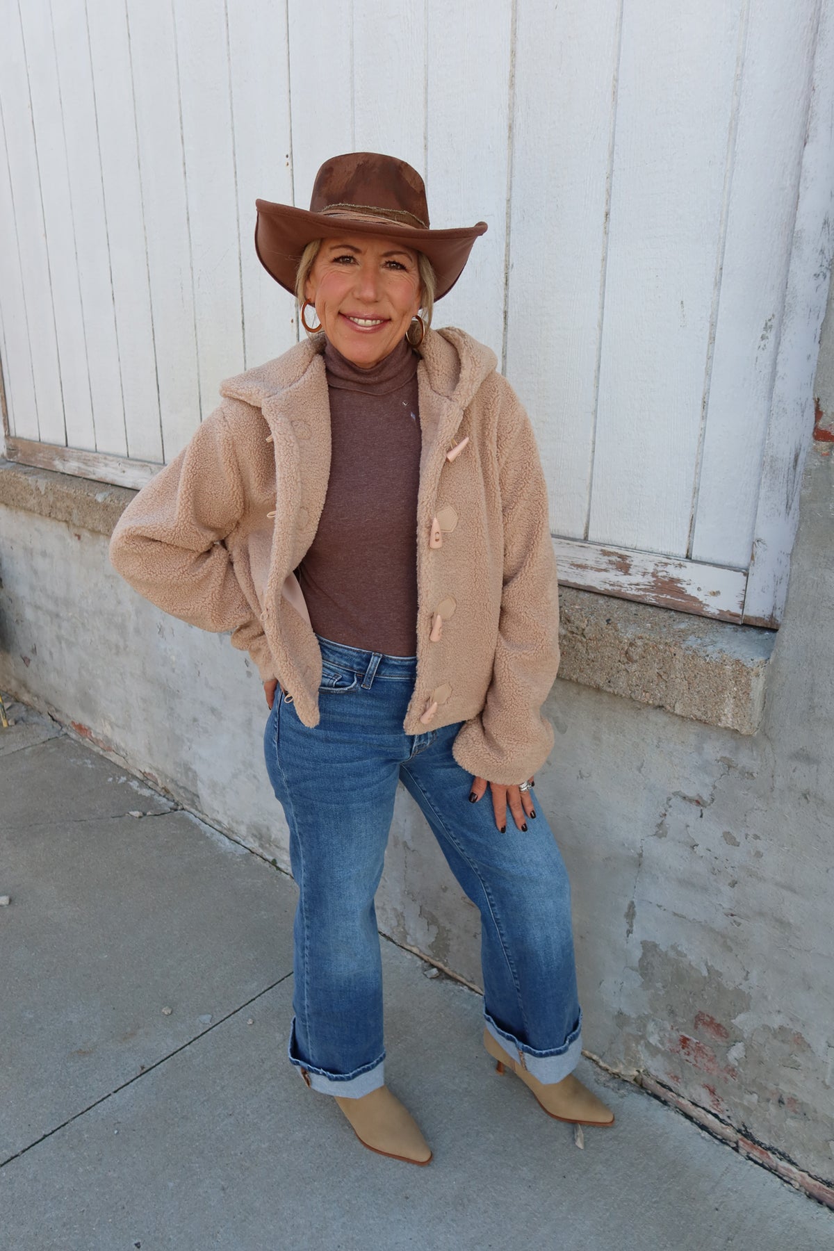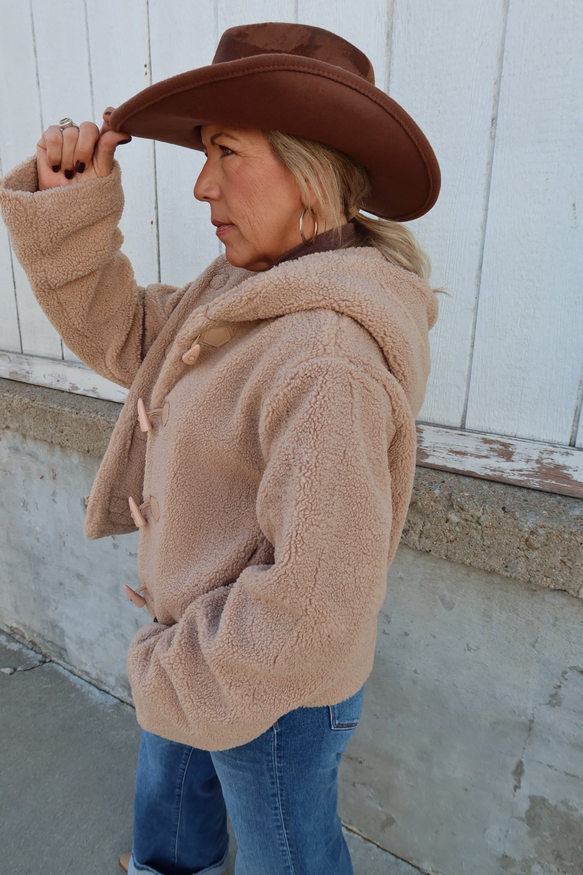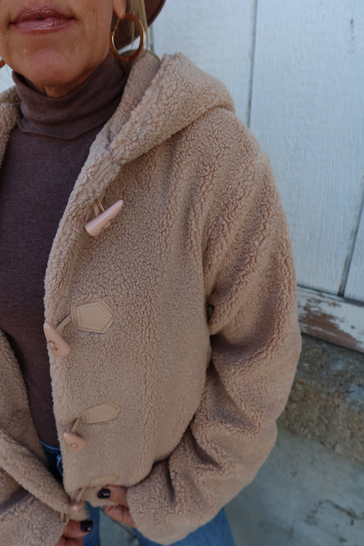 Stay warm and stylish with this Taupe Hooded Jacket, a cozy layering essential. Its soft, fuzzy fabric wraps you in comfort, while the hood adds extra protection against chilly days. Perfect for layering over your favorite outfits, this jacket combines effortless warmth with versatile style for any casual occasion.