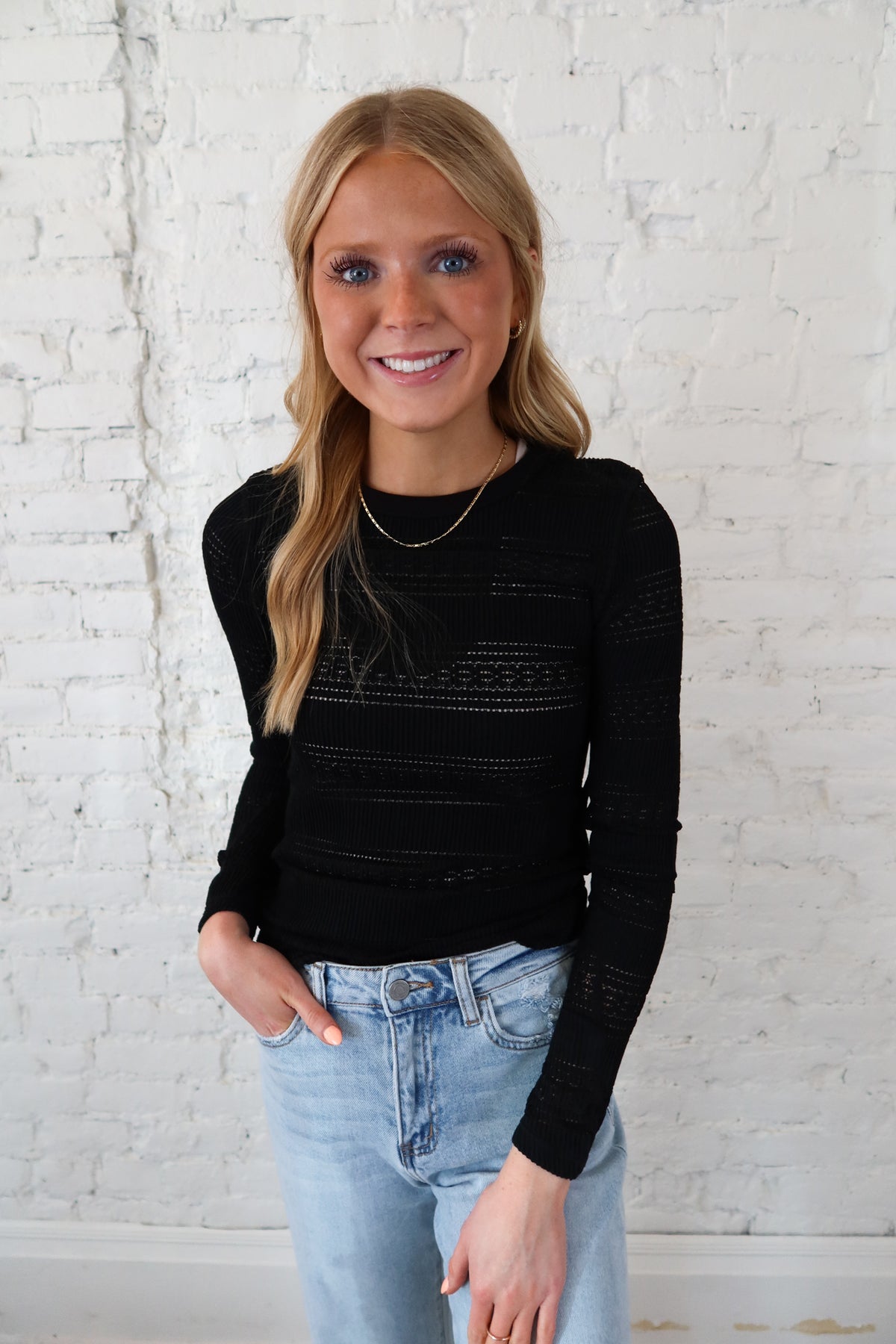 Elevate your wardrobe with the Twilight Textured Black Top, designed to blend timeless style with subtle sophistication. Its unique textured fabric adds depth, making it perfect for any occasion—whether layered for work or worn alone for a night out. The flattering fit enhances your silhouette while offering all-day comfort. Embrace effortless elegance every time you wear this versatile staple.