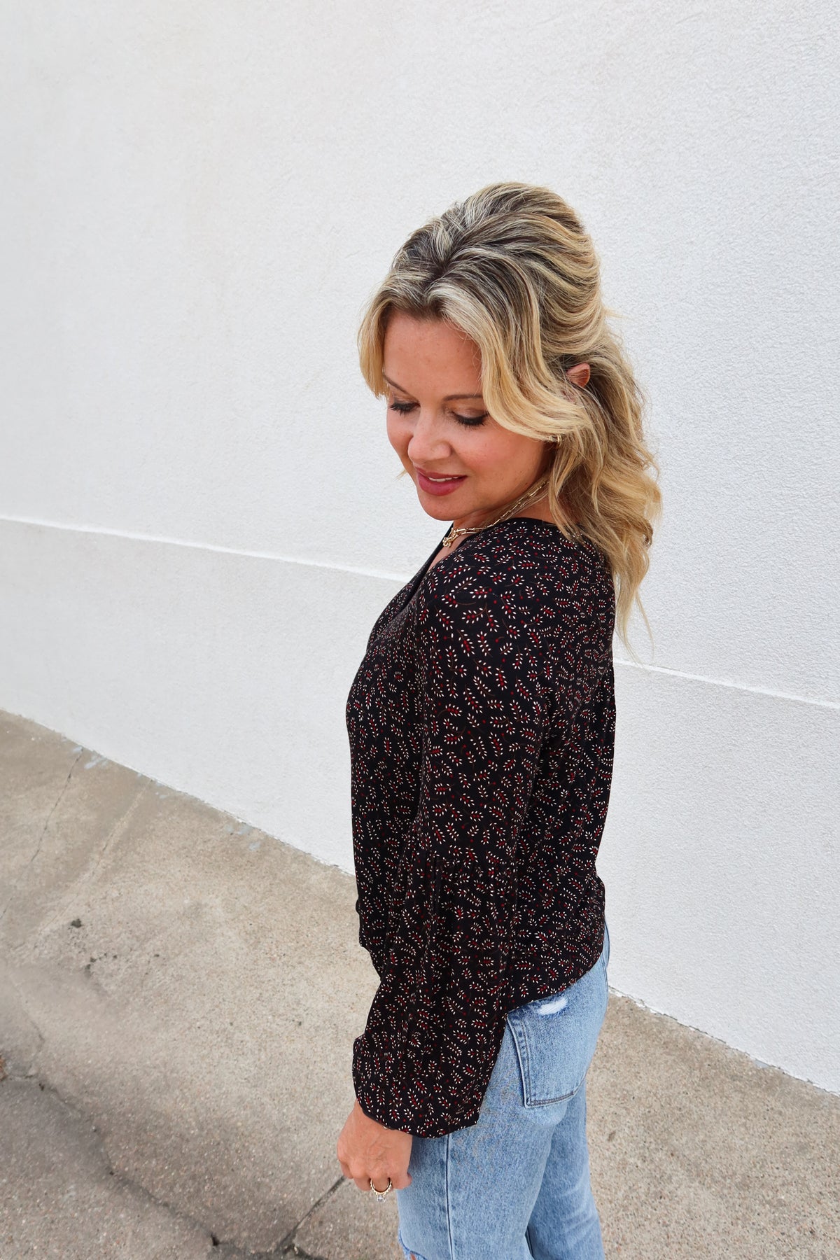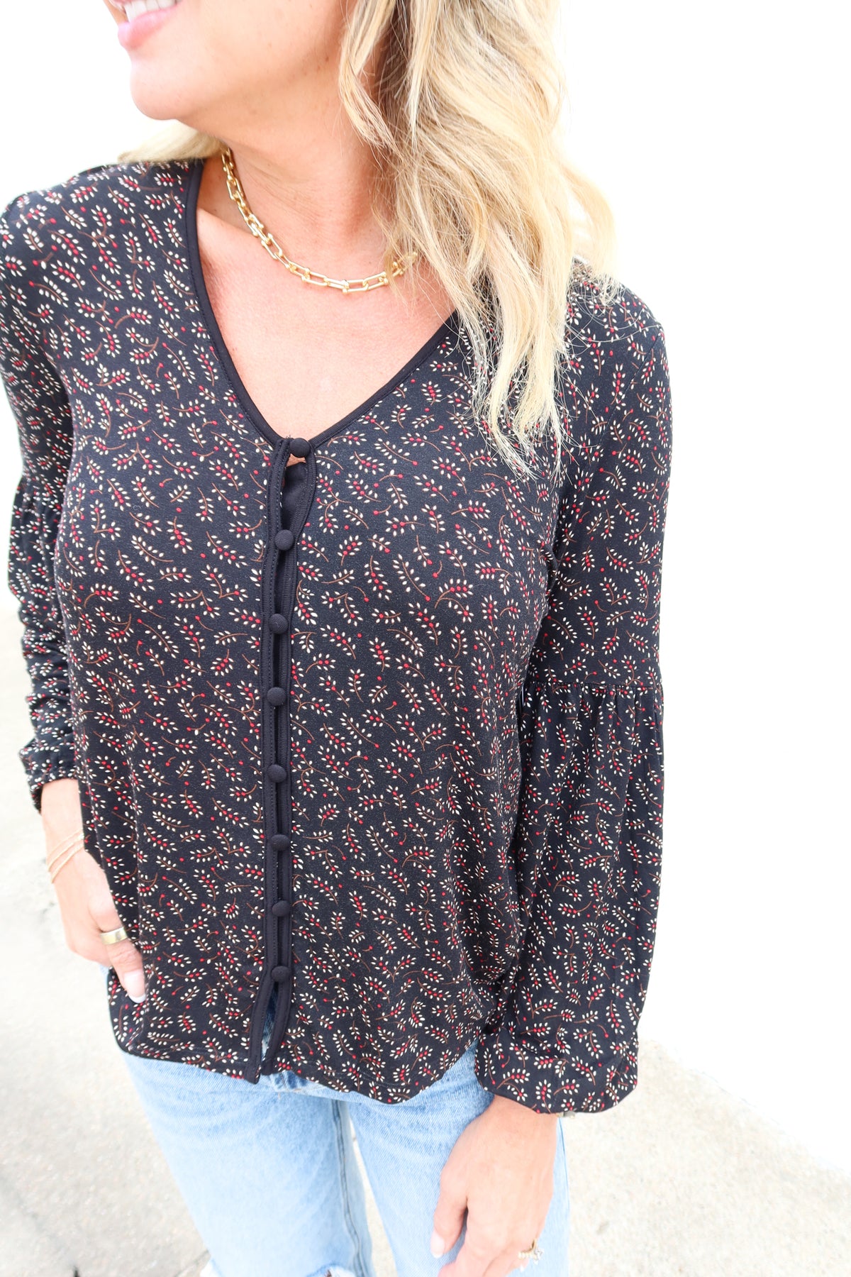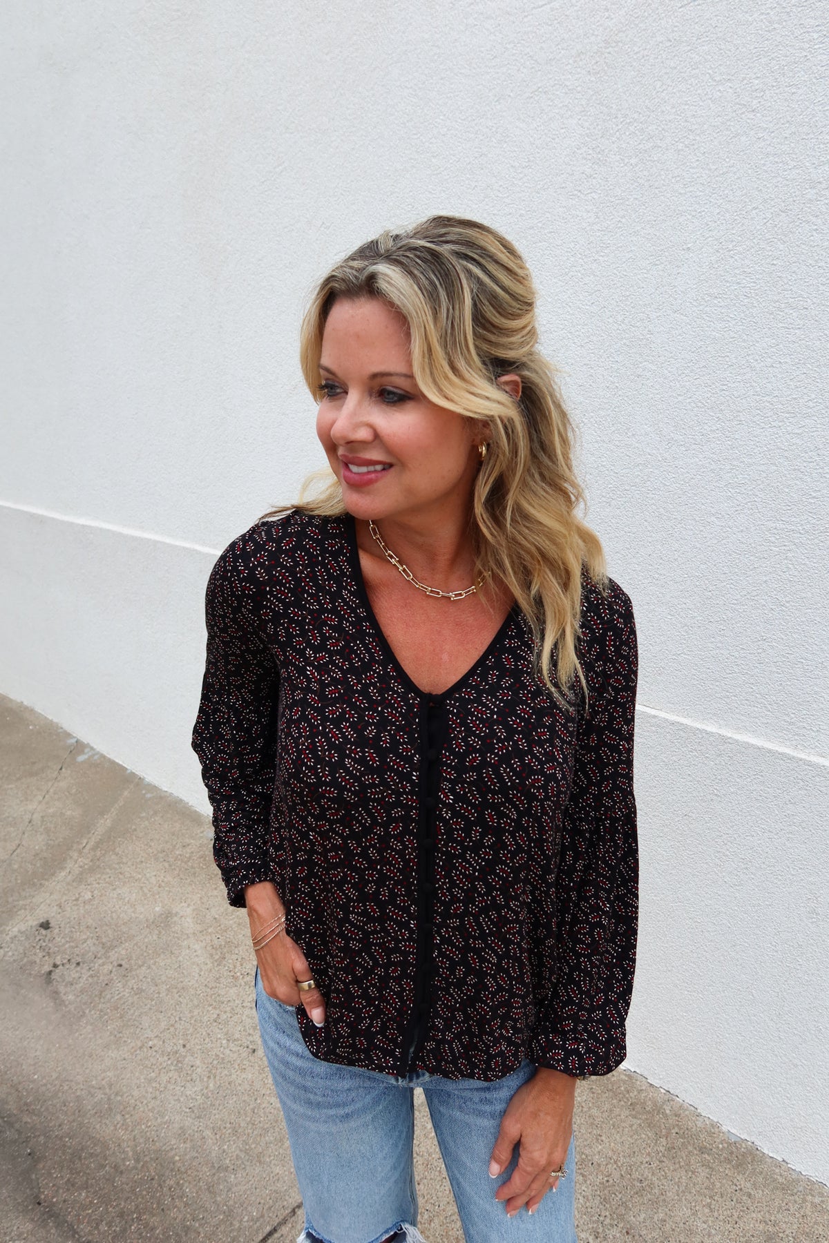 Elevate your wardrobe with the Liverpool Black and Red Ditsy Blouse, designed to blend classic sophistication with a bold splash of color. This dressy button-down blouse features an elegant black and white pattern accented by striking red details, making it perfect for both office settings and evening outings. Its tailored fit and crisp buttons ensure a polished look while offering comfortable wear throughout your day. Make a confident statement wherever you go with this versatile and stylish blouse.