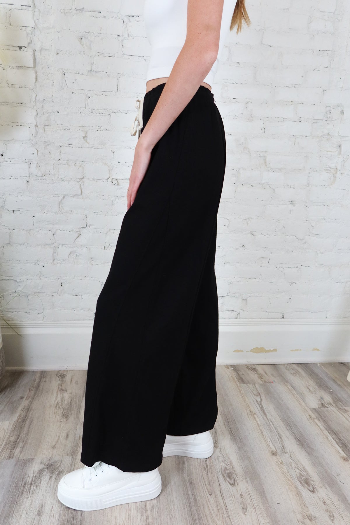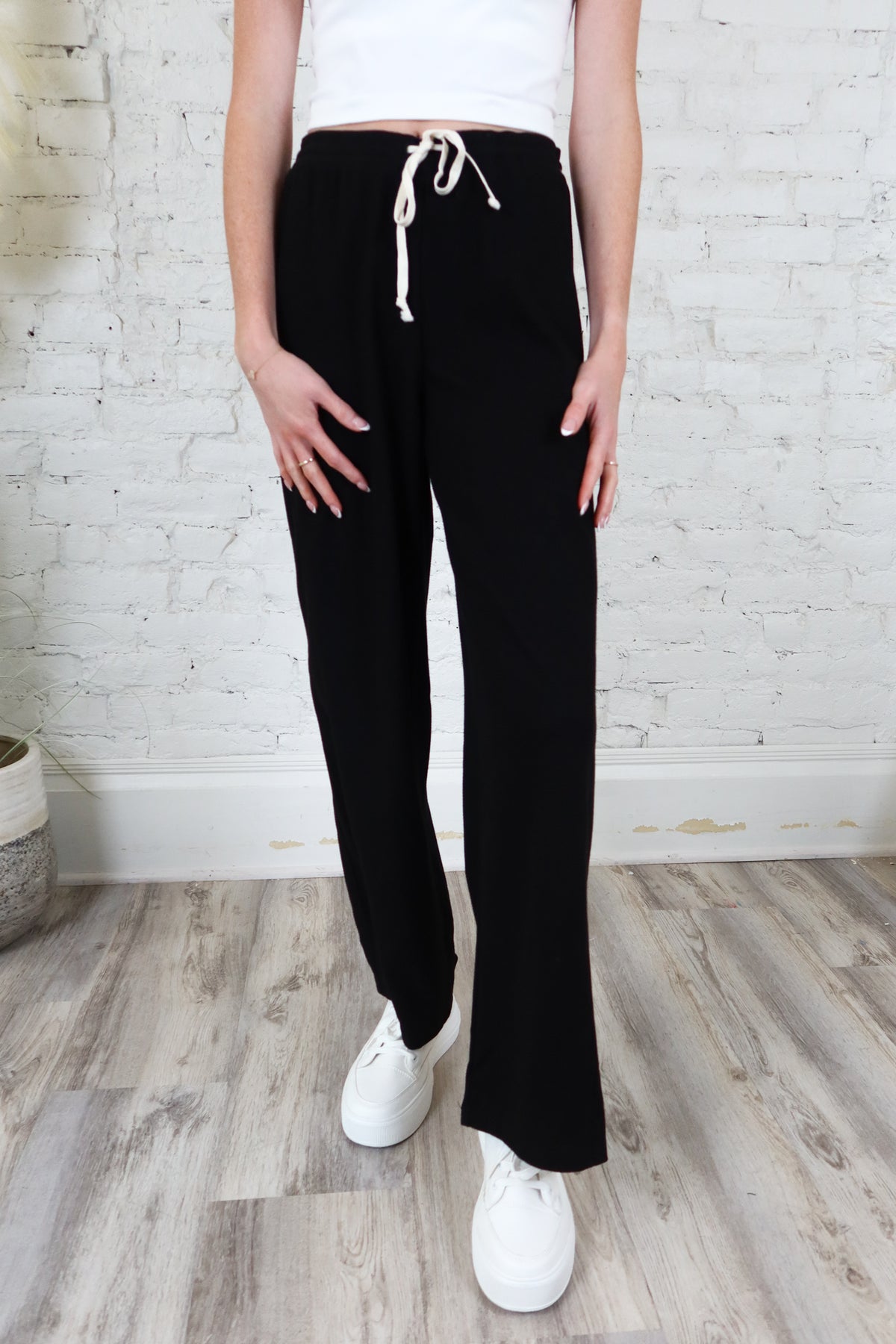 Elevate your wardrobe with the Out & About Black Tie Waist Pant, designed for effortless style and comfort. Featuring a sleek black silhouette and a flattering tie waist, these pants offer a polished look perfect for both casual outings and dressier occasions. The versatile design ensures you stay comfortable while making a confident statement wherever you go.