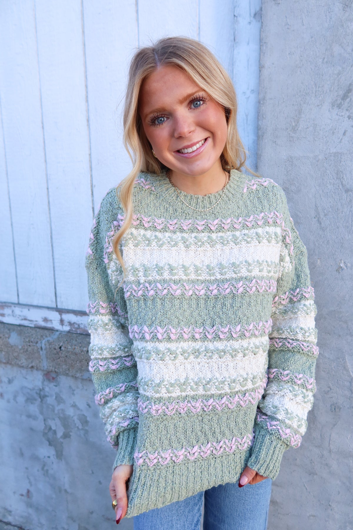 Wrap yourself in comfort with the Sage Cream Warm Wish Sweater, a timeless layering essential that effortlessly transitions from season to season. Crafted in a soothing sage and cream colorway, this sweater delivers soft, cozy warmth without the bulk. Perfect for casual days at home or styled up for weekend outings, its versatile neutral tones pair beautifully with any wardrobe. Experience the perfect balance of relaxed elegance and everyday wearability—a sweater that becomes an instant favorite you'll reach for again and again.