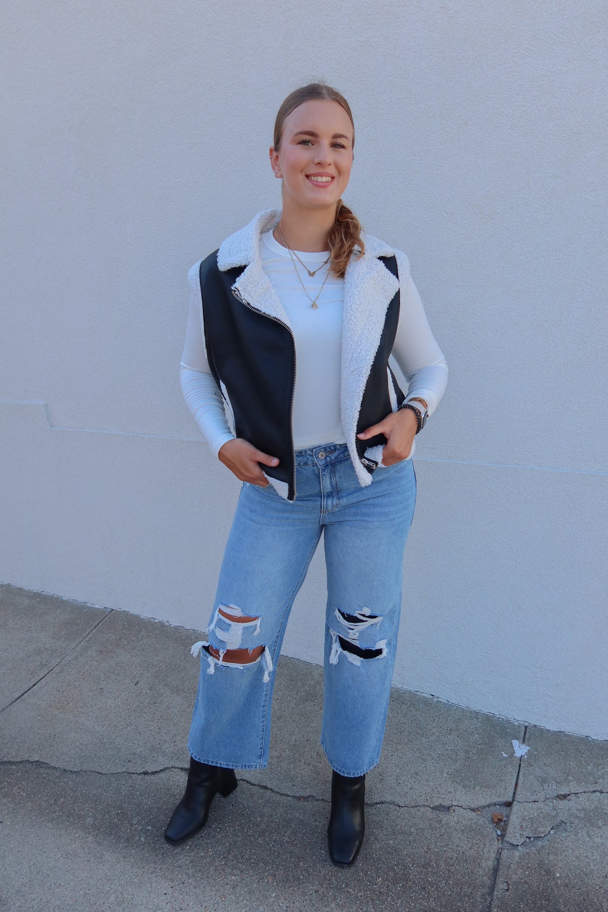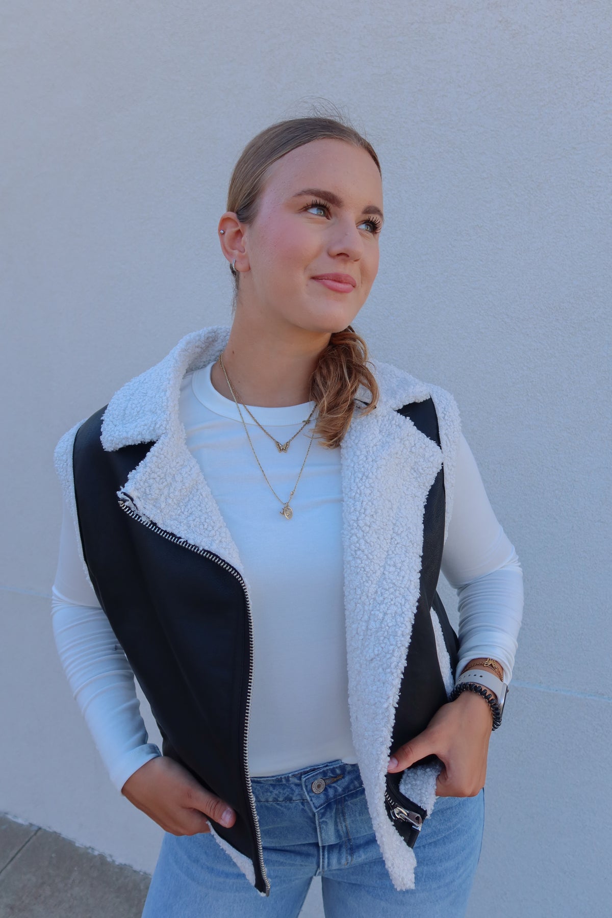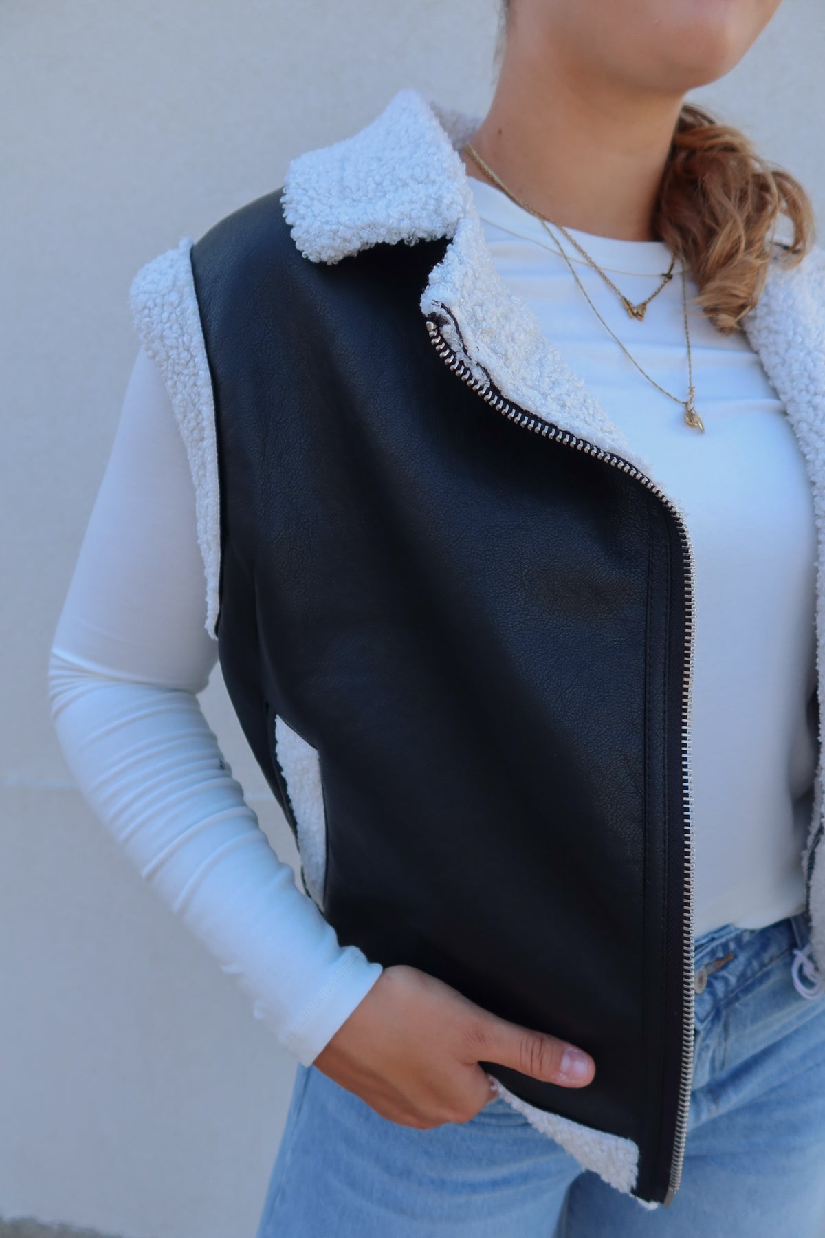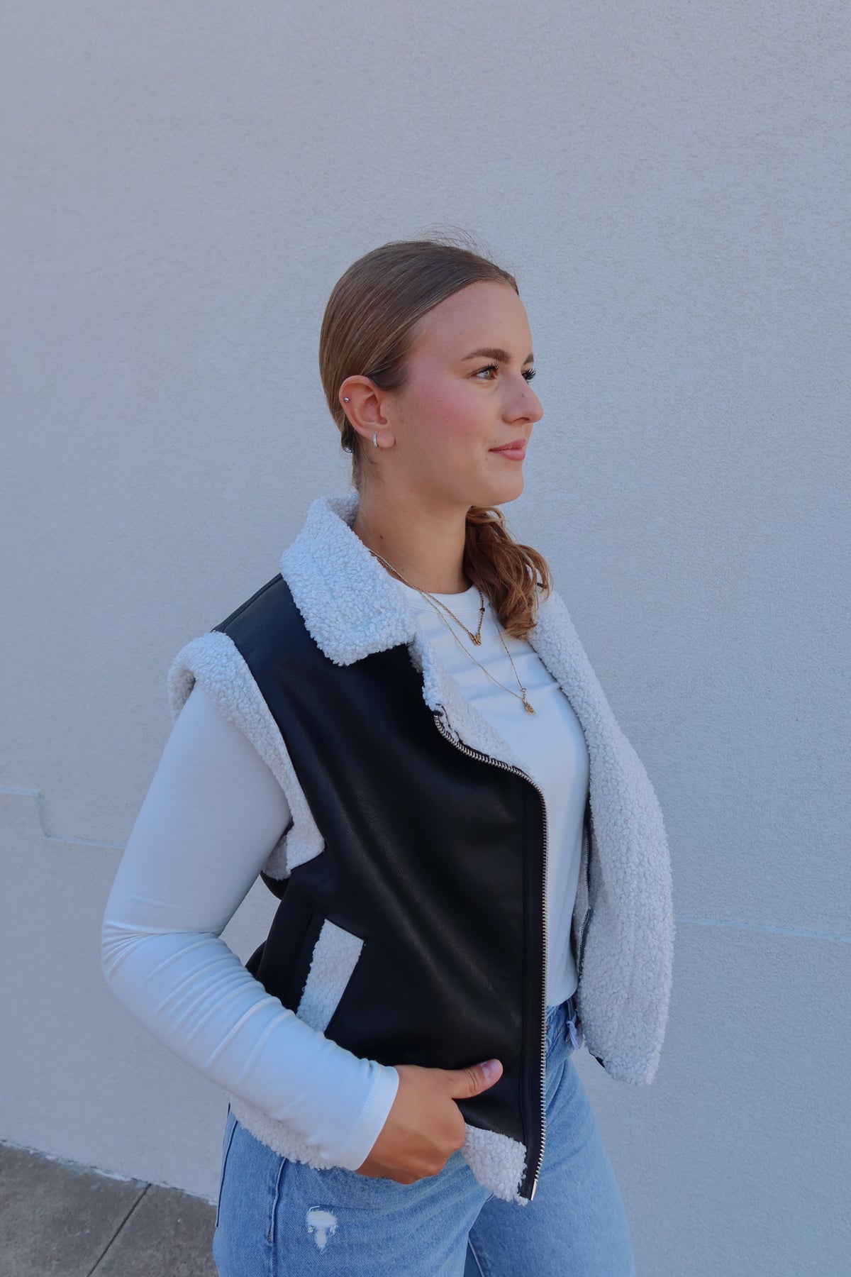 Elevate your outfit with the Black Leather White Trim Vest, a bold layering piece that adds edge and sophistication. Crafted with striking contrast trim, this vest effortlessly enhances any look while providing lightweight warmth. Perfect for transitioning between seasons, it combines style and versatility to keep you confidently ahead of trends.