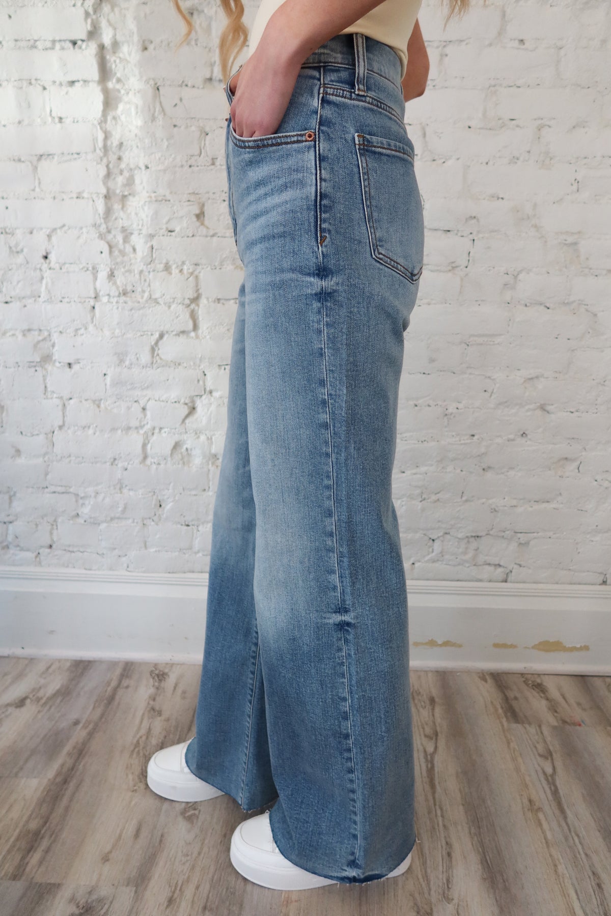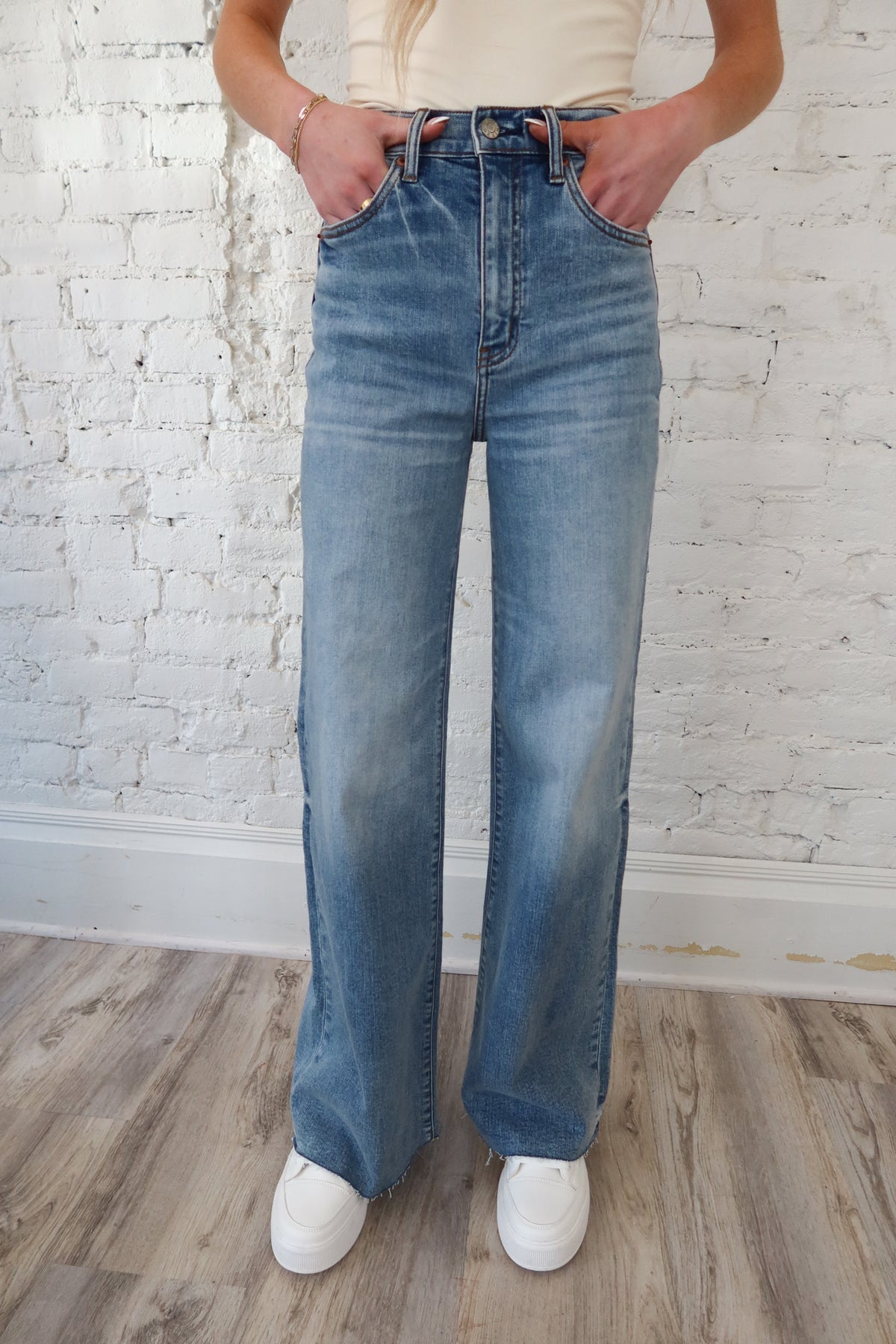 Embrace effortless spring style with these Far Out High Rise Wide Leg Jeans. Featuring a fun light wash and relaxed wide-leg silhouette, they're perfect for creating that laid-back boho vibe. The raw edge bottom adds an edgy, modern touch that feels fresh and intentional. High-rise cut offers flattering coverage and pairs beautifully with crop tops, oversized tees, or tucked-in blouses. Your new go-to for casual days and weekend adventures.