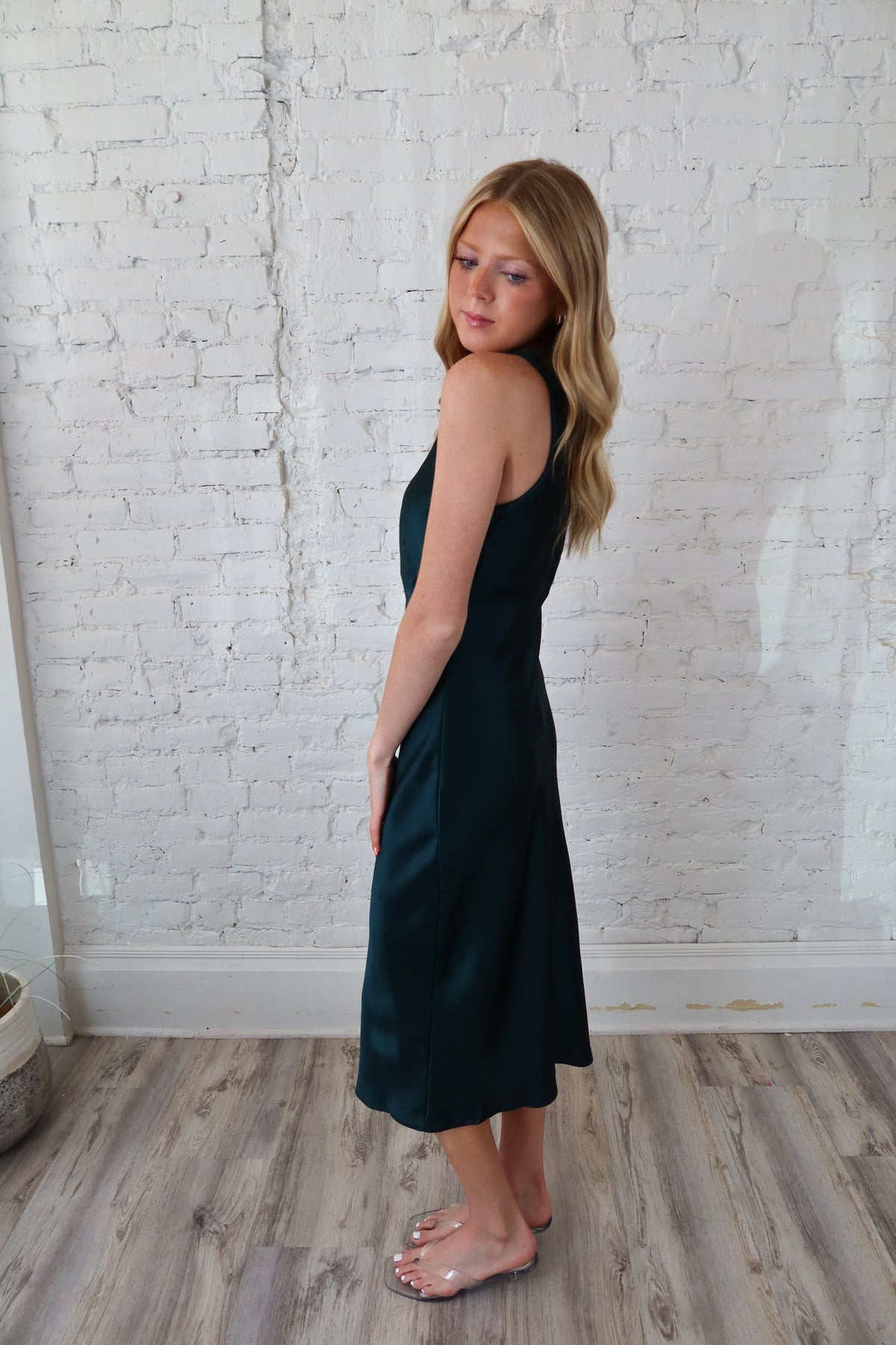 Elevate your autumn wardrobe with the Effortless in Autumn Emerald Satin Dress. Its rich emerald hue and smooth satin fabric create a sophisticated look perfect for any occasion. Designed to flow gracefully, this dress offers comfort without sacrificing style, helping you make an unforgettable statement with ease.