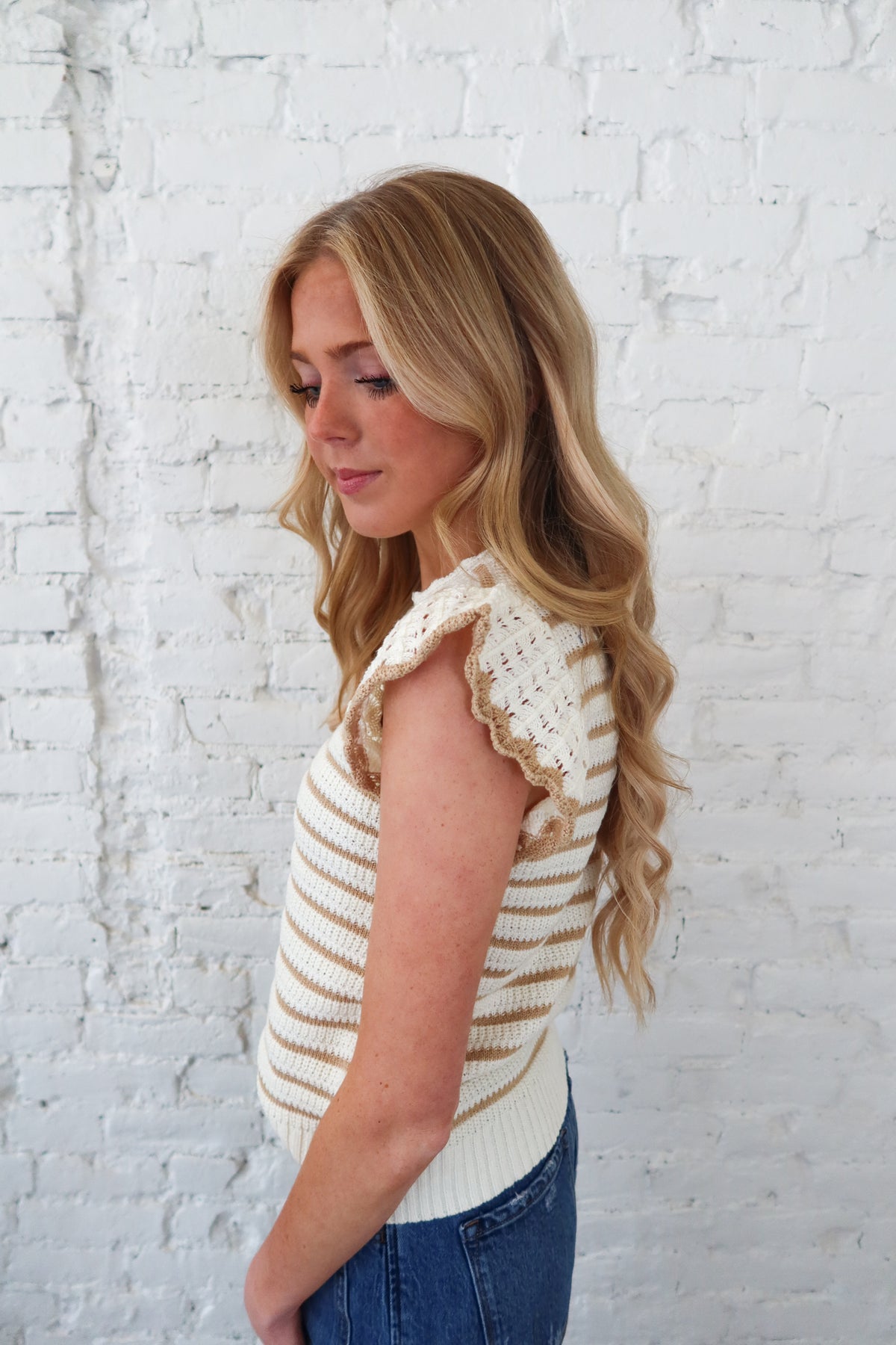 Embrace effortless elegance with this charming flutter sleeve top in a warm latte tone. The delicate flutter sleeves add a romantic, feminine touch perfect for casual outings or dressed-up occasions. Crafted for comfort and style, this versatile piece pairs beautifully with jeans, skirts, or trousers. A wardrobe essential that transitions seamlessly from day to night, bringing a soft, sophisticated vibe to any ensemble.