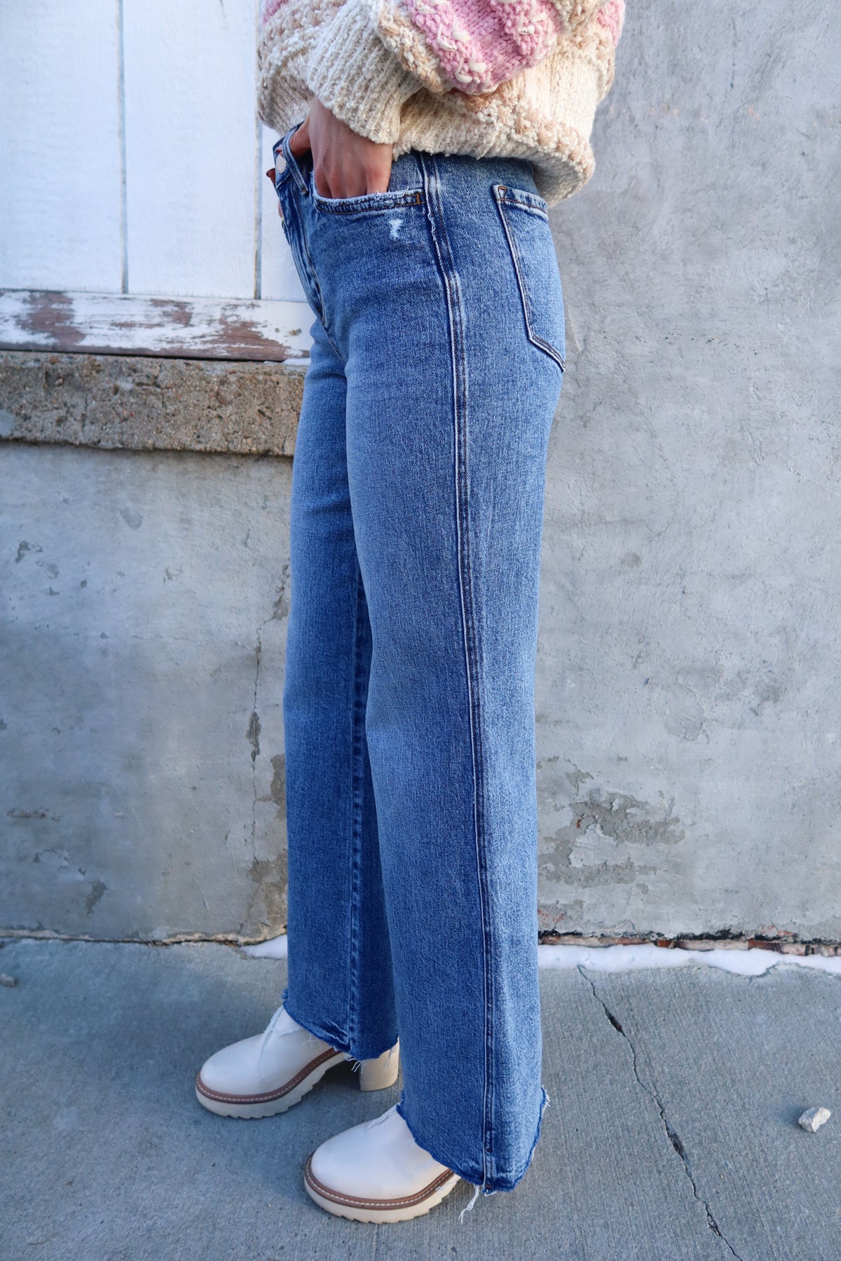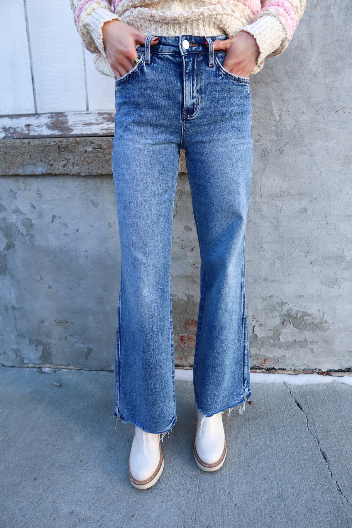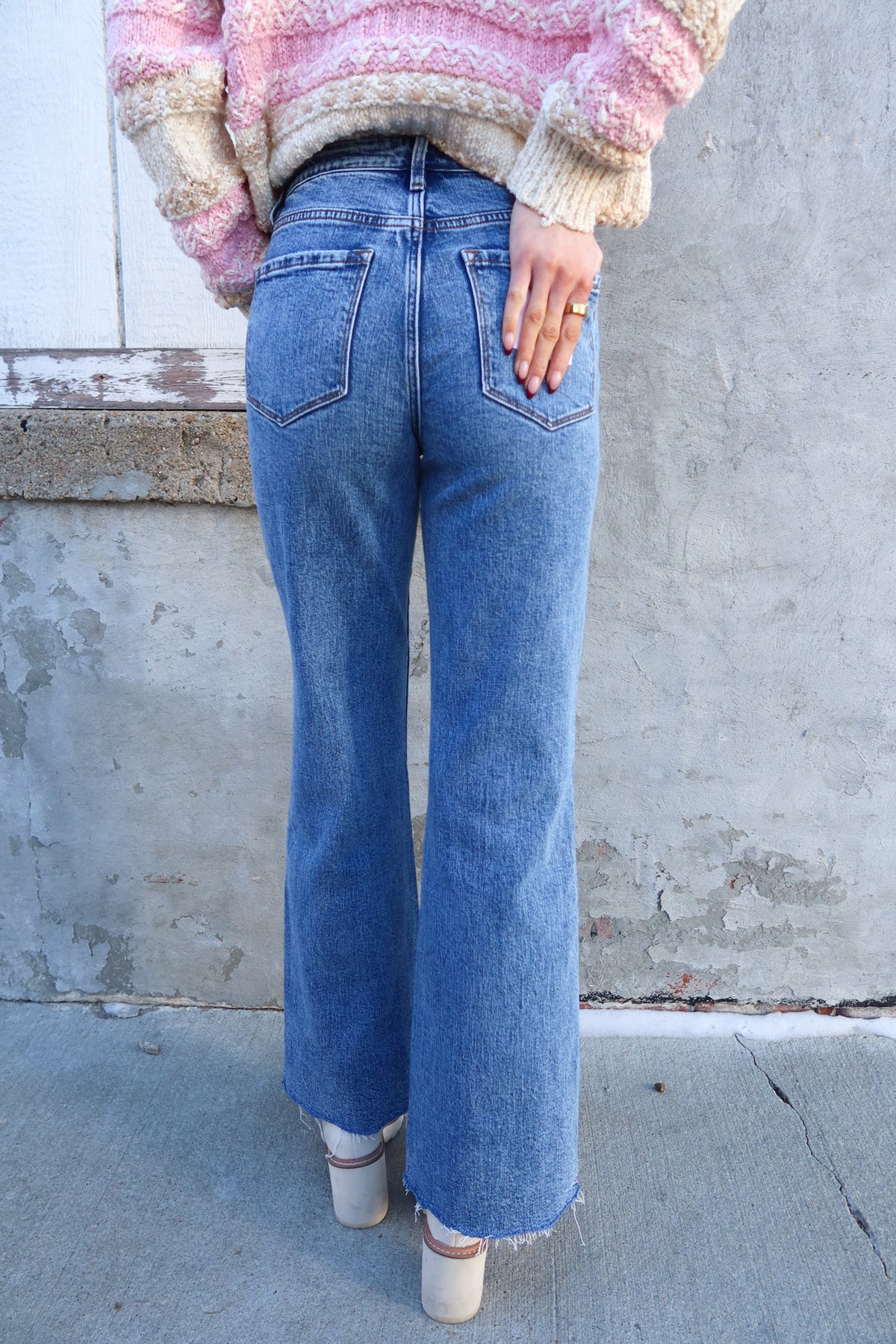 Elevate your denim game with this vintage-inspired flare that combines timeless style with modern comfort. The high-rise cut flatters your silhouette while the comfortable stretch fit moves with you all day. Raw edge detailing and a chic side slit add contemporary edge, while classic five-pocket construction and zip-button closure deliver the reliability you expect.