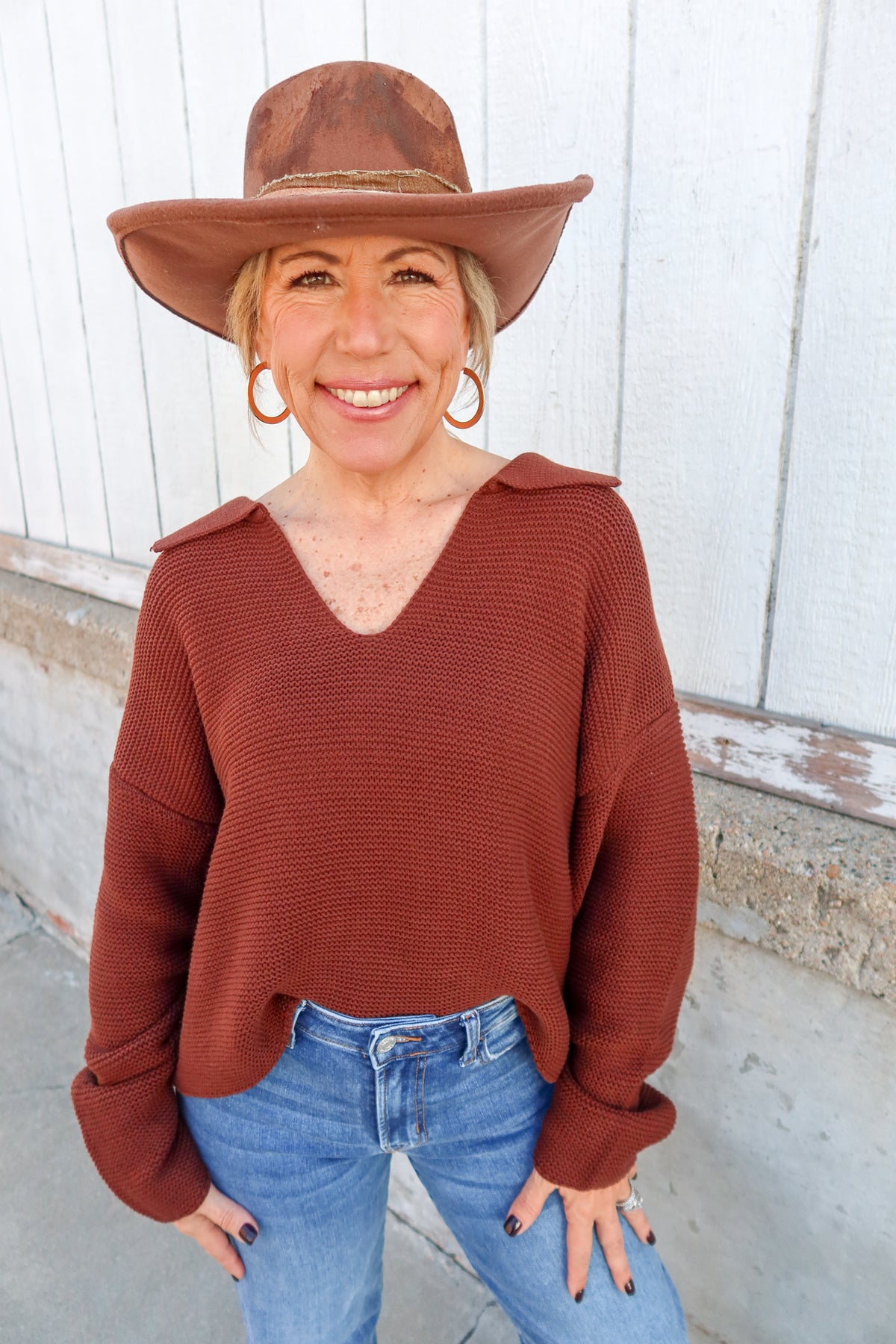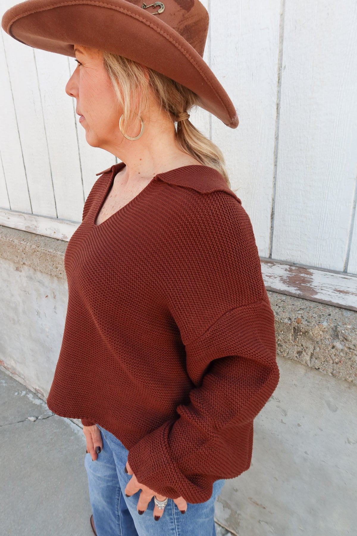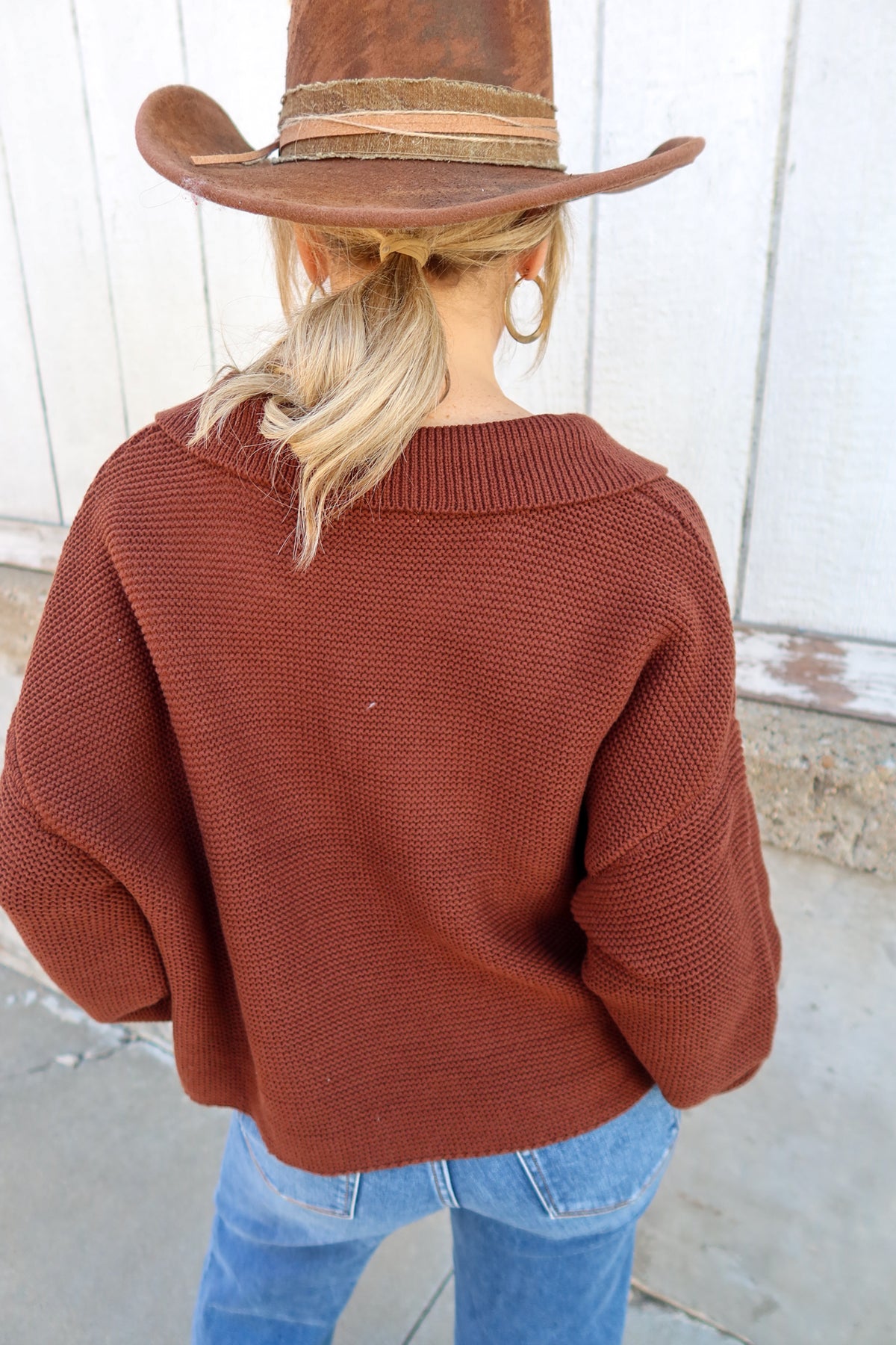 Embrace cozy style this fall with the Brown Collared Long Sleeve Top. Its warm hue and classic collar bring effortless sophistication to everyday looks. Designed for comfort and versatility, this top pairs perfectly with jeans or skirts for casual outings, making it a go-to piece for your seasonal wardrobe.