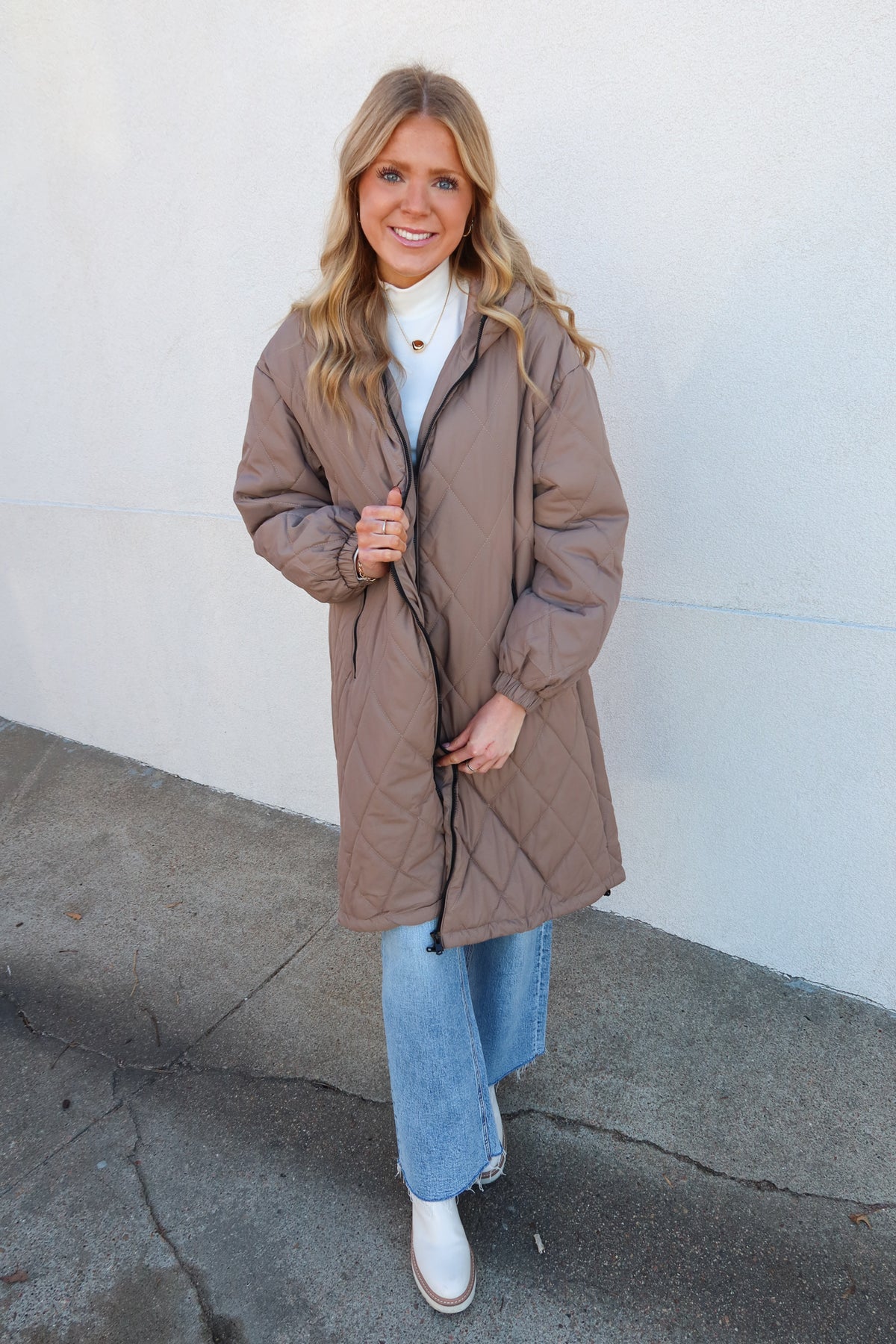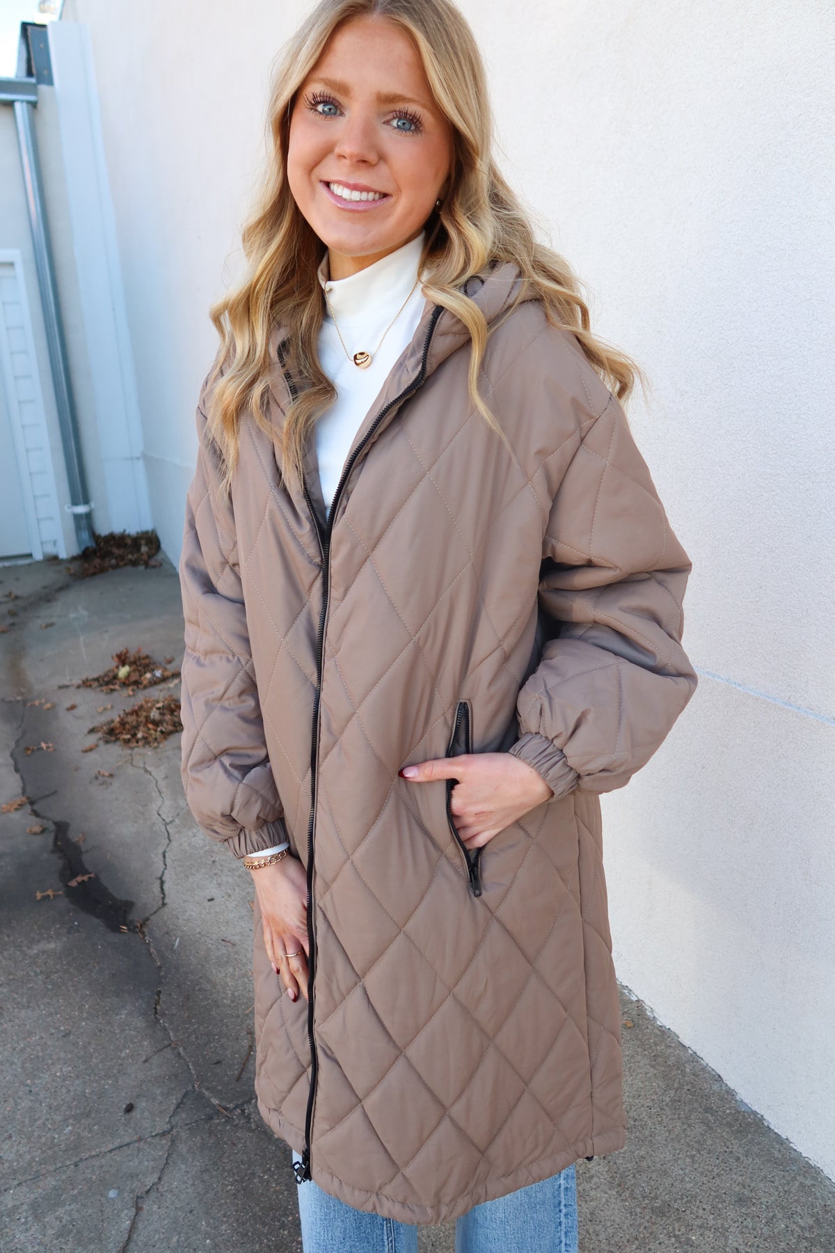 Stay warm and stylish this season with our Mushroom Longline Quilted Puffer Jacket. This versatile piece features premium quilted construction and a flattering extended length that works beautifully over everything from casual jeans to tailored trousers. The rich mushroom tone complements any winter wardrobe while the lightweight puffer design delivers serious insulation without bulk. Perfect for layering or wearing solo, this jacket transitions seamlessly from errands to evening plans. Invest in a timeless outerwear essential that keeps you cozy and chic all season long.
