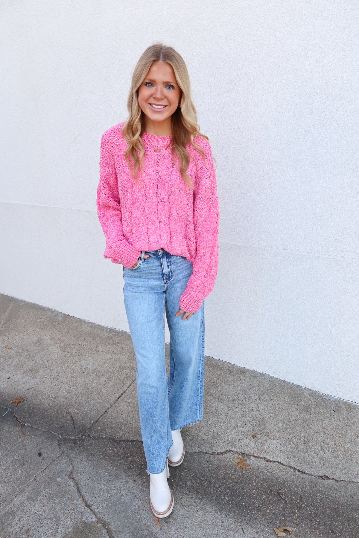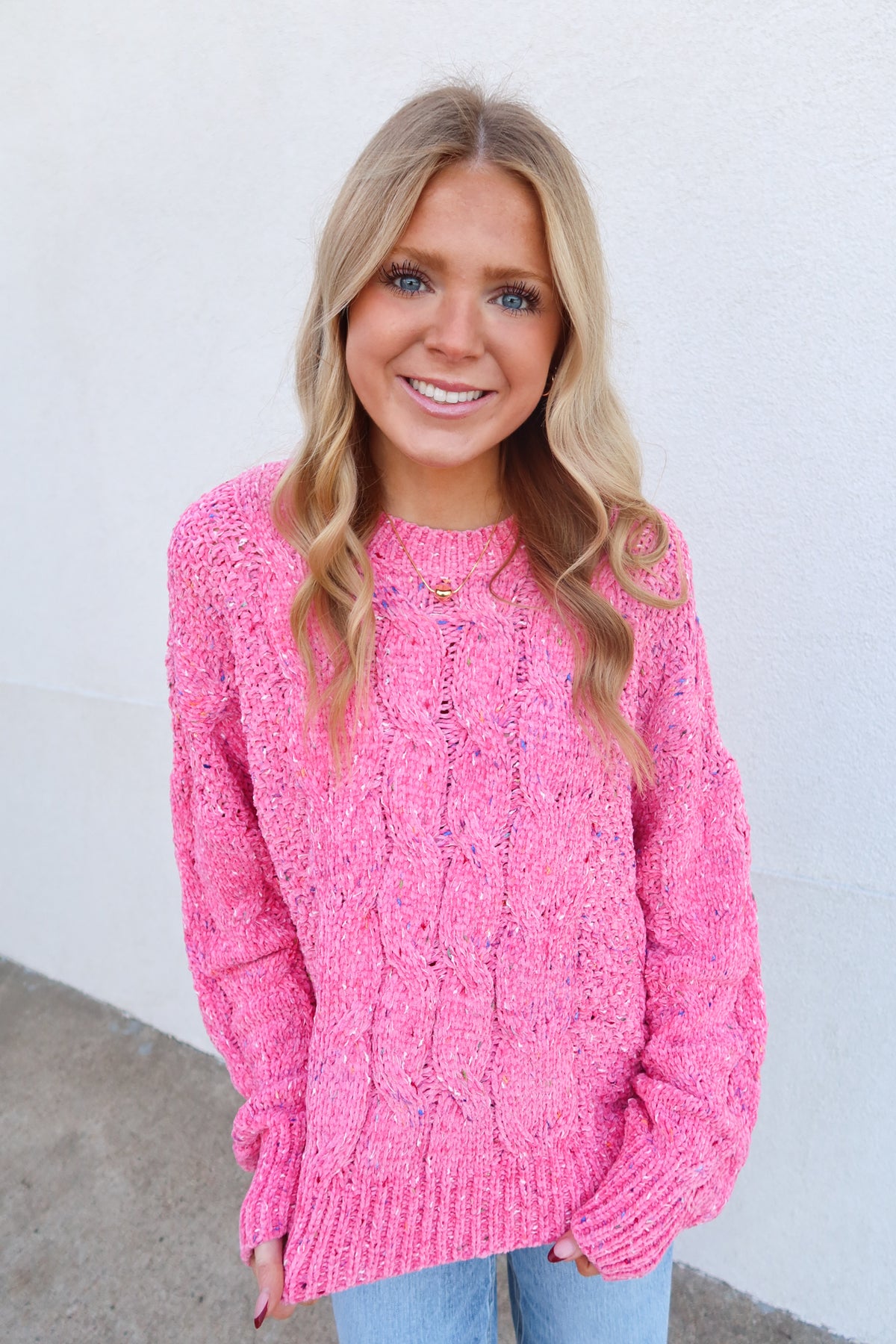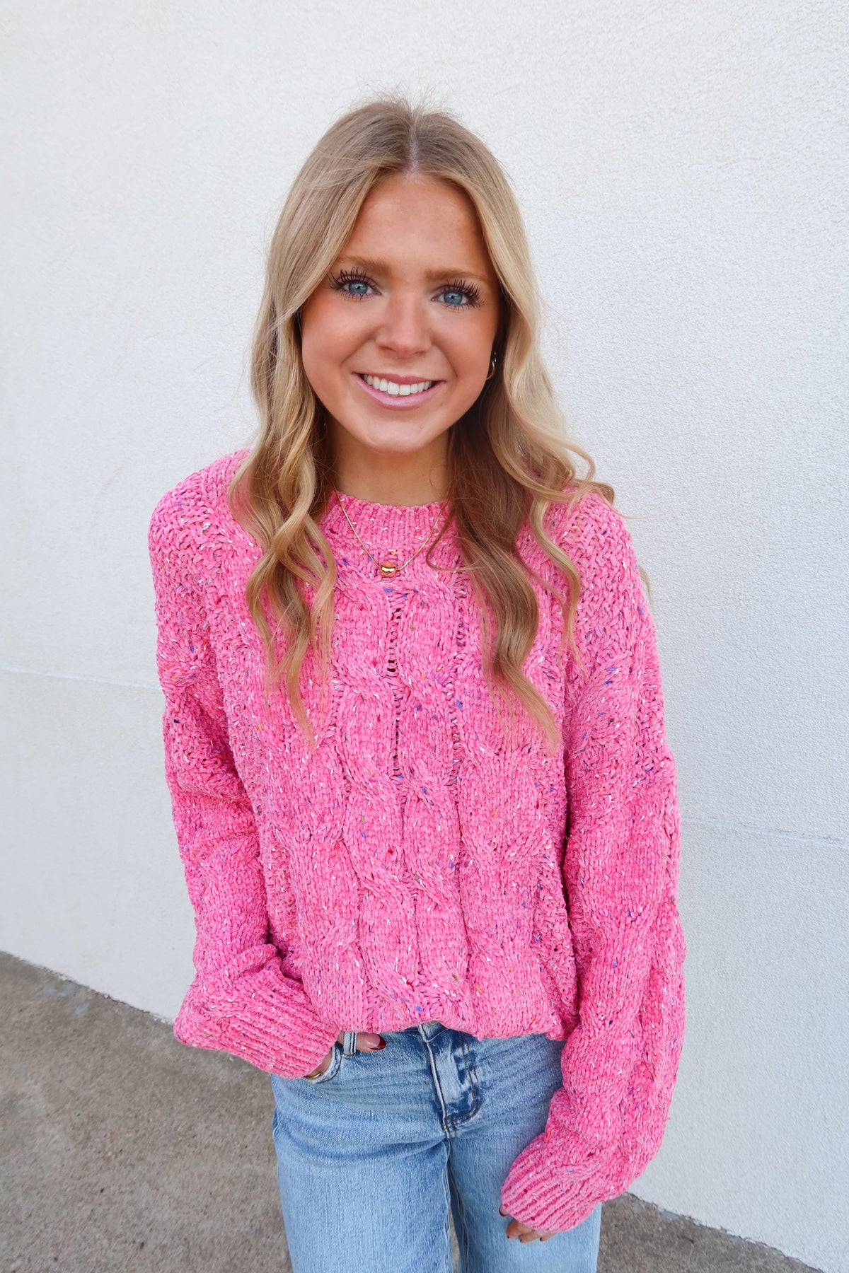 Wrap yourself in timeless elegance with this charming cable knit sweater in a soft pink hue. The intricate cable pattern adds sophisticated texture and visual interest, while the cozy knit fabric provides warmth and comfort for cooler days. Perfect for layering or wearing solo, this versatile piece transitions effortlessly from casual weekends to polished office settings. The classic design ensures it'll remain a wardrobe staple for seasons to come. Elevate your everyday style with this must-have sweater that combines comfort with understated sophistication.