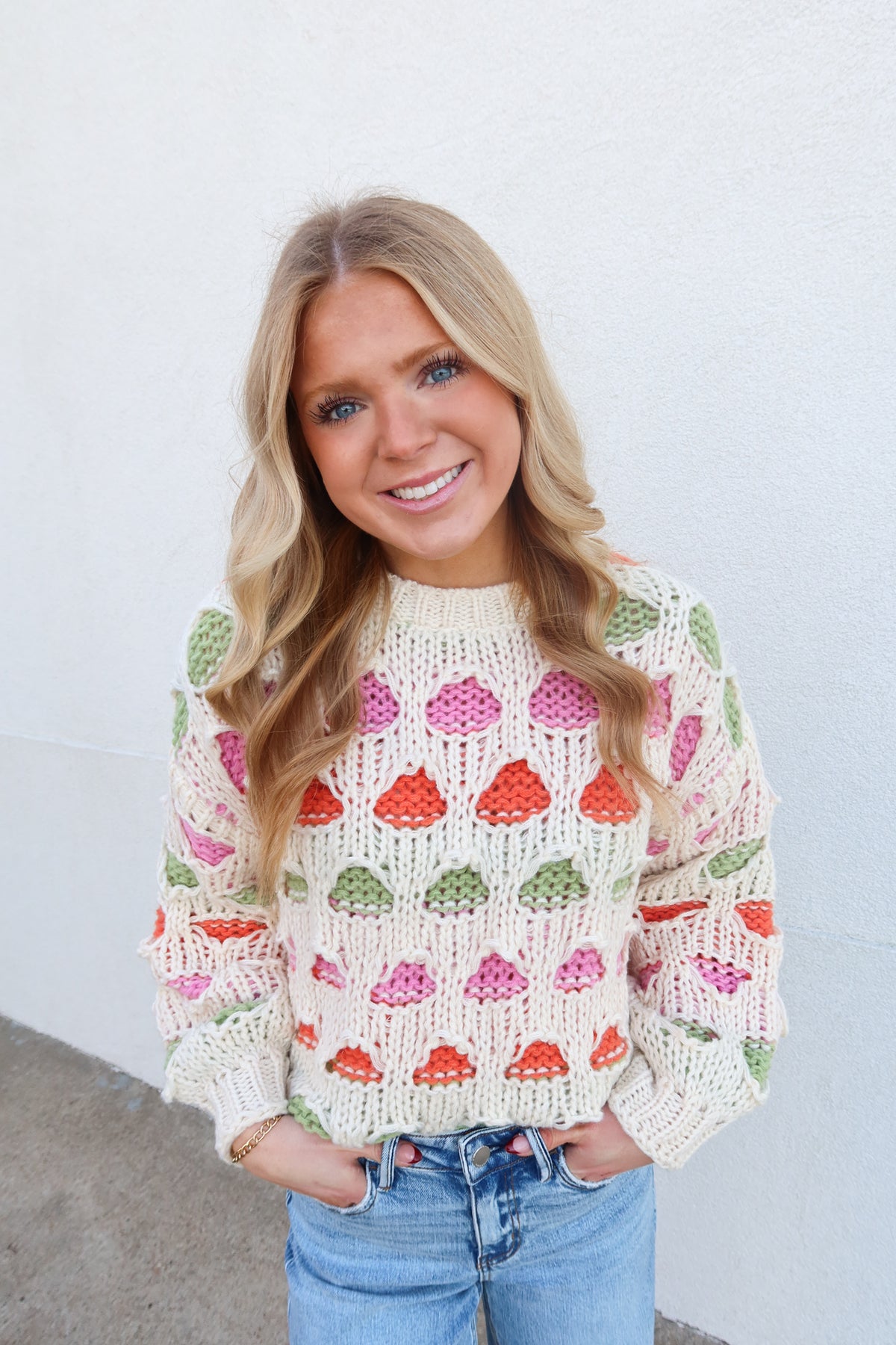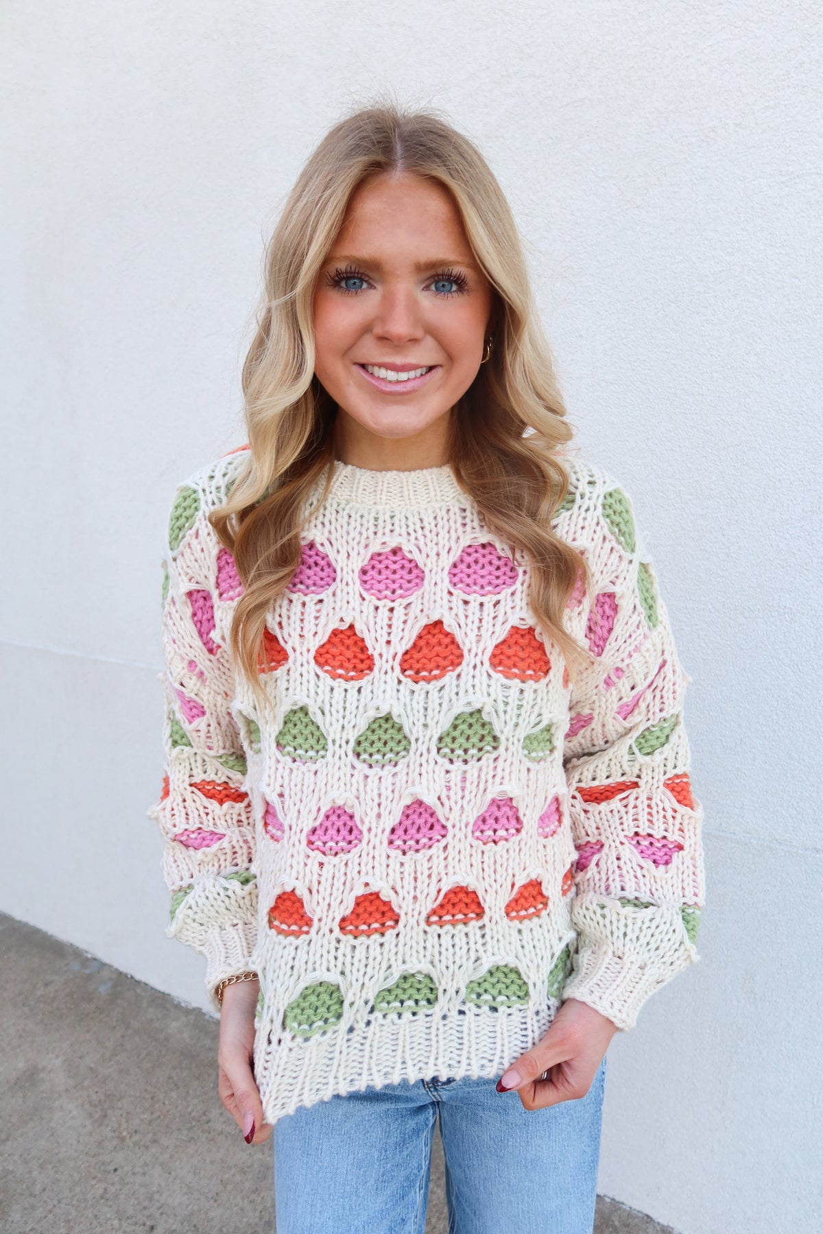 Wrap yourself in warmth and color with this charming Ivory Rainbow Hug Sweater. Featuring a soft ivory base adorned with vibrant rainbow accents, this cozy knit brings joy and personality to your everyday wardrobe. The gentle hug-inspired design offers comfort without compromise, making it perfect for layering or wearing solo. Whether you're seeking a statement piece that celebrates individuality or simply craving a sweater that feels as good as it looks, this versatile style delivers on both fronts. Ideal for anyone who believes fashion should be fun, colorful, and utterly wearable.