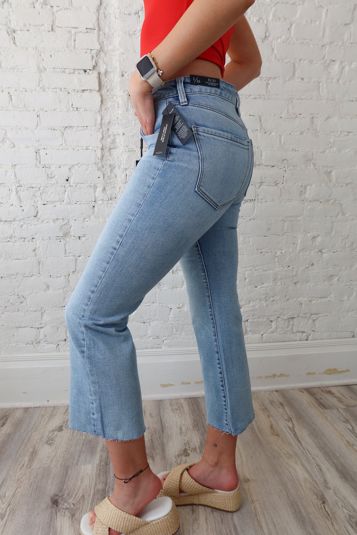 Discover the perfect blend of comfort and style with the Liverpool San Clement Hannah HR Cropped Jean. Crafted with stretchy fabric and featuring a trendy raw hem, these jeans provide a flattering fit and effortless cool for any occasion. Upgrade your wardrobe with these must-have jeans now!