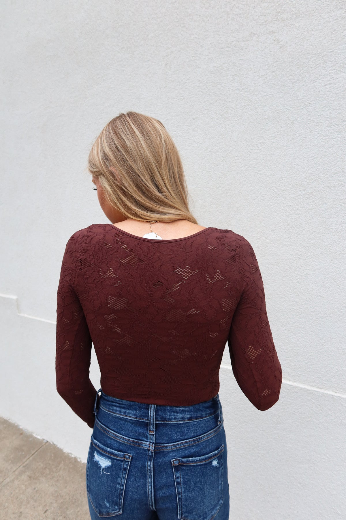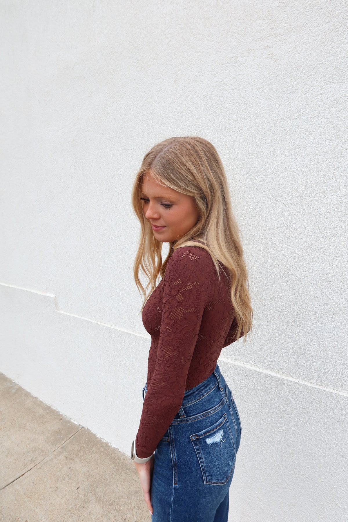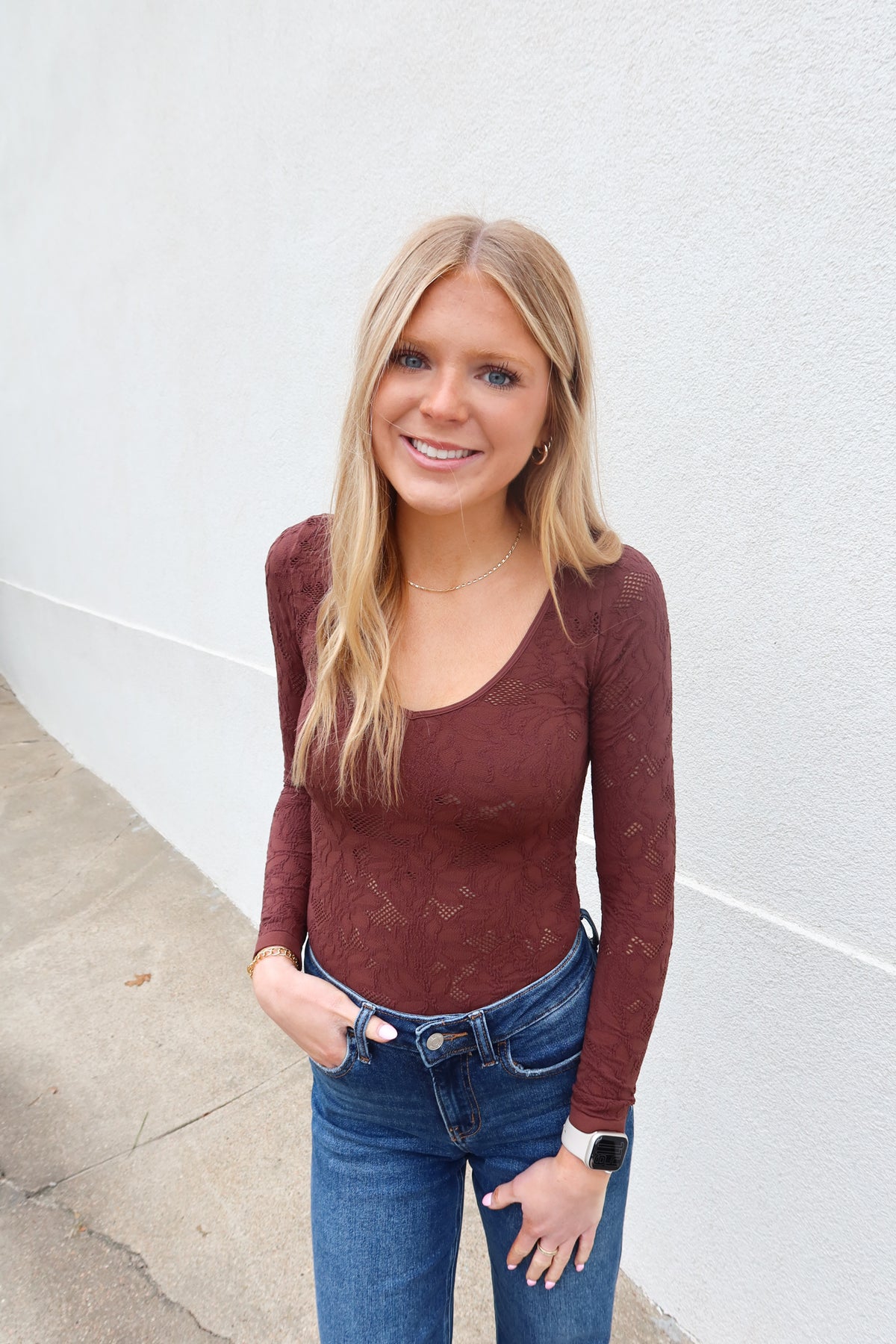 the French Roast Lace Textured Bodysuit — a piece that blends sophistication and sensuality with effortless grace. Crafted in a rich, deep coffee hue, this bodysuit features intricate lace detailing and a beautifully textured finish that hugs your curves in all the right places. The delicate sheer panels offer a subtle hint of allure, while the smooth silhouette ensures a flawless fit under any outfit. Perfect for layering or wearing on its own, this bodysuit is where confidence meets elegance — bold, refined, and undeniably irresistible.