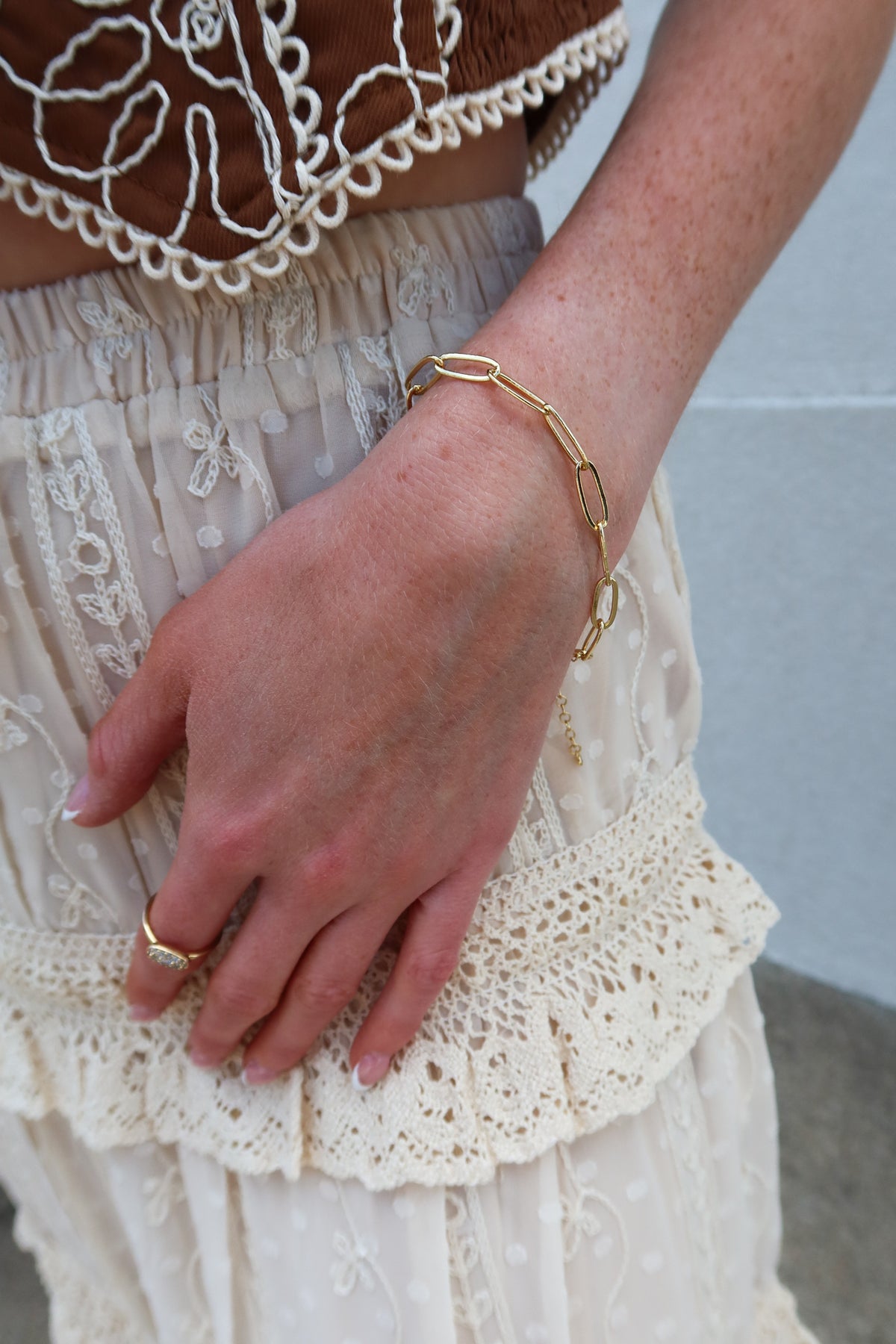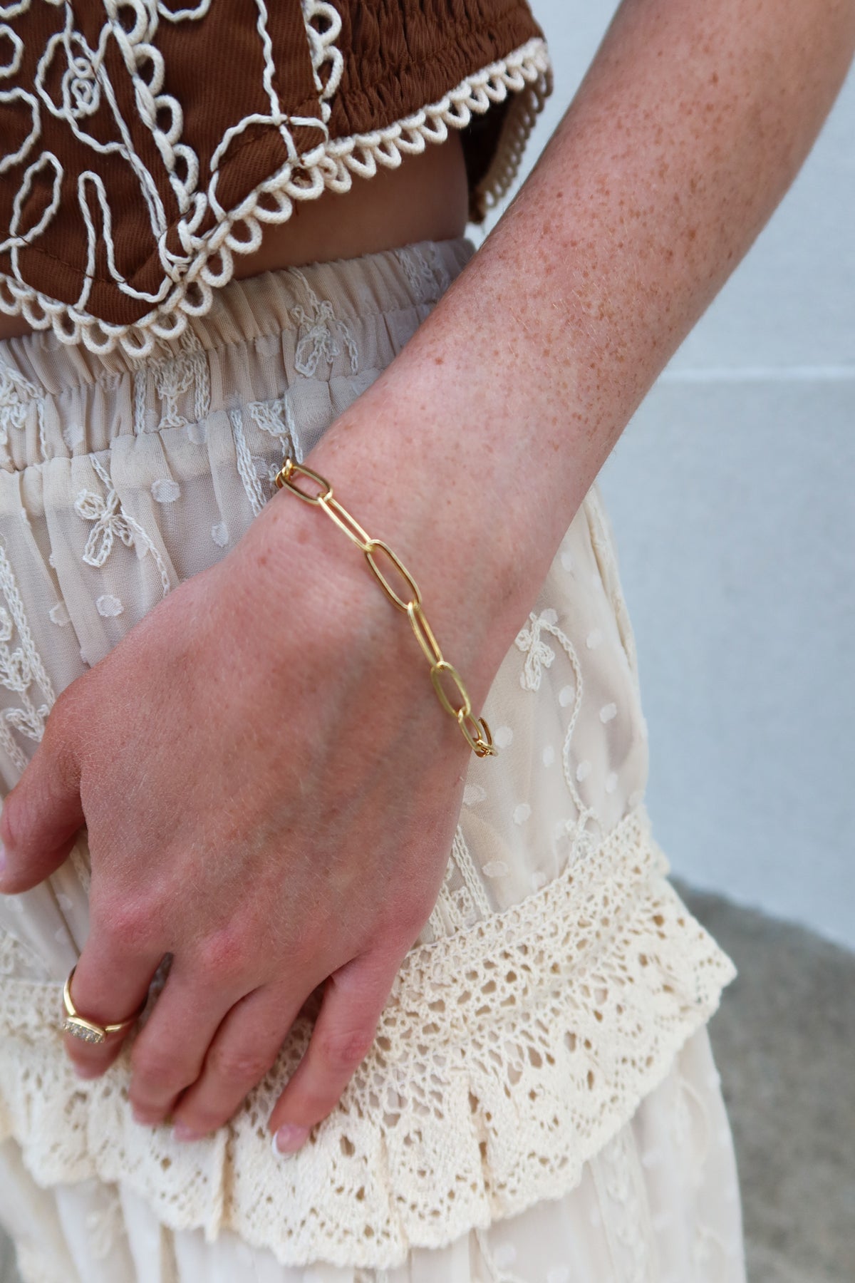 Add a touch of timeless elegance with the Me And Mine Gold Link Bracelet. Featuring a sleek, simple gold link design, this bracelet effortlessly complements any outfit. Its refined style makes it perfect for daily wear or layering with other pieces to create a personalized look that stands out with subtle sophistication.