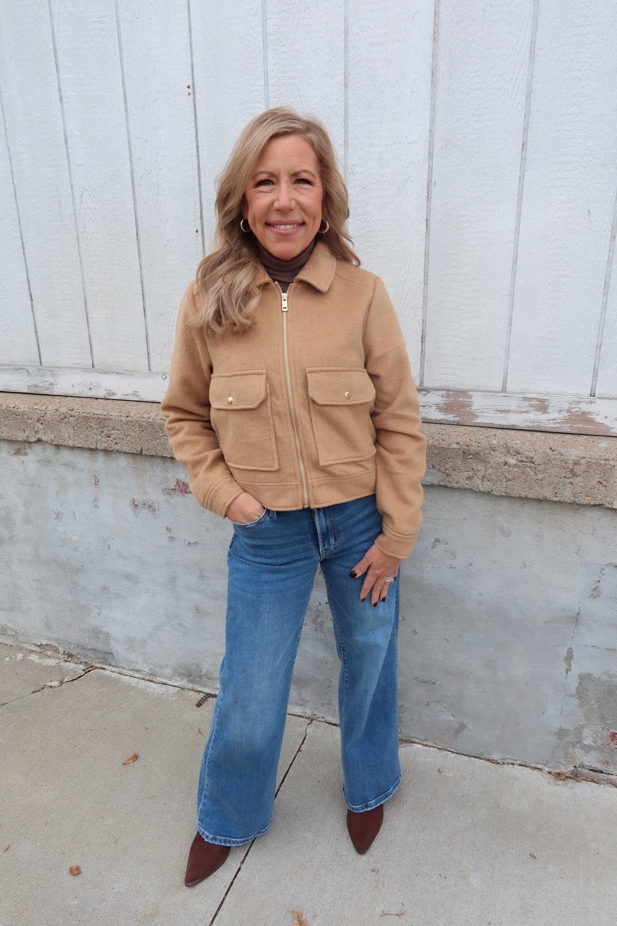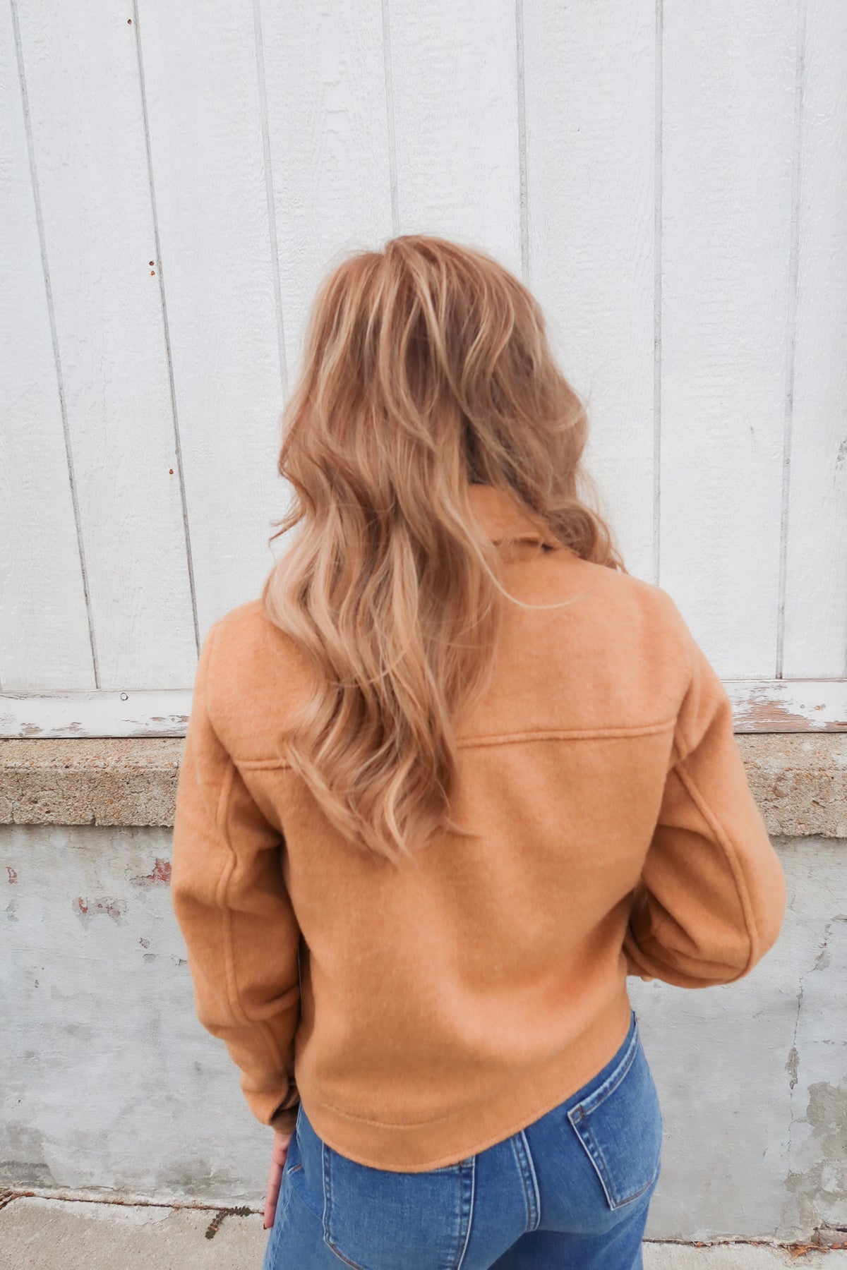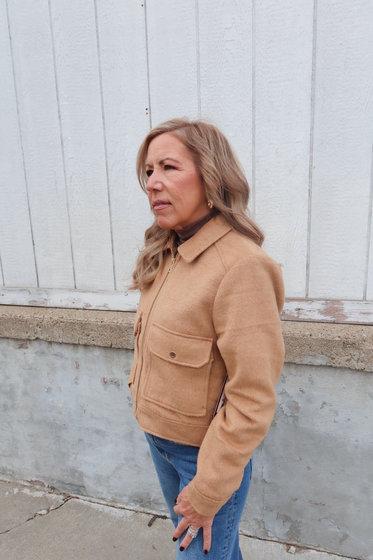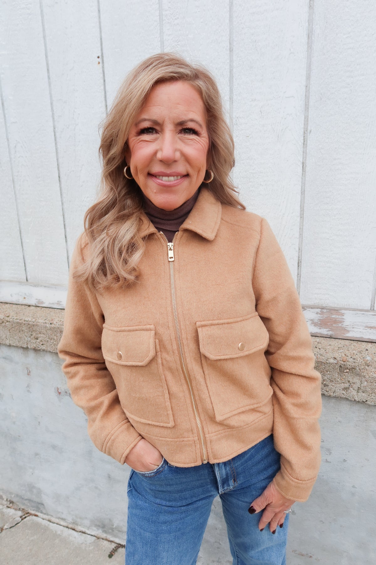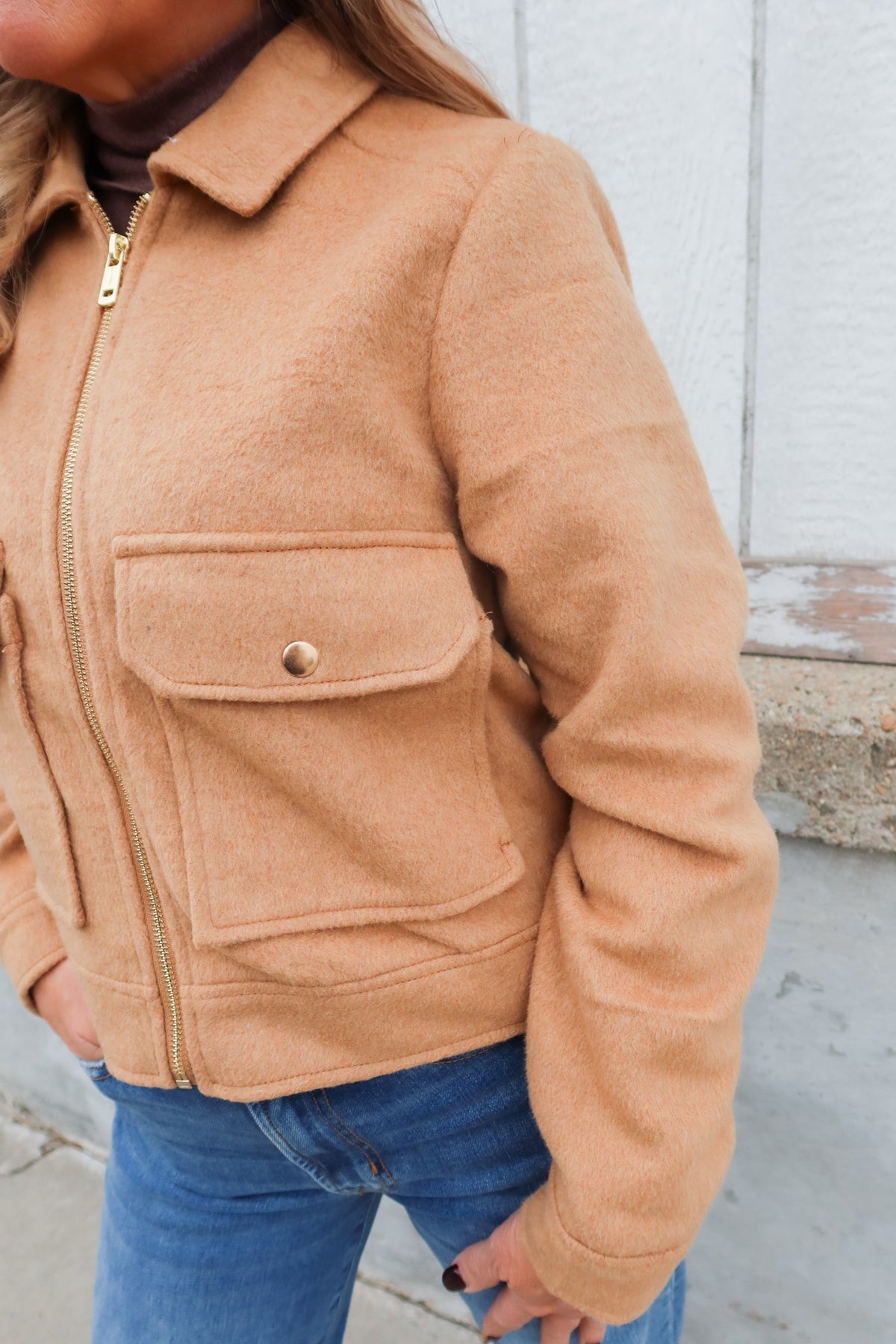 Elevate your everyday style with this sophisticated camel jacket, designed for those who refuse to settle for ordinary. The refined collared neckline frames your face beautifully, while luxurious gold metal detailing adds an unexpected touch of glamour and polish. Perfect for layering over your favorite pieces, this versatile jacket transitions seamlessly from office to evening, giving you endless styling possibilities.