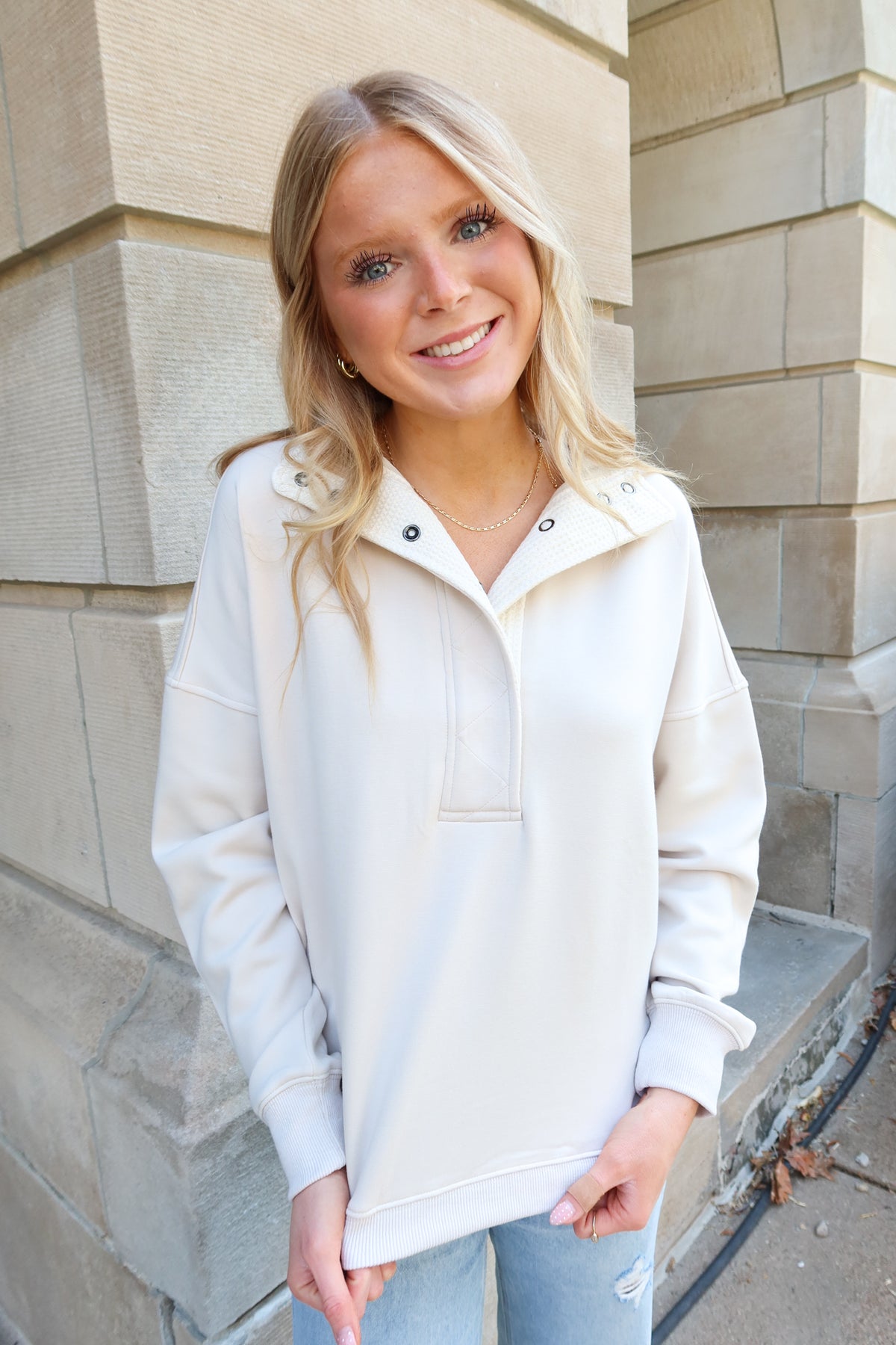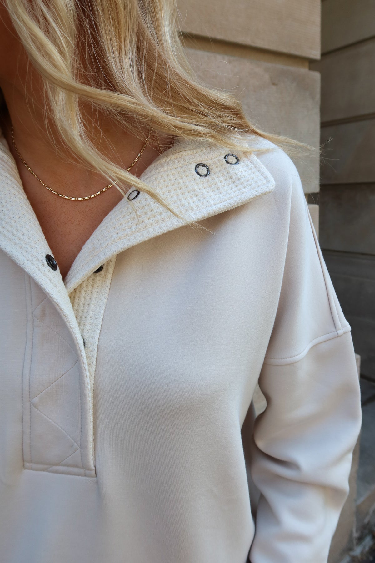Stay effortlessly stylish and comfortable with the Chai Snap Collar Neck Sweatshirt. Featuring a unique snap collar design, this sweatshirt adds a modern twist to your casual wardrobe while offering easy adjustability. Crafted for a cozy fit, it’s perfect for layering or wearing on its own during cooler days. Embrace both fashion and function with this versatile piece that elevates your everyday look.