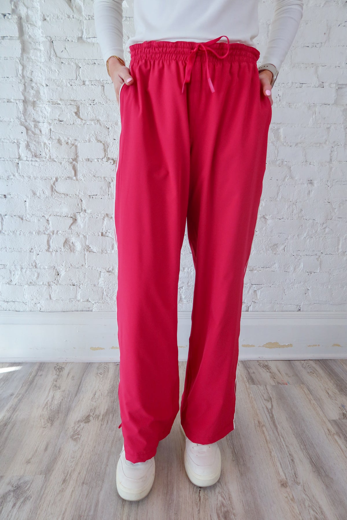Elevate your athletic wardrobe with these Plum Pink Finish Line Track Pants—the perfect blend of style and performance. Crafted for runners and fitness enthusiasts, these pants feature a sleek silhouette that flatters while allowing full range of motion. The vibrant plum pink hue makes a bold statement at the gym or on the track, while breathable fabric keeps you comfortable during intense workouts. Whether you're sprinting toward your goals or logging miles, these track pants deliver the support and confidence you need to perform at your best.