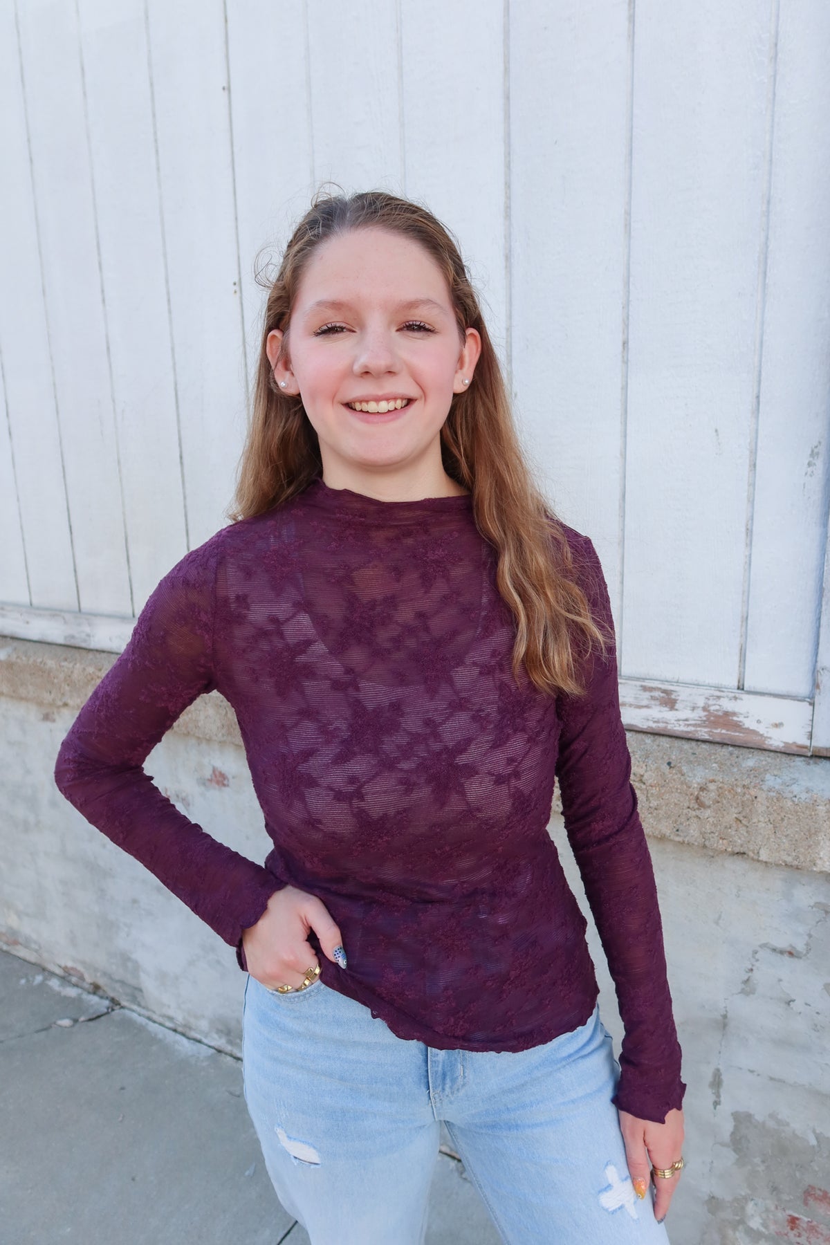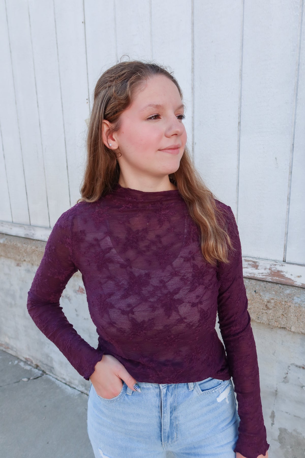 Plum Long Sleeve Lace Top