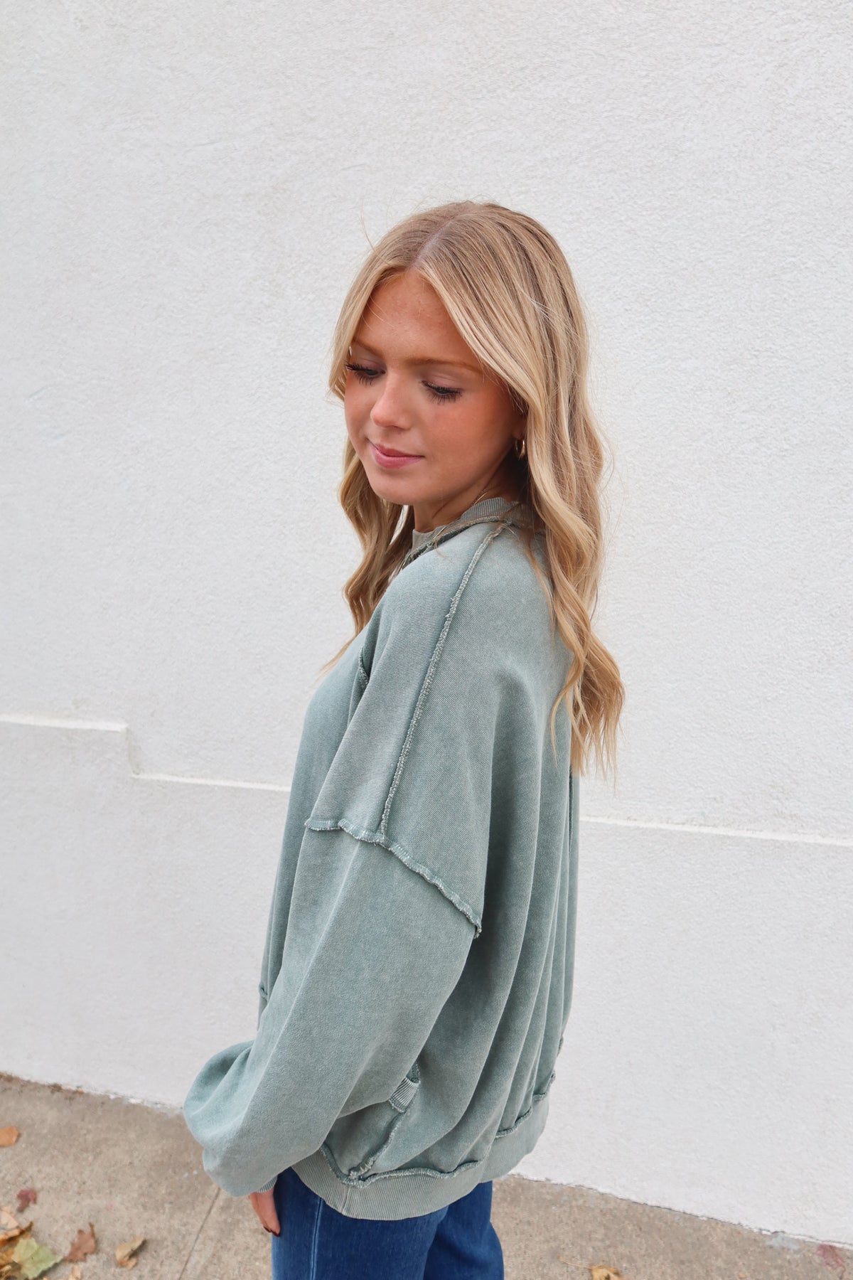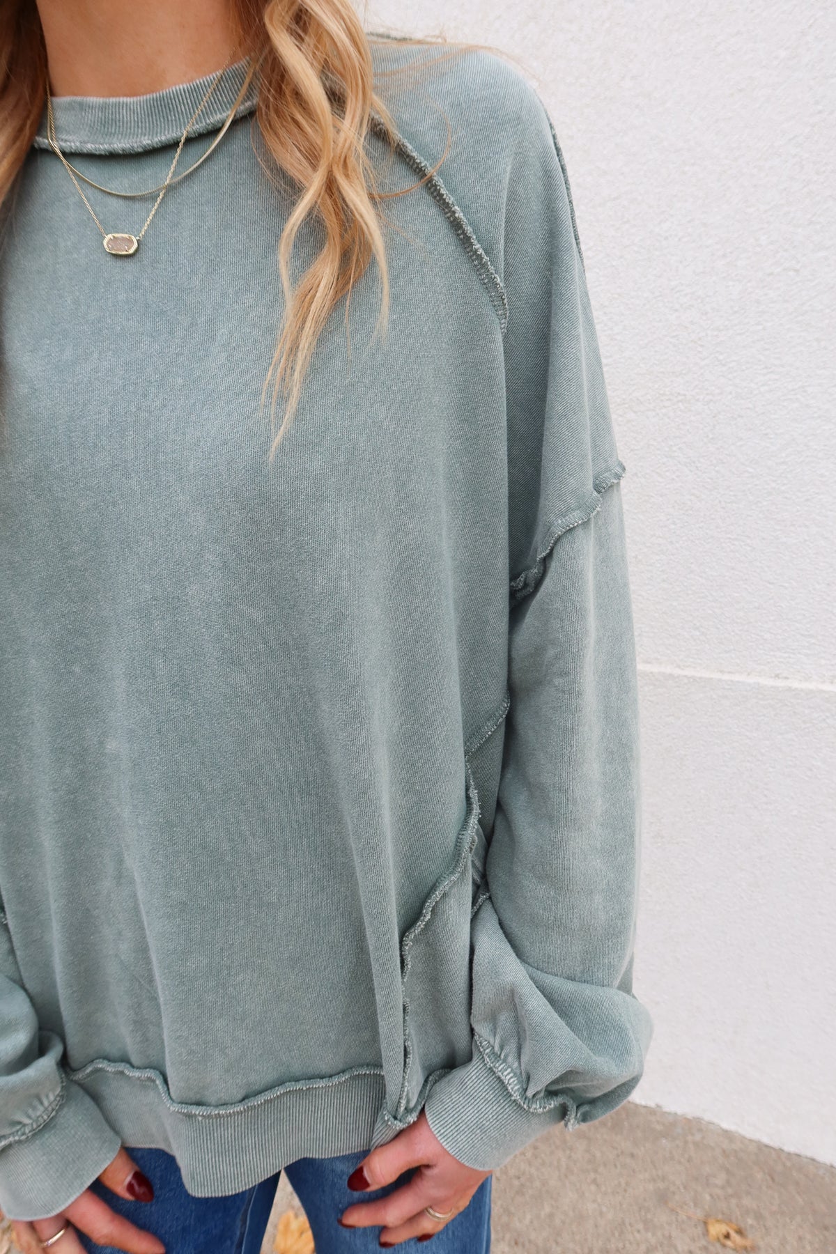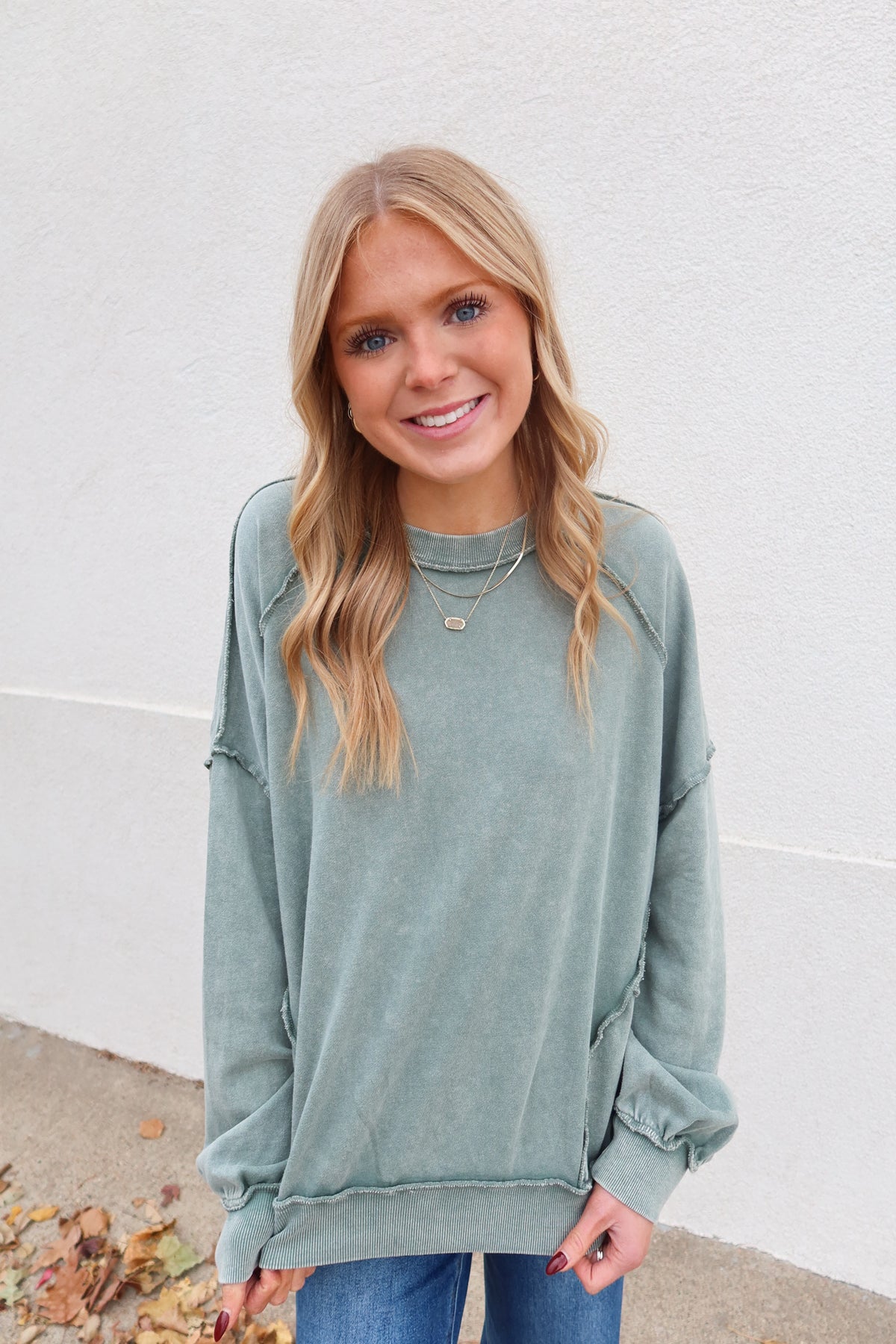 Embrace effortless style with the Everest Juniper Green Long Sleeve, featuring a distinctive mineral wash that gives each piece its own character. The exposed seam details add an edgy, contemporary touch that elevates this wardrobe essential from ordinary to standout. Crafted for those who appreciate thoughtful design, this long sleeve delivers both visual interest and comfortable everyday wear.