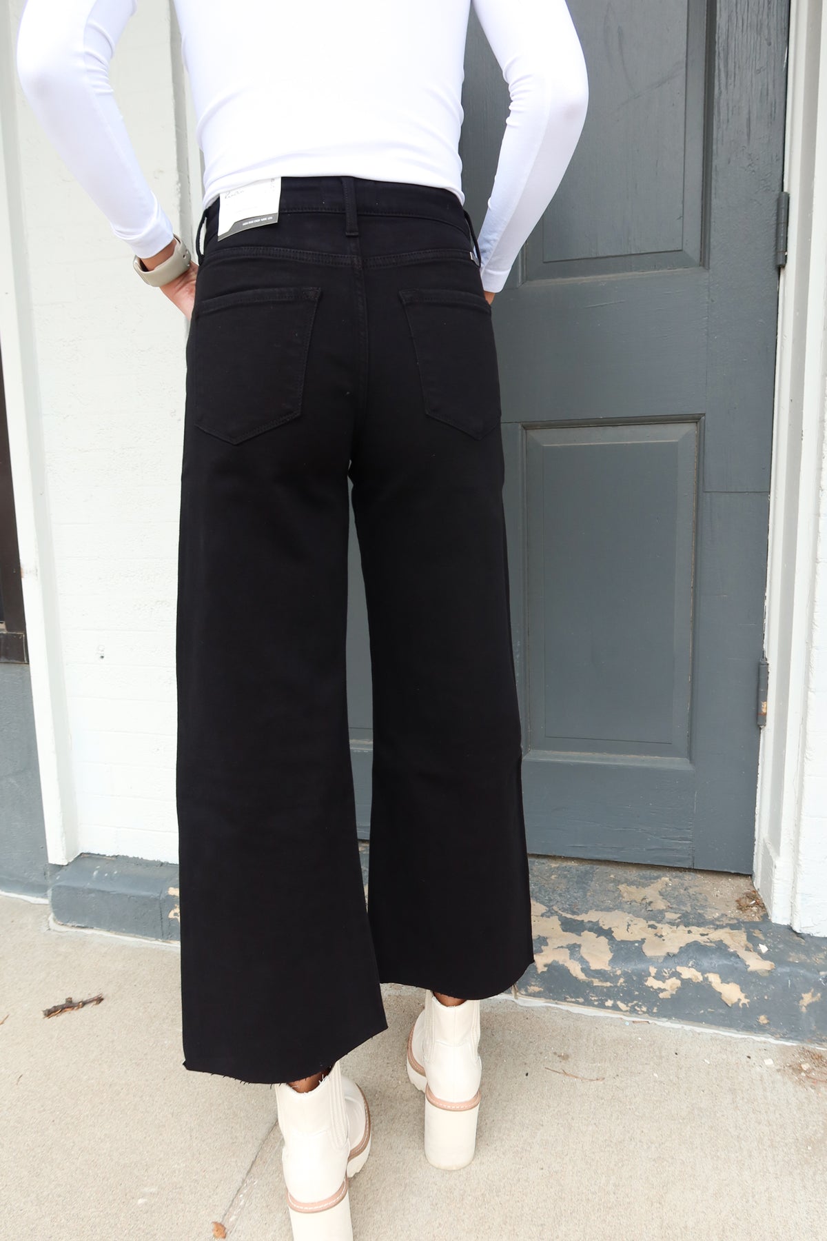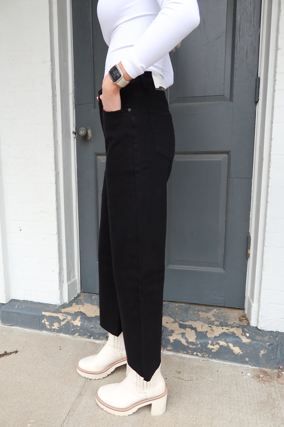 Elevate your denim game with these Black High Rise Crop Wide Leg Jeans—the perfect blend of vintage-inspired style and modern sophistication. The high-waisted silhouette flatters your figure while the cropped length showcases your favorite footwear. Crafted in a classic black wash, these versatile jeans transition seamlessly from casual weekends to dressed-up nights out. The wide-leg cut offers comfortable movement without sacrificing that polished, intentional look. A wardrobe essential that works harder than you think.