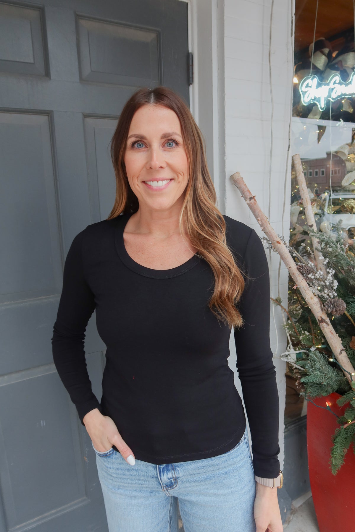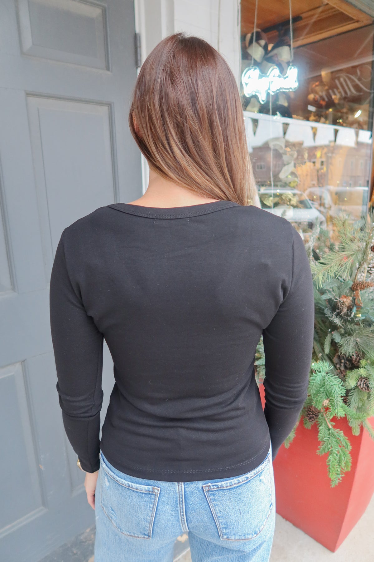 Effortlessly versatile, this soft jersey top features a graceful scoop neckline that flatters any frame. The lightweight, breathable fabric drapes beautifully, making it the perfect layering piece for any season. Wear it solo for understated elegance or pair it with jackets, cardigans, and accessories to create endless outfit combinations. The timeless black hue ensures it coordinates seamlessly with your entire wardrobe, delivering comfort and style that works as hard as you do.
