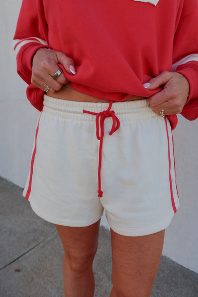 Cream Red Varsity Sideline Shorts