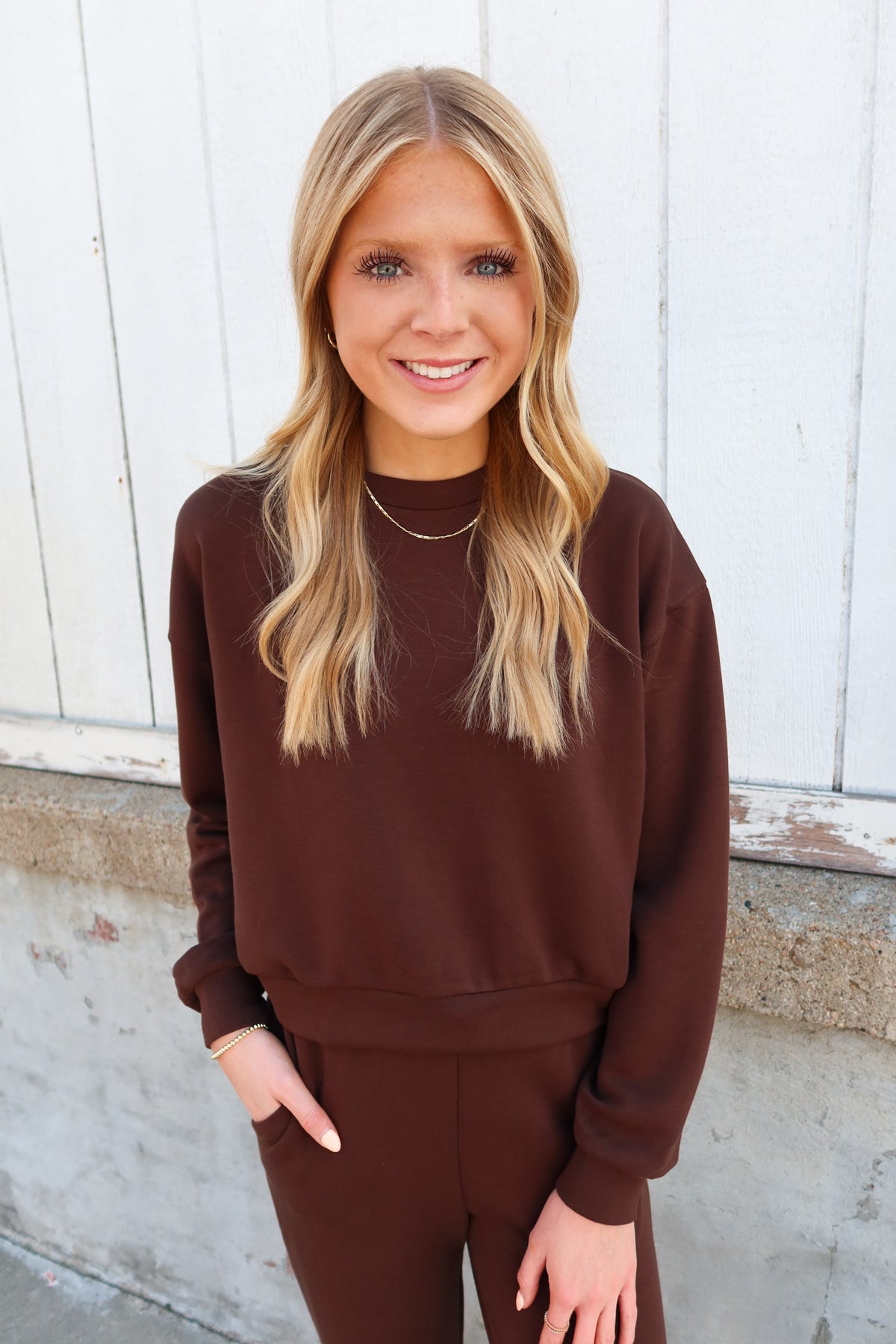Experience effortless comfort and timeless style with The Cozy Mocha Crew Neck Top. Crafted for softness and warmth, this versatile top is perfect for layering or wearing on its own. Its flattering crew neckline and rich mocha hue make it a must-have staple that seamlessly transitions from casual days to relaxed evenings. Elevate your wardrobe with this cozy essential designed to keep you comfortable without sacrificing style.