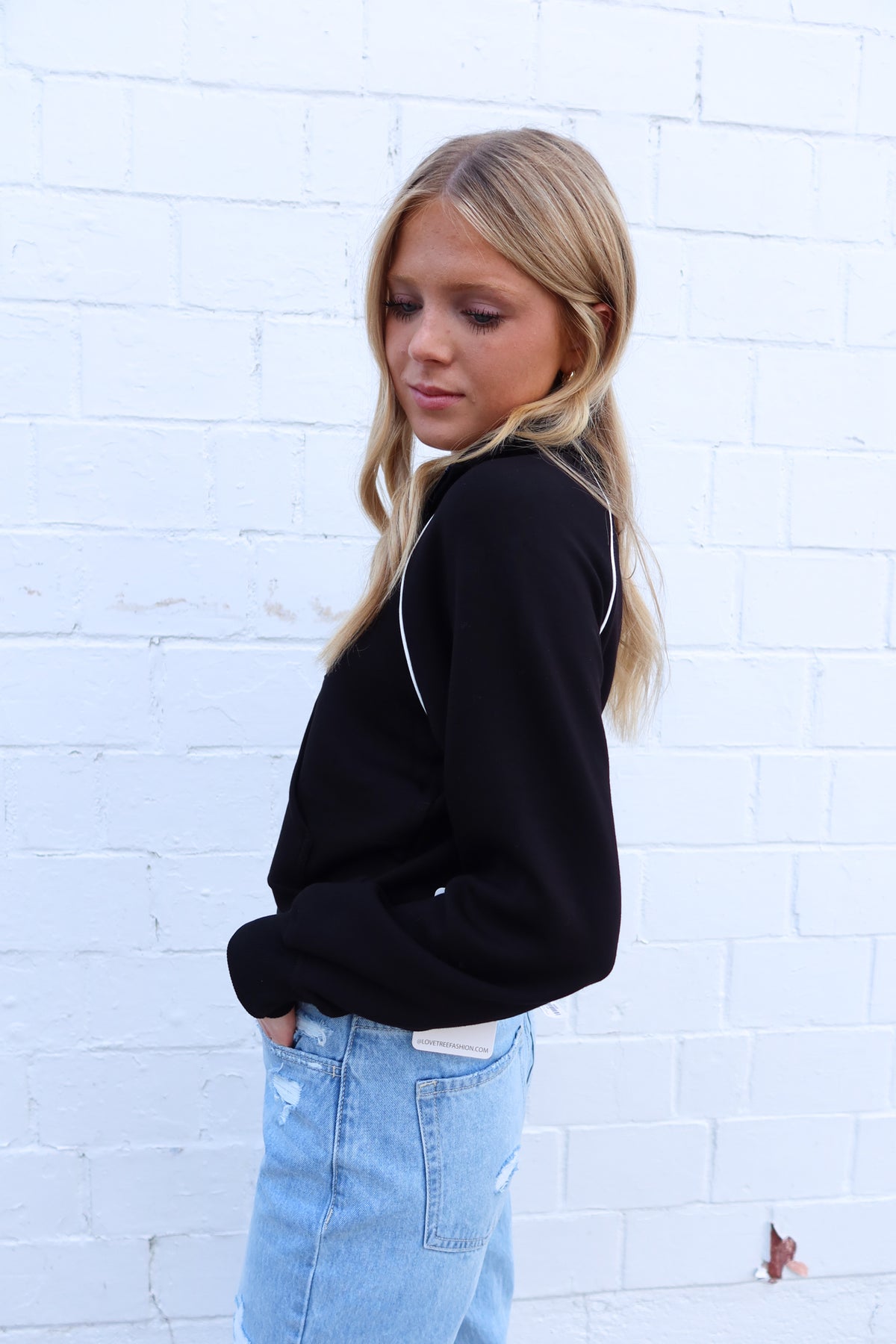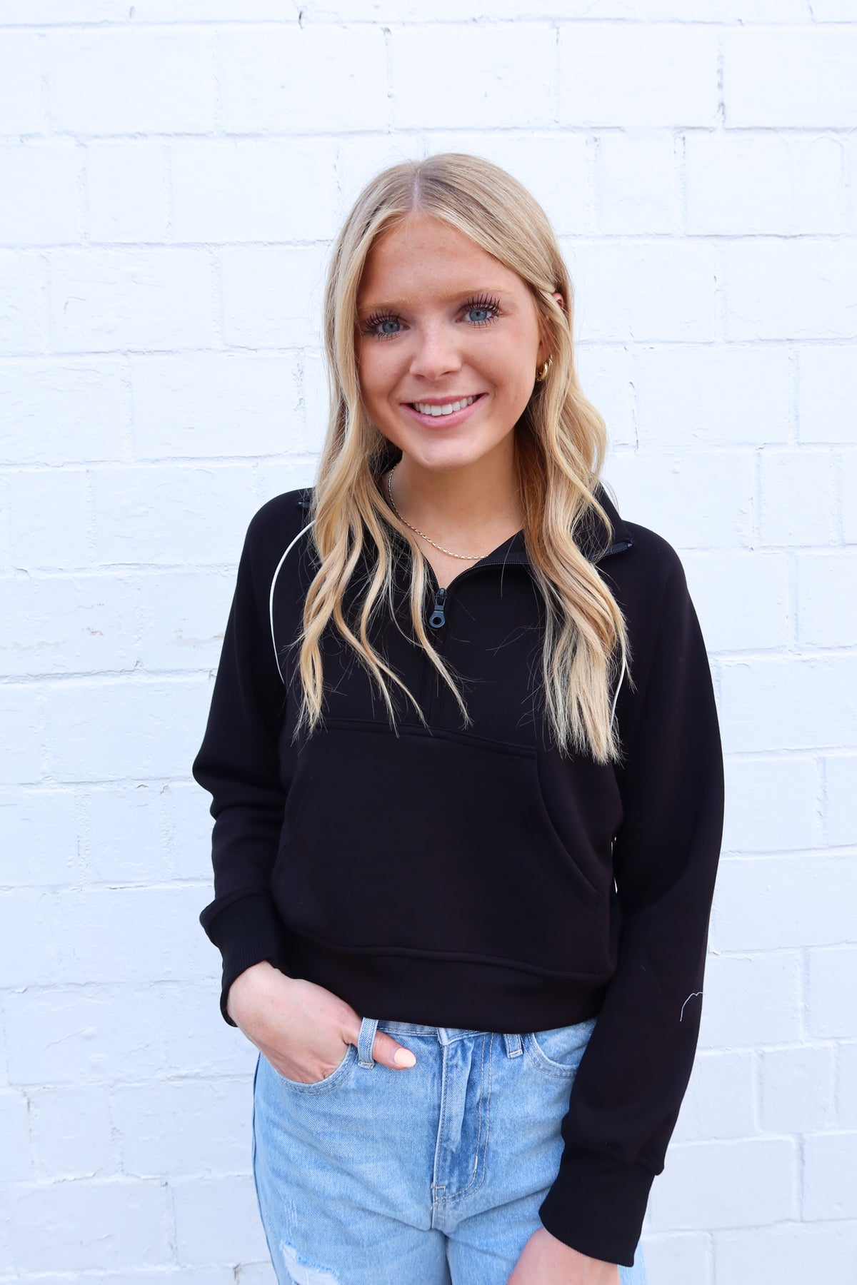 Stay comfortable and stylish with this Simple & Classic Black 3/4 Zip Top. Its versatile design makes it perfect for layering or wearing on its own, while the 3/4 zip adds a modern touch and adjustable ventilation. Crafted for ease and everyday wear, it’s an essential piece that blends effortlessly into any wardrobe. Elevate your look with this timeless, must-have top.