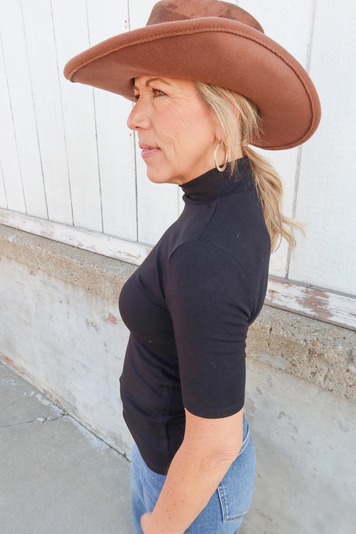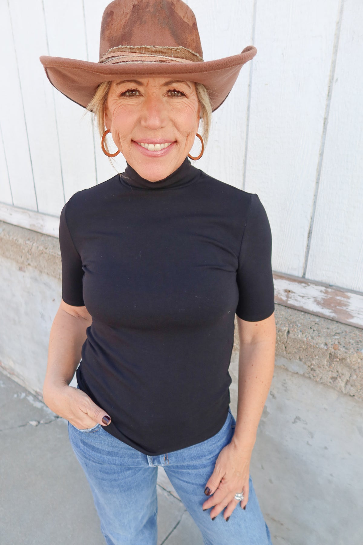 Experience cozy elegance with this Black Ultra Soft Short Sleeve Turtle Neck Top. Perfect for fall, its super soft fabric offers comforting warmth while the classic turtleneck design adds a touch of chic sophistication. This cute top pairs effortlessly with your favorite layers, making it a versatile staple for cooler days. Elevate your wardrobe with comfort and style in one flattering piece.