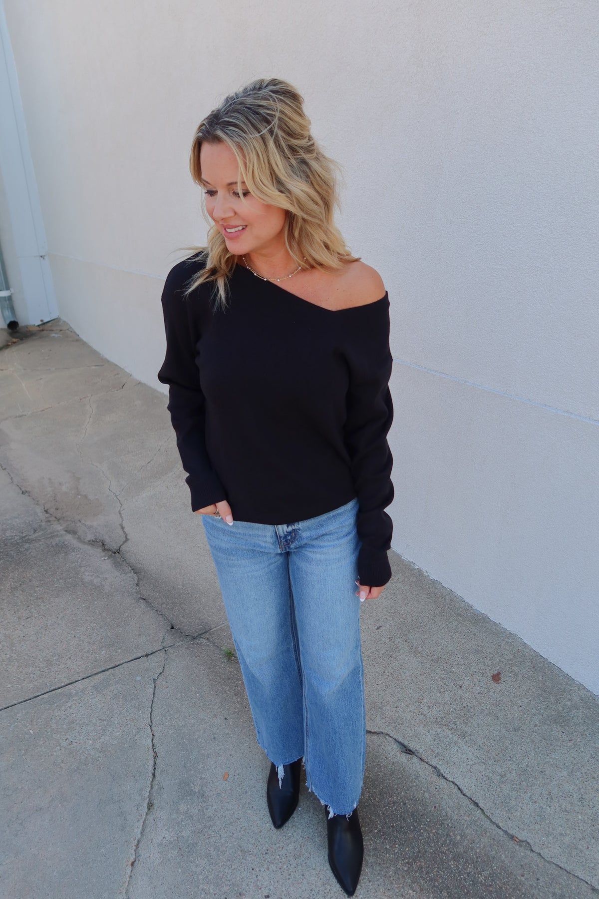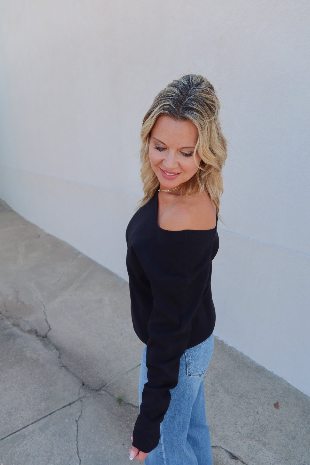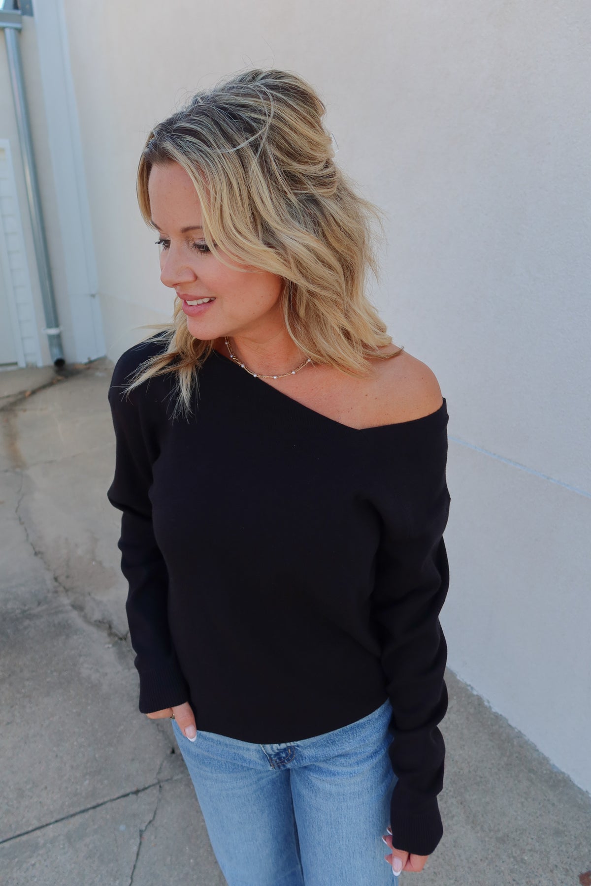 Elevate your wardrobe with this Black Asymmetric Sweater, designed to bring a chic and elegant touch to any outfit. The unique asymmetric neckline creates a sophisticated silhouette, while the soft fabric offers comfortable wear all day long. Perfect for dressing up or down, this sweater seamlessly blends style and ease for a timeless look.