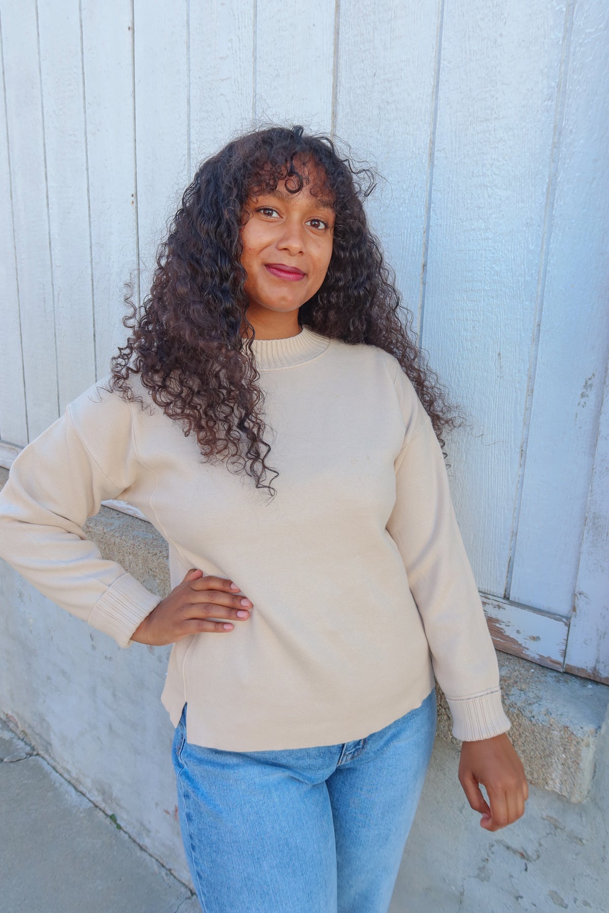 Experience cozy luxury with the Might As Well Stay Oatmeal Mock Neck Sweater. Crafted from ultra-soft fabric, it offers a gentle touch against your skin while the stylish mock neck keeps you warm and elegantly covered. Perfect for layering or wearing solo, this sweater combines comfort with a sleek silhouette, making it an essential addition to your wardrobe. Embrace warmth and effortless style every day.