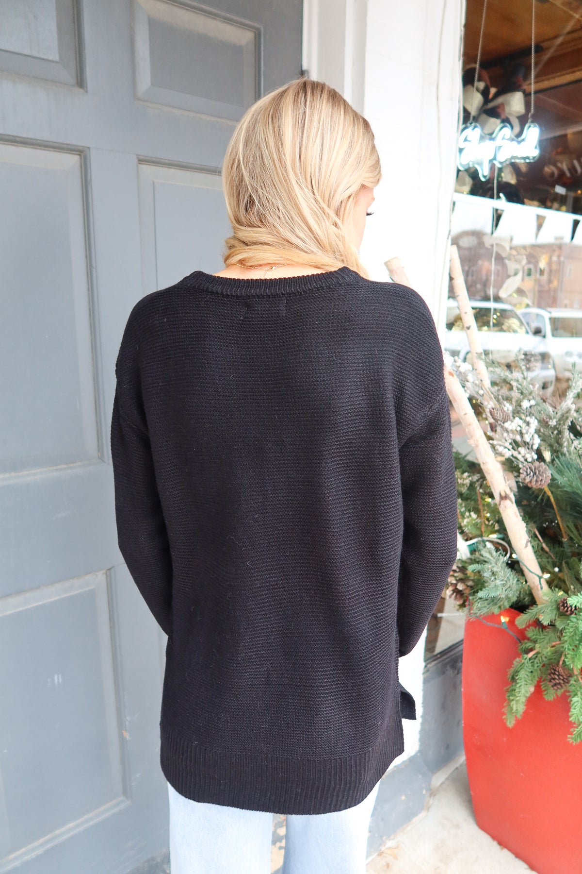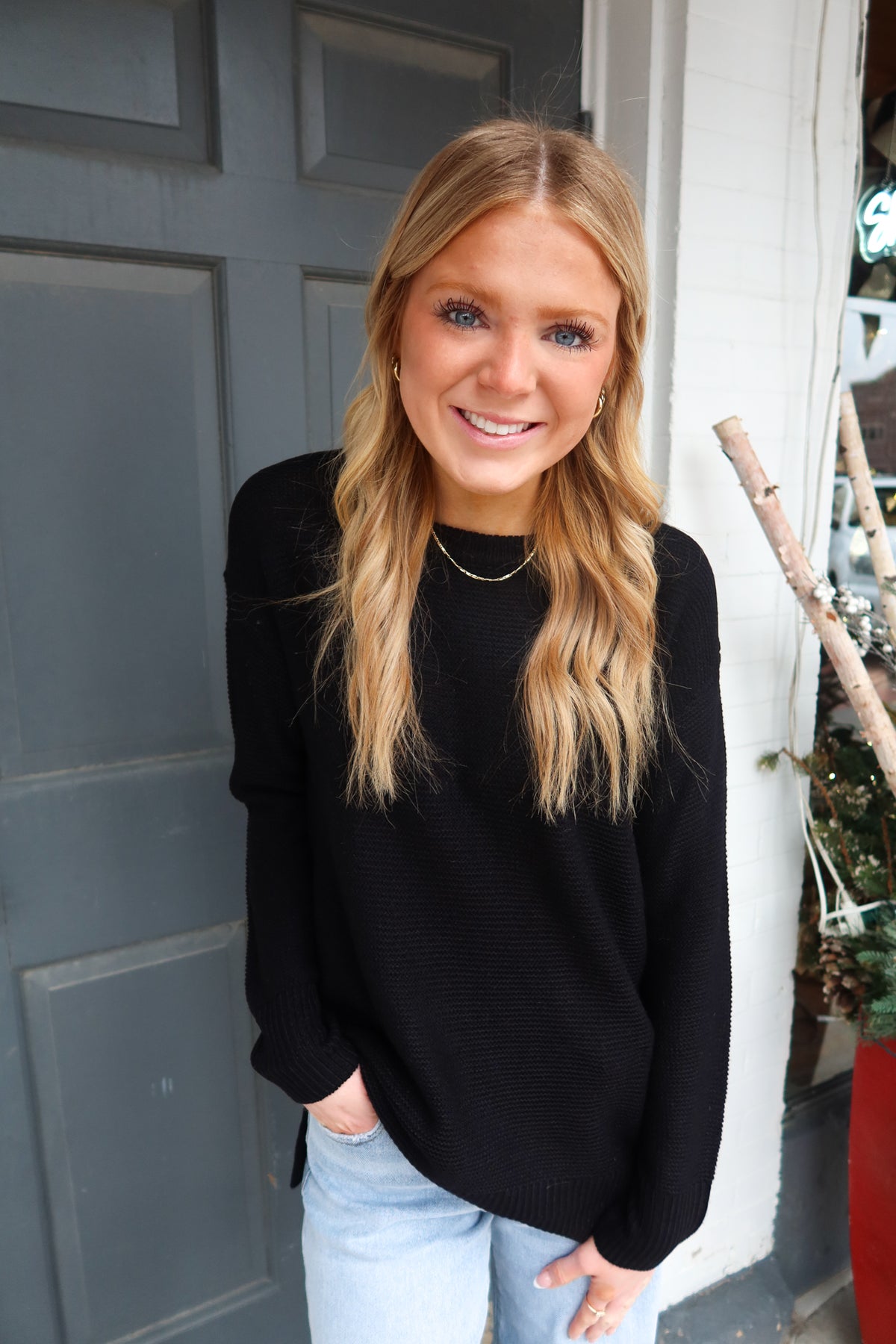 Wrap yourself in effortless comfort with this essential black sweater. Crafted for everyday wear, its soft fabric and relaxed fit make it the perfect layering piece or standalone staple. Whether you're heading to the office, running errands, or settling in at home, this versatile sweater transitions seamlessly through your day. The timeless black hue pairs with everything in your wardrobe, making it an investment piece you'll reach for again and again. Simple style never felt so good.