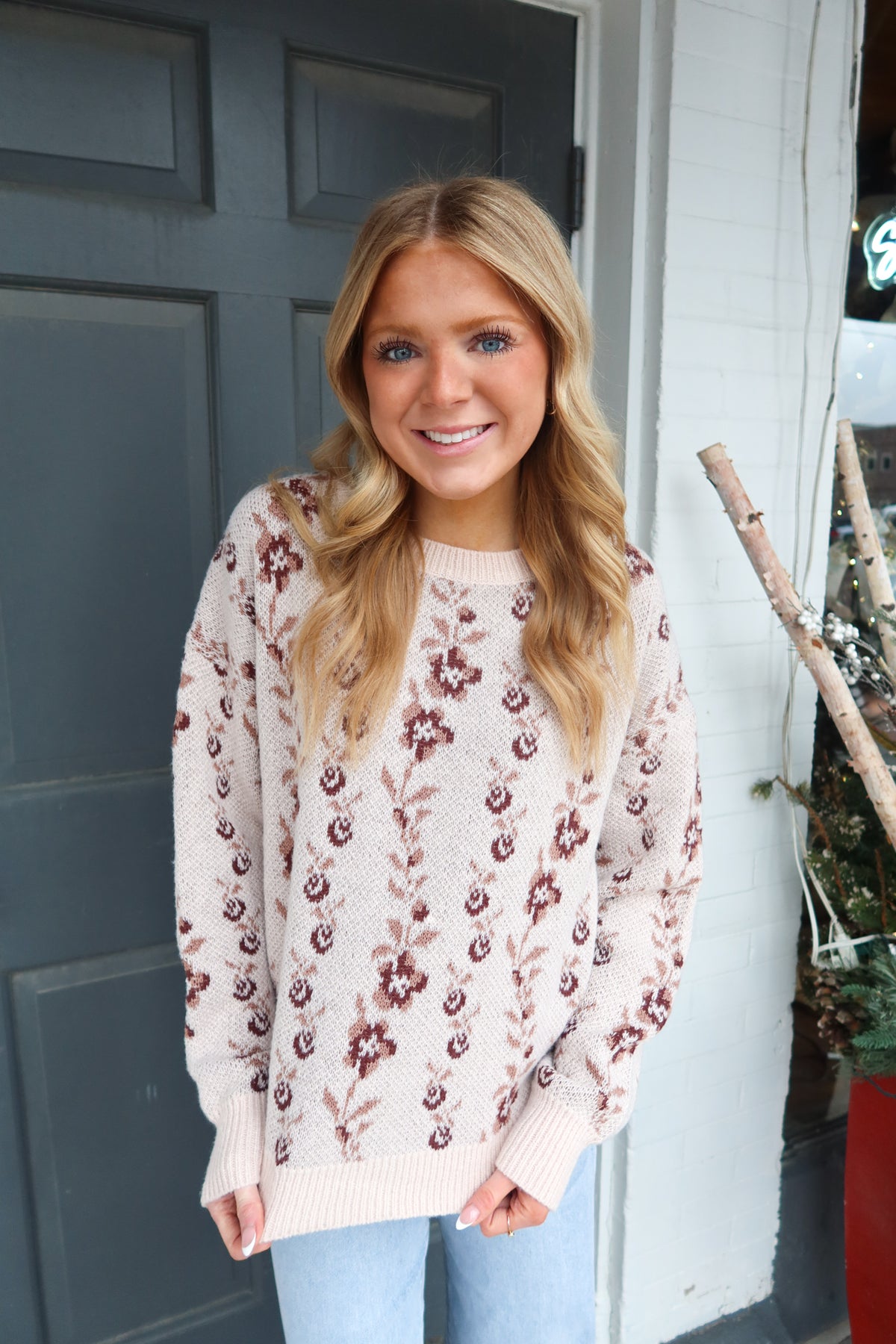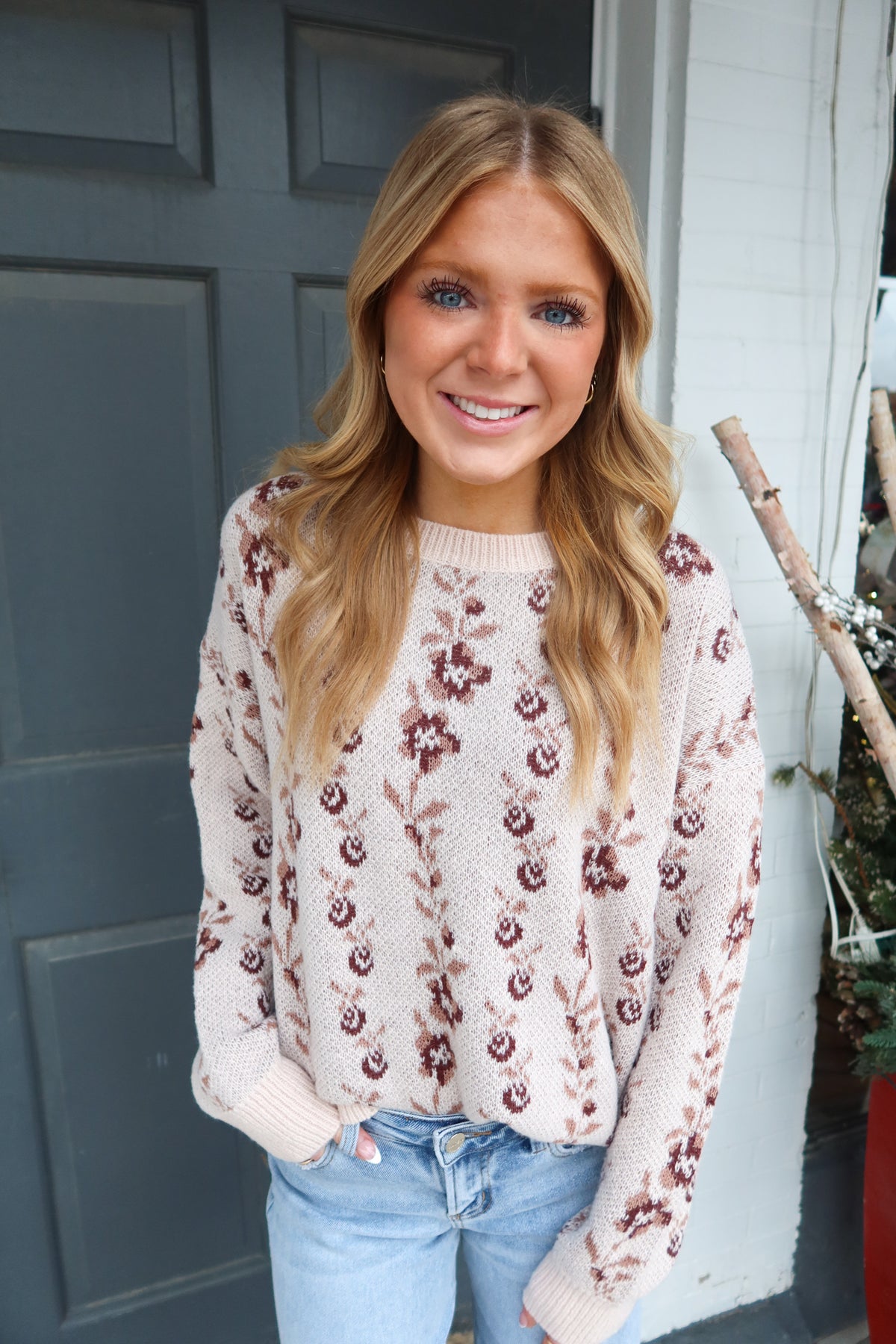 Wrap yourself in warmth and style with this brown cozy floral print sweater. The soft, comfortable fabric makes it perfect for layering through fall and winter, while the delicate floral pattern adds a touch of feminine charm to any outfit. Whether you're relaxing at home or heading out for a casual day, this versatile piece transitions effortlessly from season to season. The rich brown tone pairs beautifully with your favorite jeans, skirts, or trousers, making it a wardrobe essential that you'll reach for again and again.