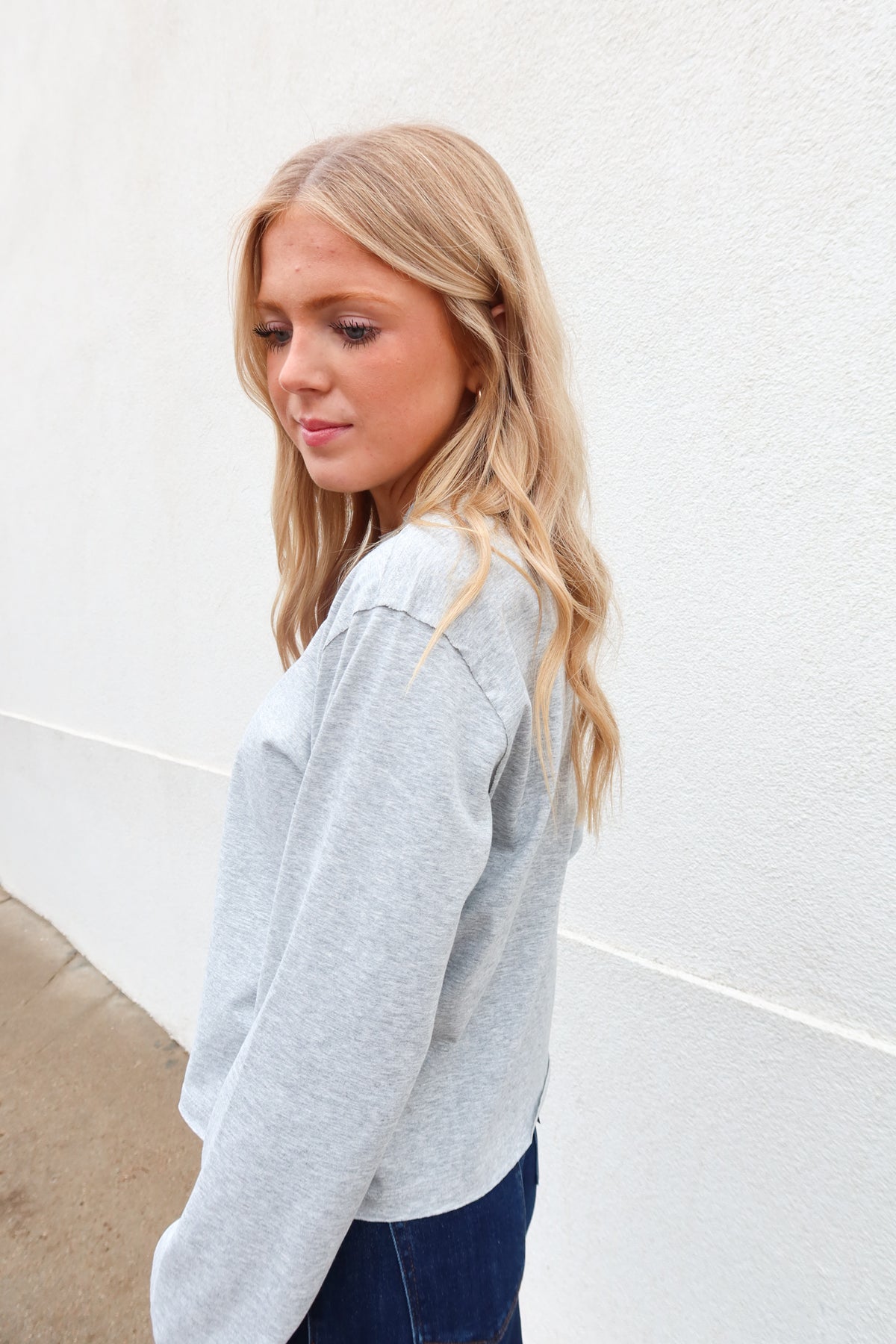 The Heather Gray Ranya Top is your go-to lightweight layer for effortless style. Crafted from soft, breathable fabric, this simple sweatshirt moves seamlessly from casual weekends to relaxed workdays. Its understated heather gray hue pairs with everything in your wardrobe, making it the versatile essential you'll reach for again and again. Comfortable, timeless, and always in season.
